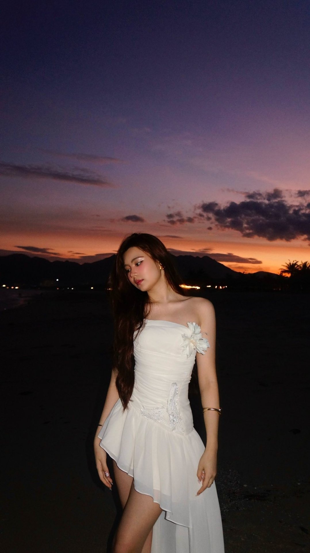 In this exquisite studio portrait, Hat De, the youngest daughter of MC Quyen Linh, shines with her natural beauty and elegant demeanor. Her flowing long hair and pristine white outfit accentuate her radiant and youthful charm. Seated on a simple wooden chair amidst a bright space adorned with delicate yellow flowers, Hat De exudes a captivating and graceful aura. This photograph not only captures a beautiful moment but also showcases the gentle and sophisticated style of MC Quyen Linh's daughter, drawing all eyes with her pure and vibrant beauty.