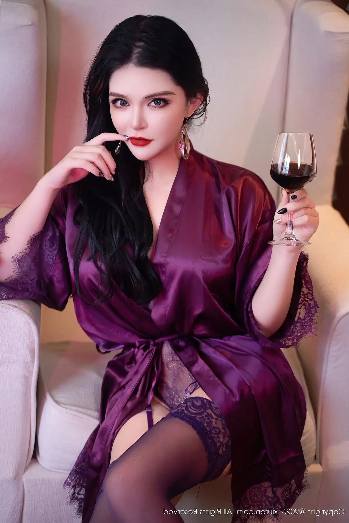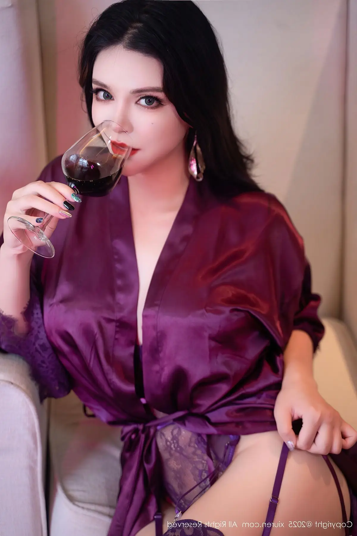 Immerse yourself in the world of XiuRen No.10700 featuring Yi Li Sha You Dian Bai, a model of irresistible beauty. In this captivating series, Yi Li Sha You Dian Bai mesmerizes in a luxurious purple satin robe adorned with delicate lace. Her deep gaze and luscious red lips enhance her mysterious and alluring appeal. Holding a glass of red wine, she strikes a pose that is both natural and enchanting, exuding elegance and sophistication. This collection promises a journey through artistic and emotional moments, portraying a modern woman who is confident, graceful, and utterly captivating. Explore this exclusive set to fully appreciate Yi Li Sha You Dian Bai's stunning presence.#XiuRenNo10700 #YiLiShaYouDianBai #SeductiveBeauty #SatinRobe #ElegantCharm