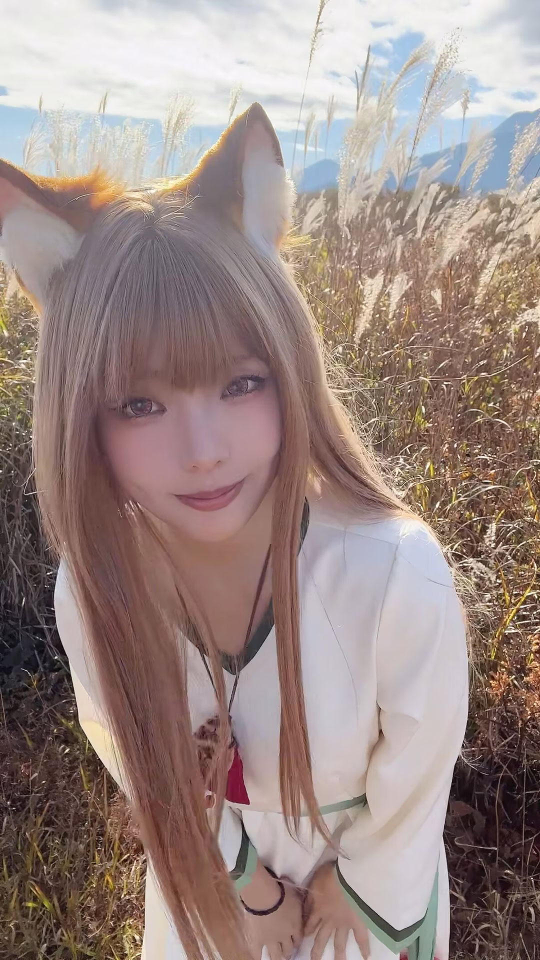 Coser Ely_eee: Enchanting 'Wolf and Breeze' Cosplay amidst Golden Fields | Artistic View