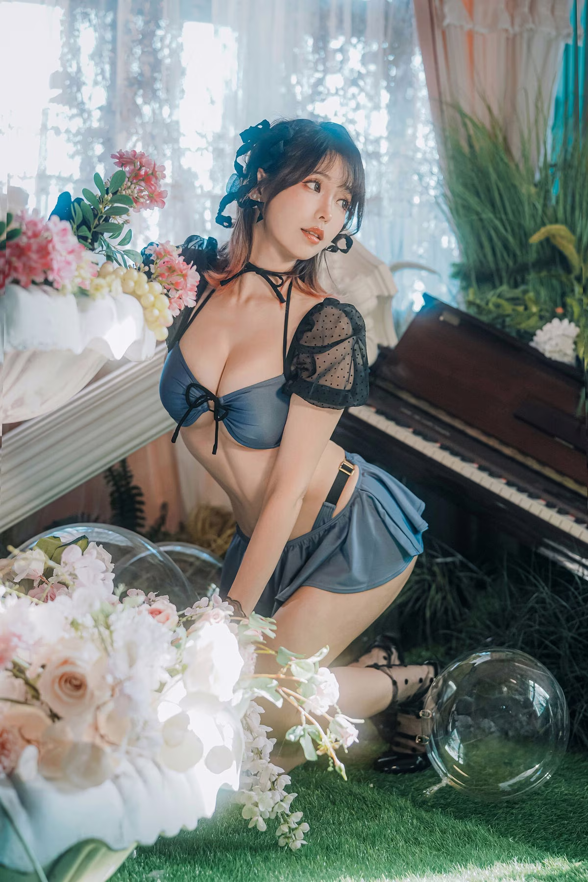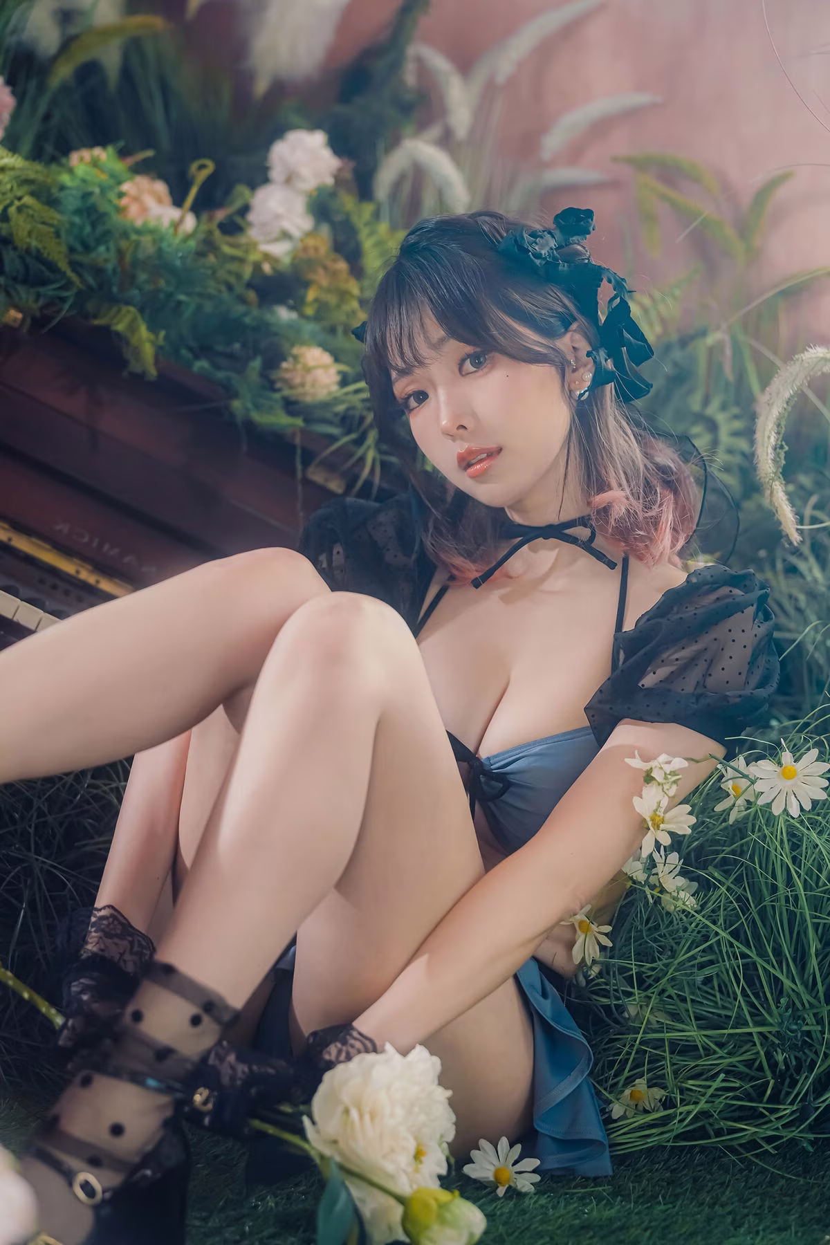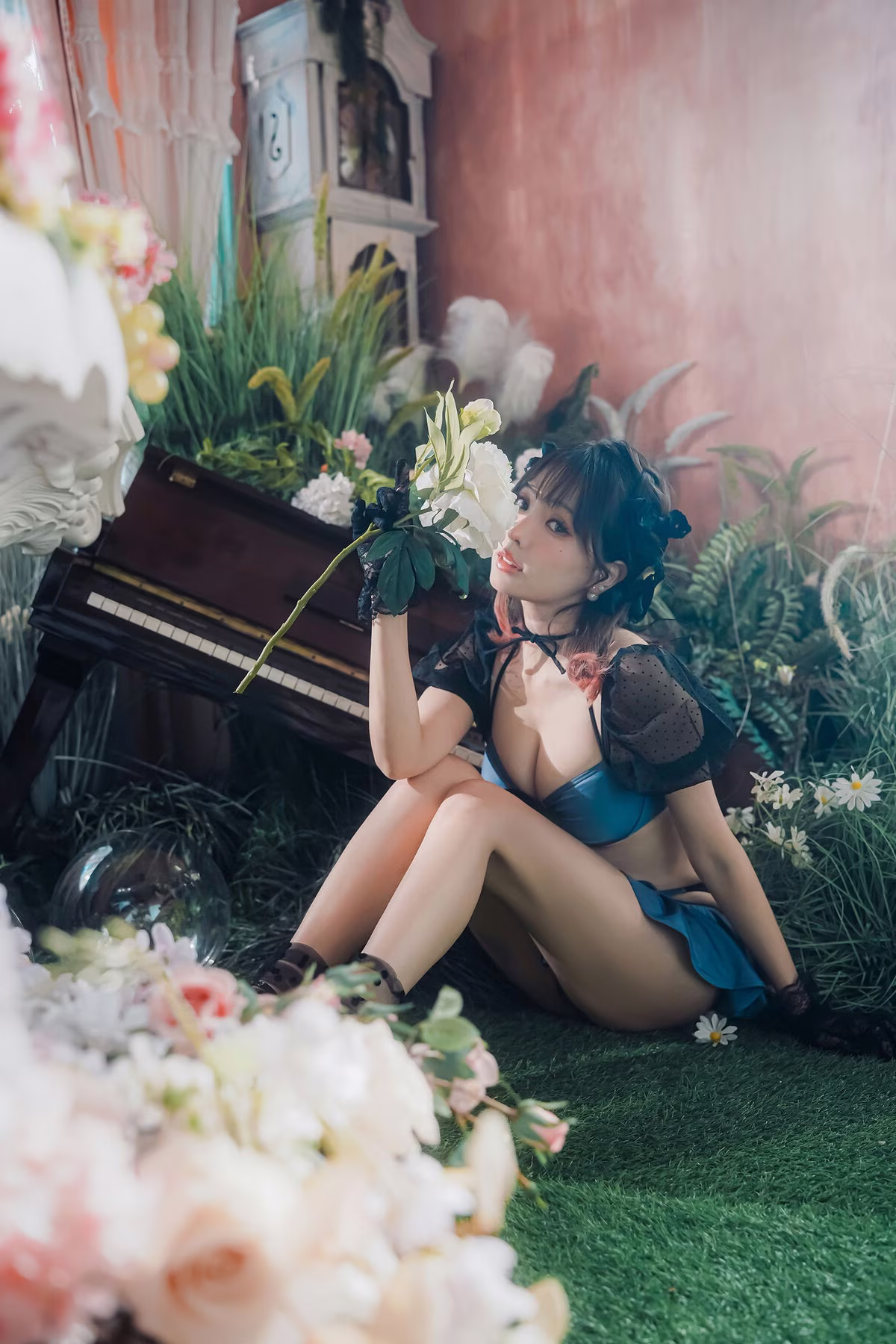 Immerse yourself in the enchanting fairytale world with Coser Ely_eee ElyEE子 in her Fairytale Wonderland 童話仙境 photoshoot. This captivating image portrays Ely_eee as a muse in a dreamlike setting, where lush green grass stretches out and vibrant flowers bloom. Dressed in a costume inspired by classic tales, Ely_eee exudes a beauty that is both alluring and innocent. Her dreamy gaze and the gentle gesture of holding a white flower create a moment filled with emotion and poetry. The ethereal backdrop, with soft lighting and classical elements, further highlights Ely_eee's graceful charm, inviting viewers to step into a wondrous fairytale realm where all dreams can come true.
