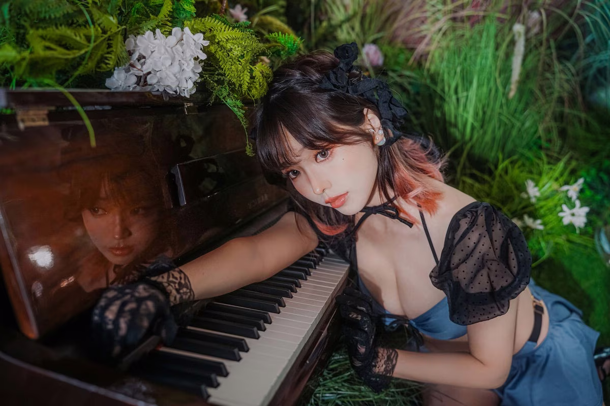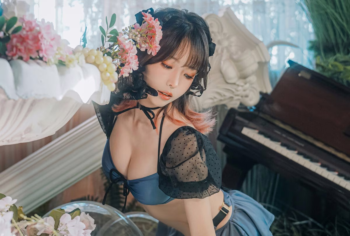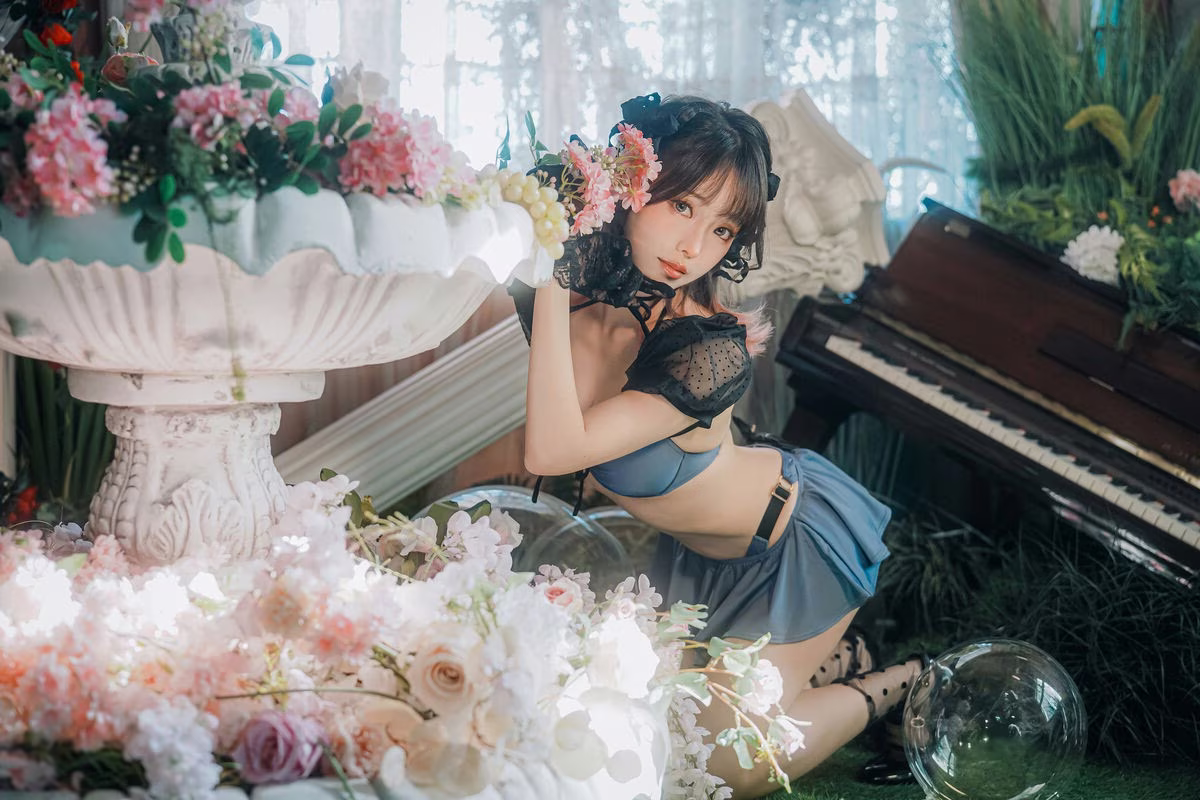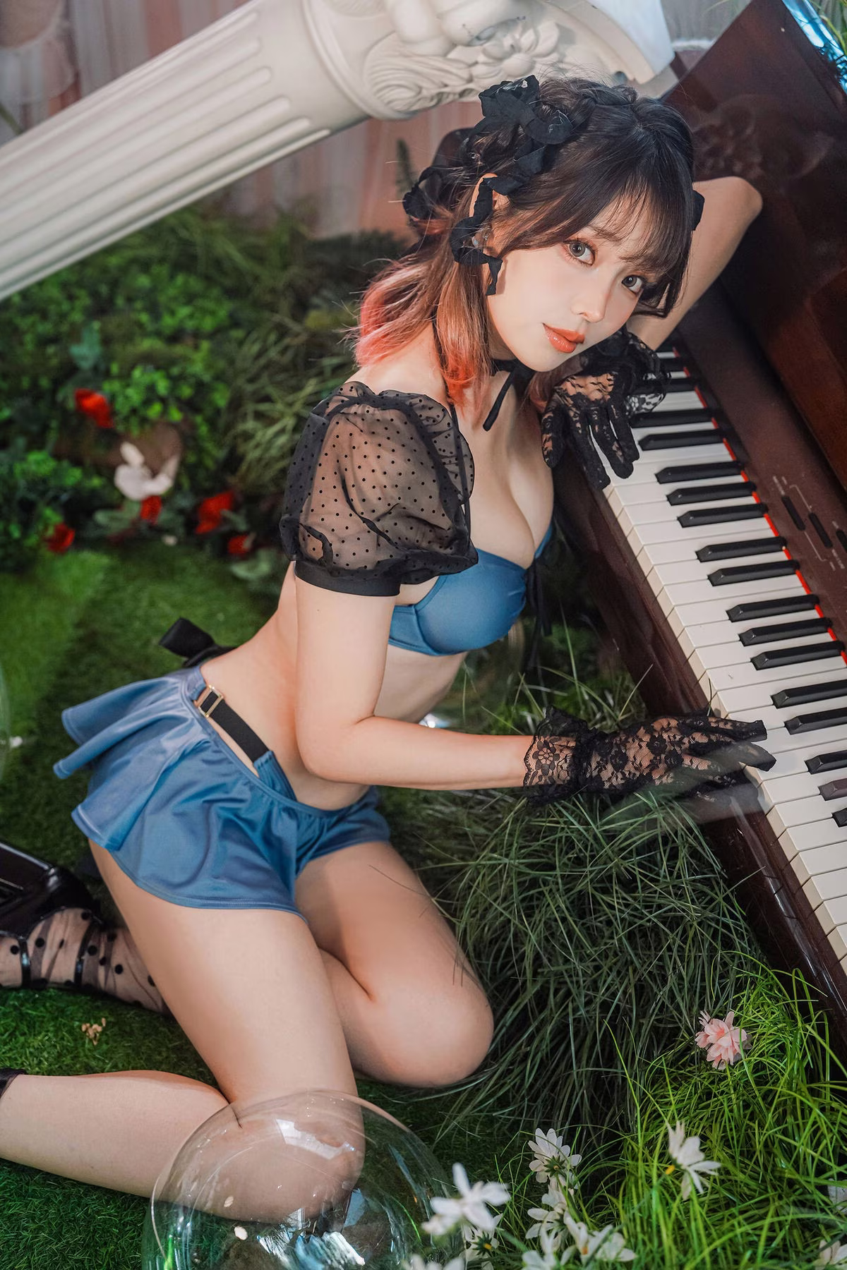 Immerse yourself in the enchanting fairytale world with Coser Ely_eee ElyEE子 in her Fairytale Wonderland 童話仙境 photoshoot. This captivating image portrays Ely_eee as a muse in a dreamlike setting, where lush green grass stretches out and vibrant flowers bloom. Dressed in a costume inspired by classic tales, Ely_eee exudes a beauty that is both alluring and innocent. Her dreamy gaze and the gentle gesture of holding a white flower create a moment filled with emotion and poetry. The ethereal backdrop, with soft lighting and classical elements, further highlights Ely_eee's graceful charm, inviting viewers to step into a wondrous fairytale realm where all dreams can come true.