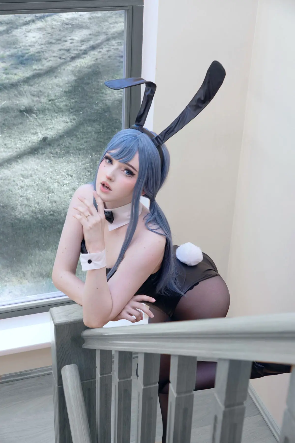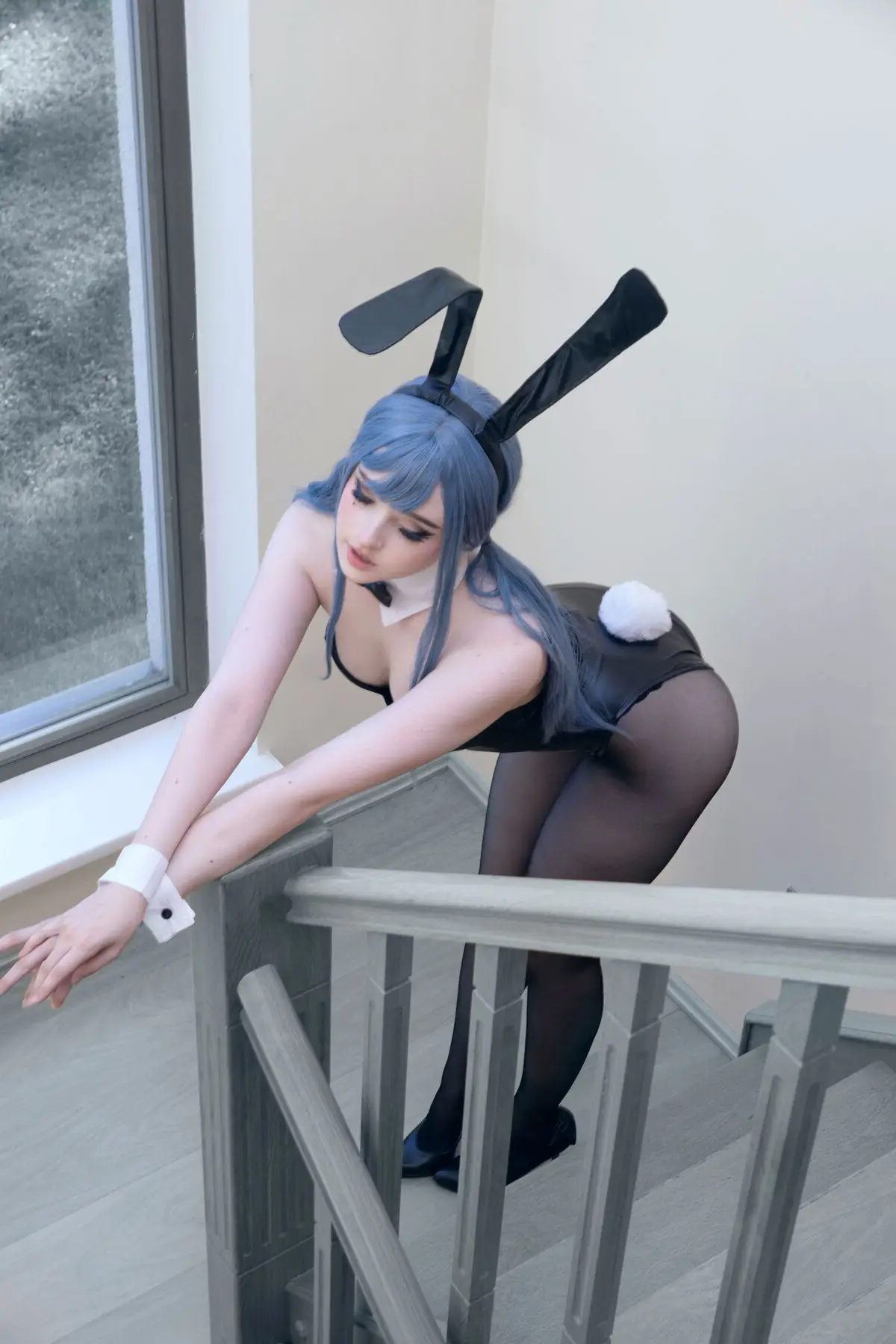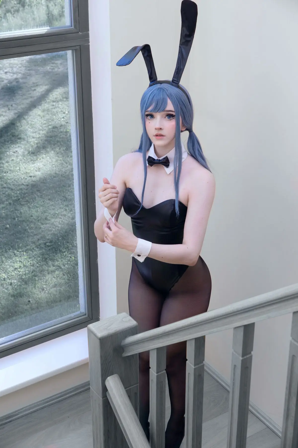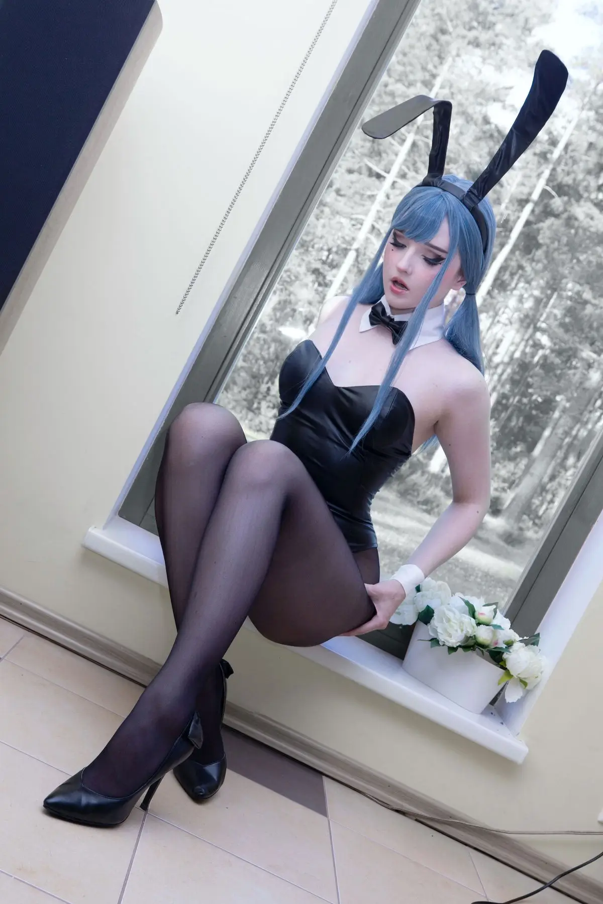 Step into the captivating world of Coser Candy Ball as she embodies the iconic Bunny character. Her striking blue hair, paired with alluring black bunny ears, exudes a charming yet mysterious aura. Posing gracefully on the sofa, her dreamy gaze creates an emotional and sensual portrait. The sleek black leotard, complemented by sheer stockings and high heels, completes her impeccable look, drawing every eye from the very first glance. This is more than just a cosplay transformation; it's a sophisticated portrayal of the character's beauty, promising memorable moments and a delightful visual experience for fans.#CoserCandyBall #BunnyCosplay #BlueHair #CosplayGirl #FantasyFashion