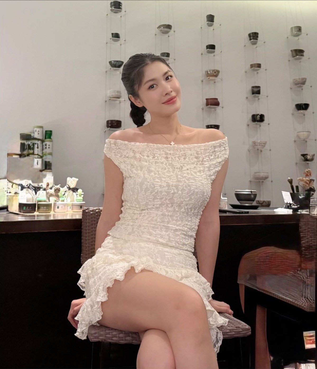 Thuy Anh, singer Dang Khoi's wife, makes a strong impression with her timeless beauty and radiant demeanor. Despite being a mother of three, she maintains an admirable slender figure and youthful appearance. Dressed in a classic white and black polka dot dress, Thuy Anh exudes femininity, elegance, and sophistication. The gown not only accentuates her physique but also showcases her exquisite and timeless fashion sense. Her gentle smile and captivating gaze further highlight Thuy Anh's natural and graceful charm. She is a vivid testament to the image of a modern, successful woman who knows how to take care of herself and always shines brightly.Tammy Pham radiant displaying alluring beauty by infinity pool