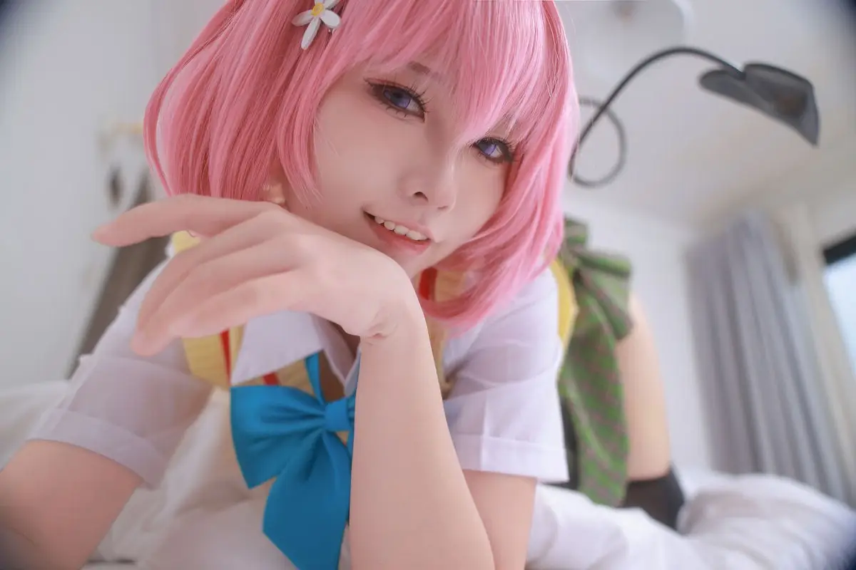 Immerse yourself in the enchanting world of cosplay with Coser G44不会受伤 and Mengmeng. This captivating image features an adorable pink-haired girl, with soft, flowing hair and sparkling, large eyes. Her gentle smile perfectly complements the charming anime-style school uniform, highlighted by an elegant blue bow, creating a sweet and captivating allure. G44不会受伤 Mengmeng demonstrates exceptional professionalism and passion through every detail, from her natural expressions to her alluring poses. Explore this exclusive collection to fully appreciate the beauty and creativity of the cosplay art form.#Coser #G44BuHuiShouShang #MengmengCosplay #PinkHairCosplay #AnimeCosplayGirl #CuteCosplay