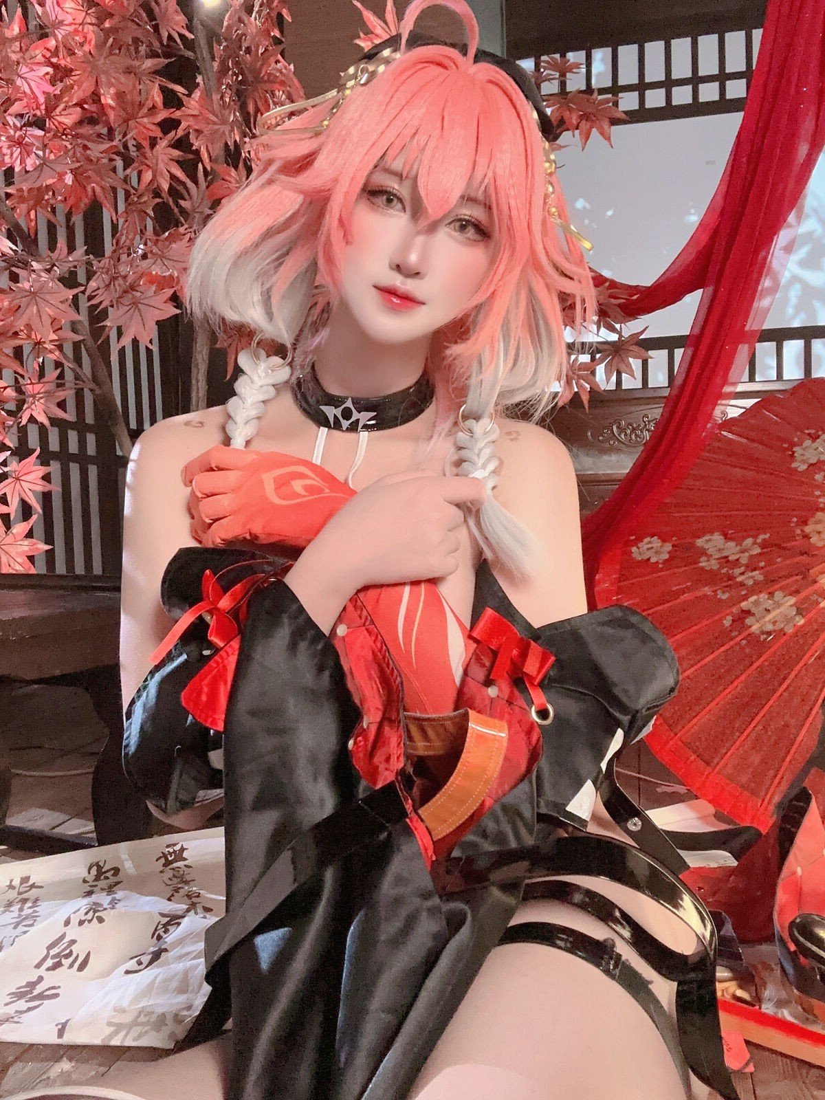 Coser San Du 69 masterfully embodies the character Changli from the game Wuthering Waves. The exquisite white and red costume paired with the striking pink hair brings Changli to life in a captivating way. The black stockings adorned with star patterns and the elegant red fan further enhance the unique beauty of this portrayal. San Du 69s alluring charm and confident demeanor are evident in every shot. She presents a version of Changli that is both powerful and graceful leaving viewers mesmerized. This is an impressive cosplay showcasing the cosers dedication and passion for her beloved character. Wuthering Waves fans and the gaming community will undoubtedly appreciate this stunning photo set.Stories