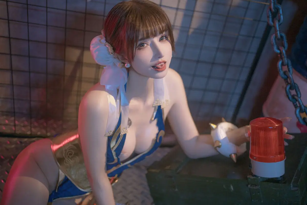 Step into the captivating universe of Honkai Star Rail with Coser Hua Qi Hana's remarkable portrayal of the character 飞鸟马时. Dressed in a stunning futuristic maid outfit, complete with intricate armor details and a formidable sci-fi rifle, she embodies a powerful yet alluring presence. The blurred night cityscape background, bathed in blue light, perfectly sets the mysterious, cyberpunk tone reminiscent of the game's aesthetic. Every element, from her radiant blonde hair and delicate halo to the imposing weapon, is meticulously recreated, showcasing exceptional dedication. Hua Qi Hana's confident demeanor and sharp gaze breathe life into the character, transforming this photoshoot into more than just cosplay—it's a visual narrative of a space-faring warrior. This collection is a must-see for all Honkai Star Rail enthusiasts and cosplay admirers.#HonkaiStarRail #CoserHuaQiHana #Cosplay #FeiNiaoMaShi #Gaming