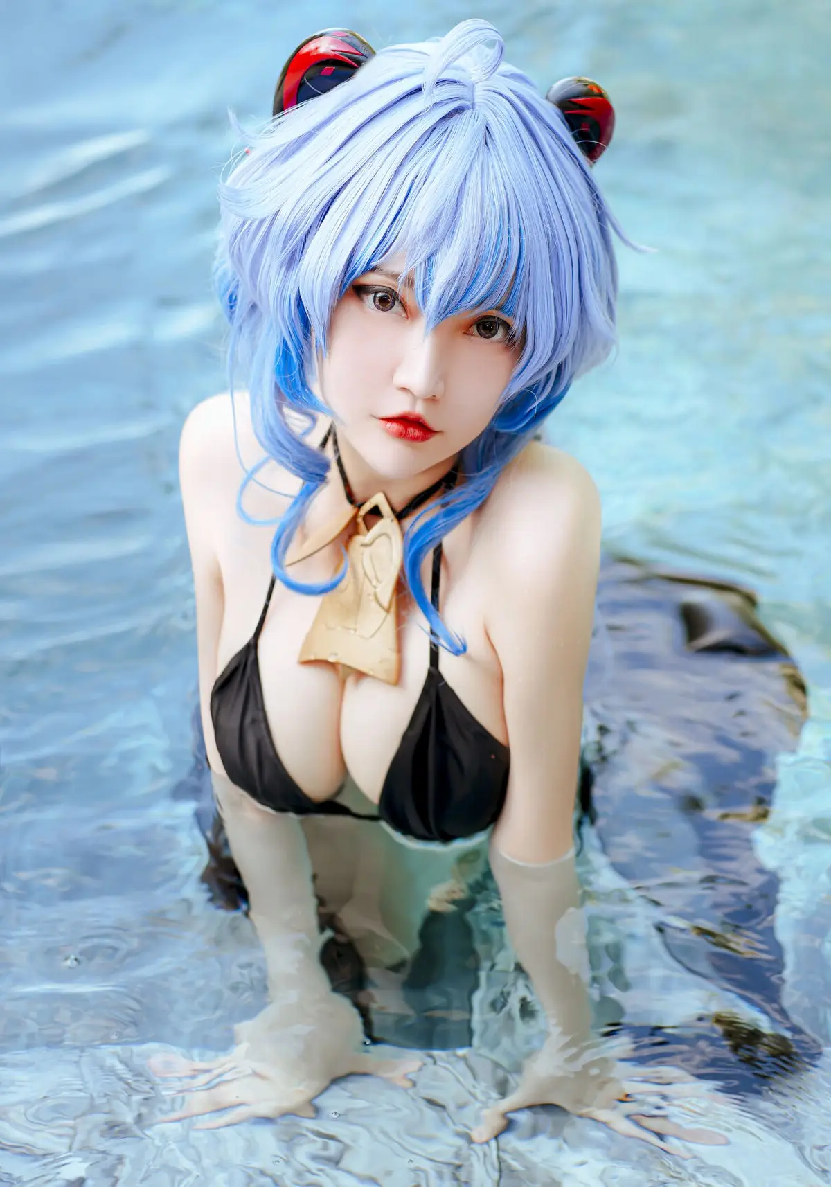 In this captivating image Coser Potato Godzilla embodies Ganyu from Genshin Impact in a stunning bikini. She showcases her enchanting beauty as she relaxes in the cool waters of a swimming pool. Ganyu’s distinctive blue hair and delicate horns are faithfully recreated presenting a familiar yet refreshing portrayal. Her alluring gaze and relaxed pose at the pool's edge are truly captivating. The lush green backdrop further enhances the coser's charm evoking a sense of wonderful and vibrant summer vacation. This exceptional cosplay demonstrates Coser Potato Godzilla’s dedication and talent bringing the beloved character to life in a unique setting.#CoserPotatoGodzilla #GanyuBikini #GenshinImpactCosplay #BikiniCosplay #SummerVibes