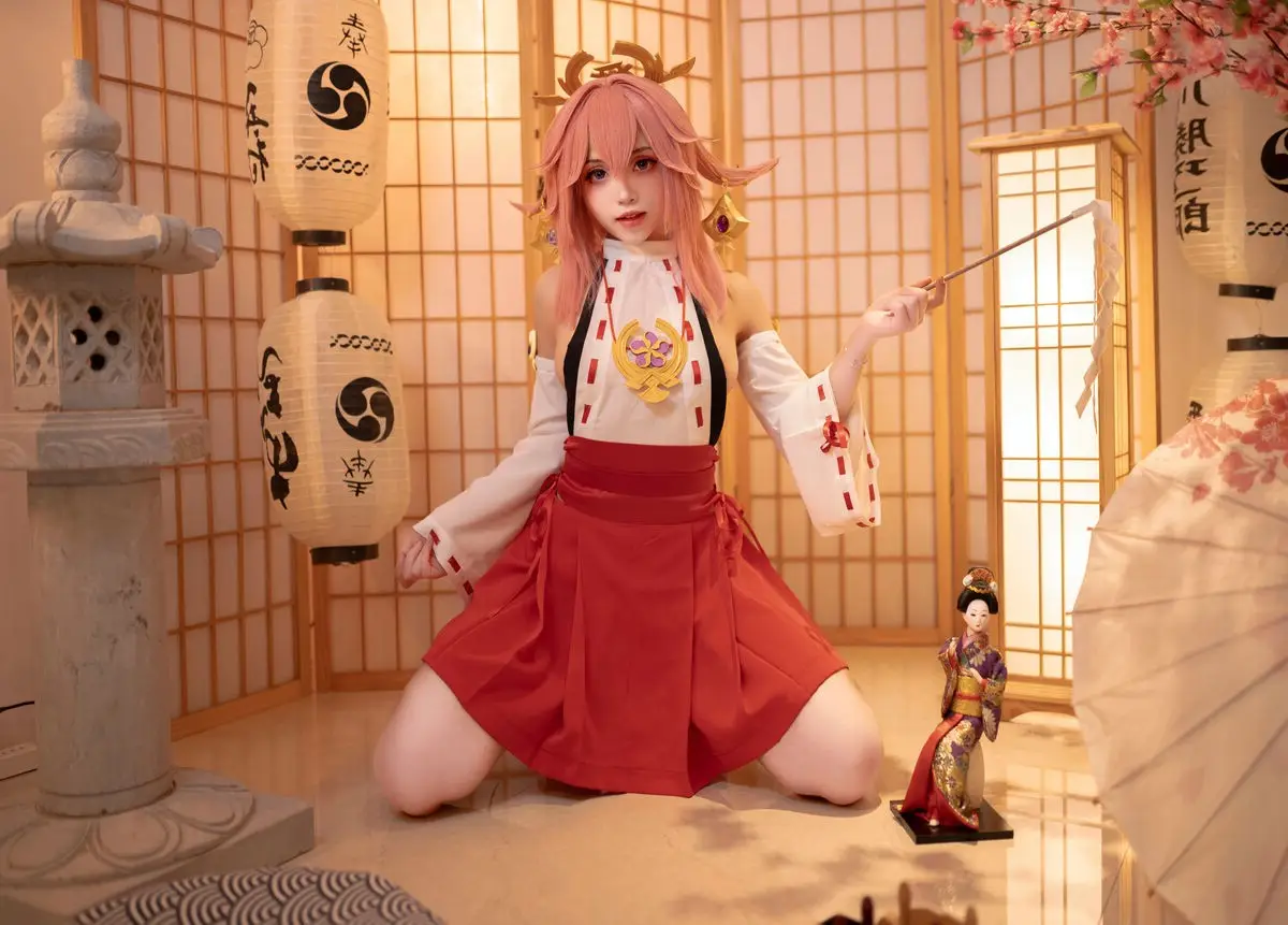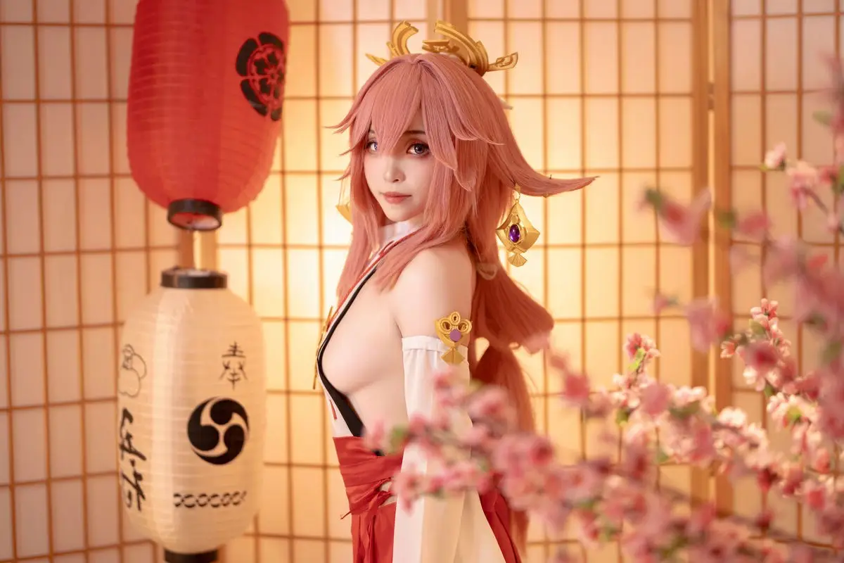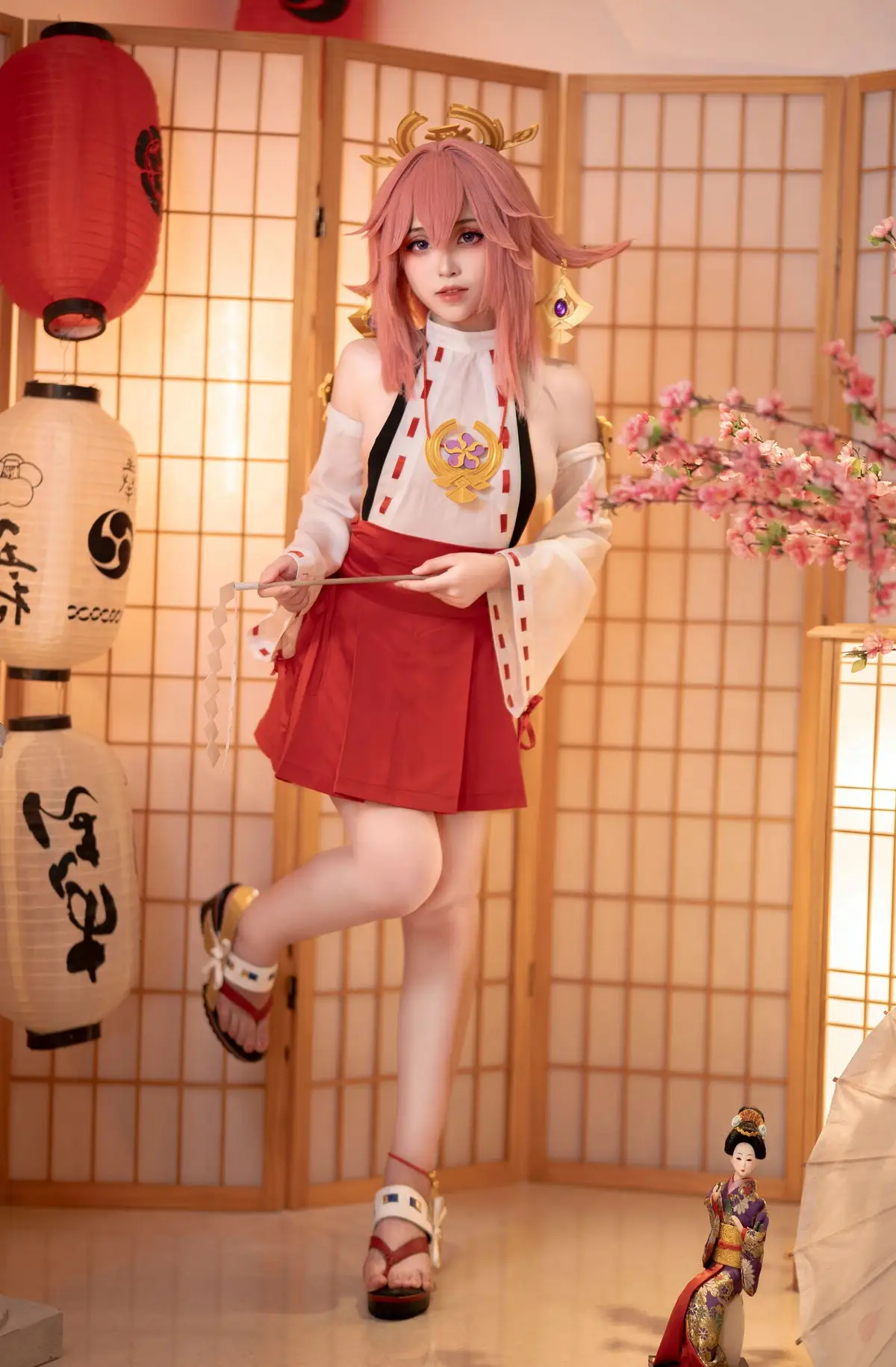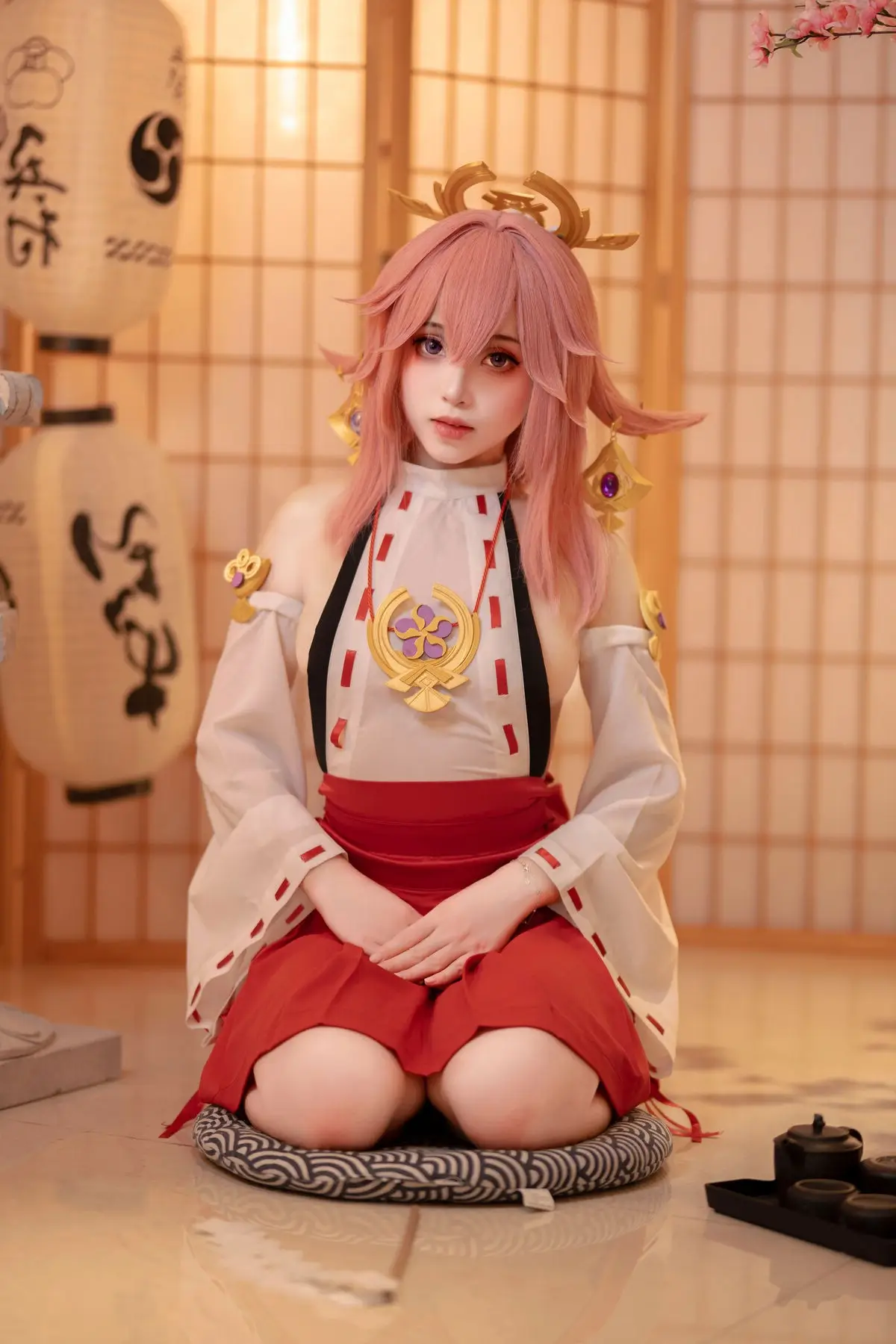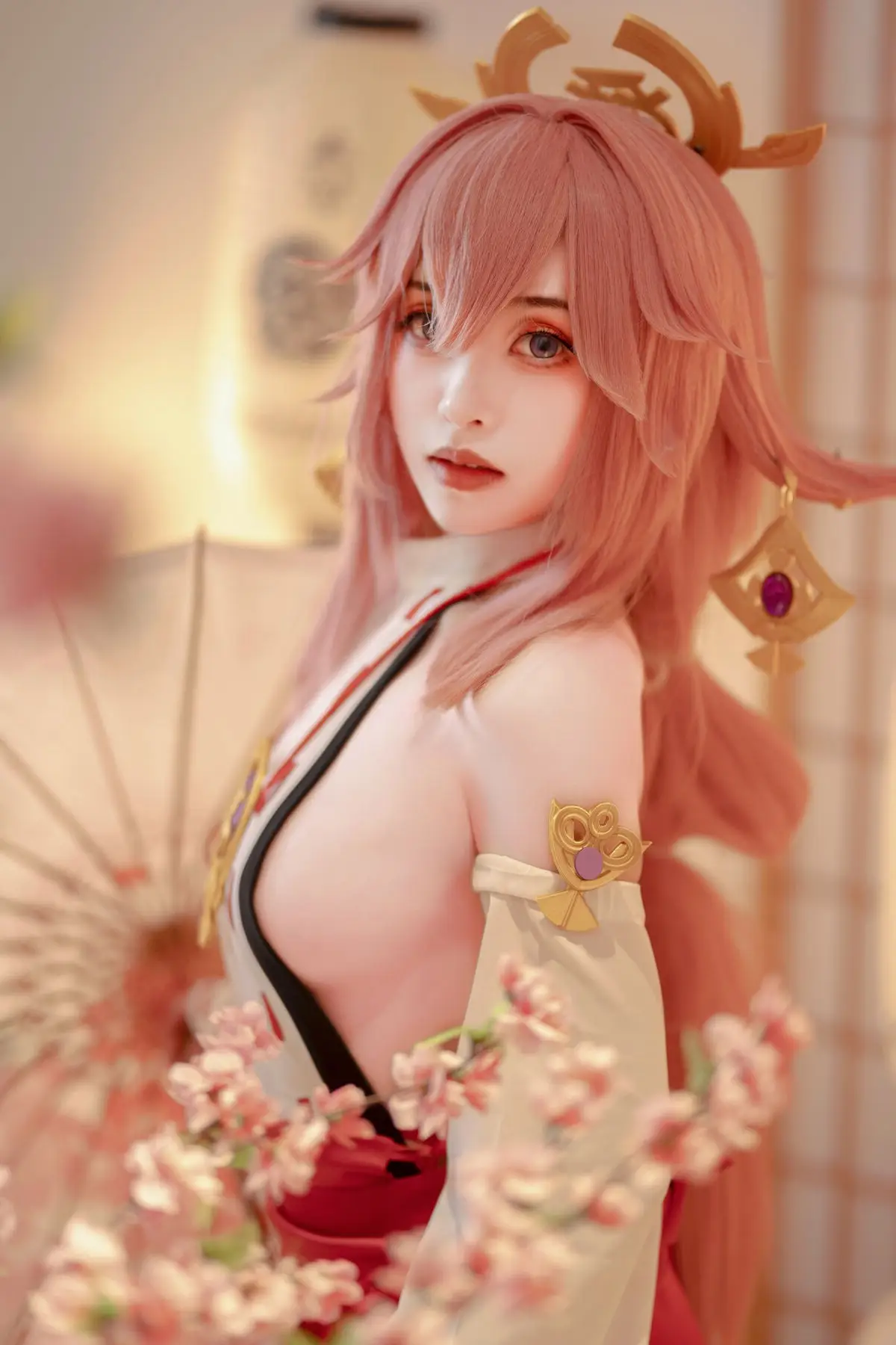 Coser Rizuna's Yae Miko Cosplay (91P) - Captivating Beauty from Genshin Impact