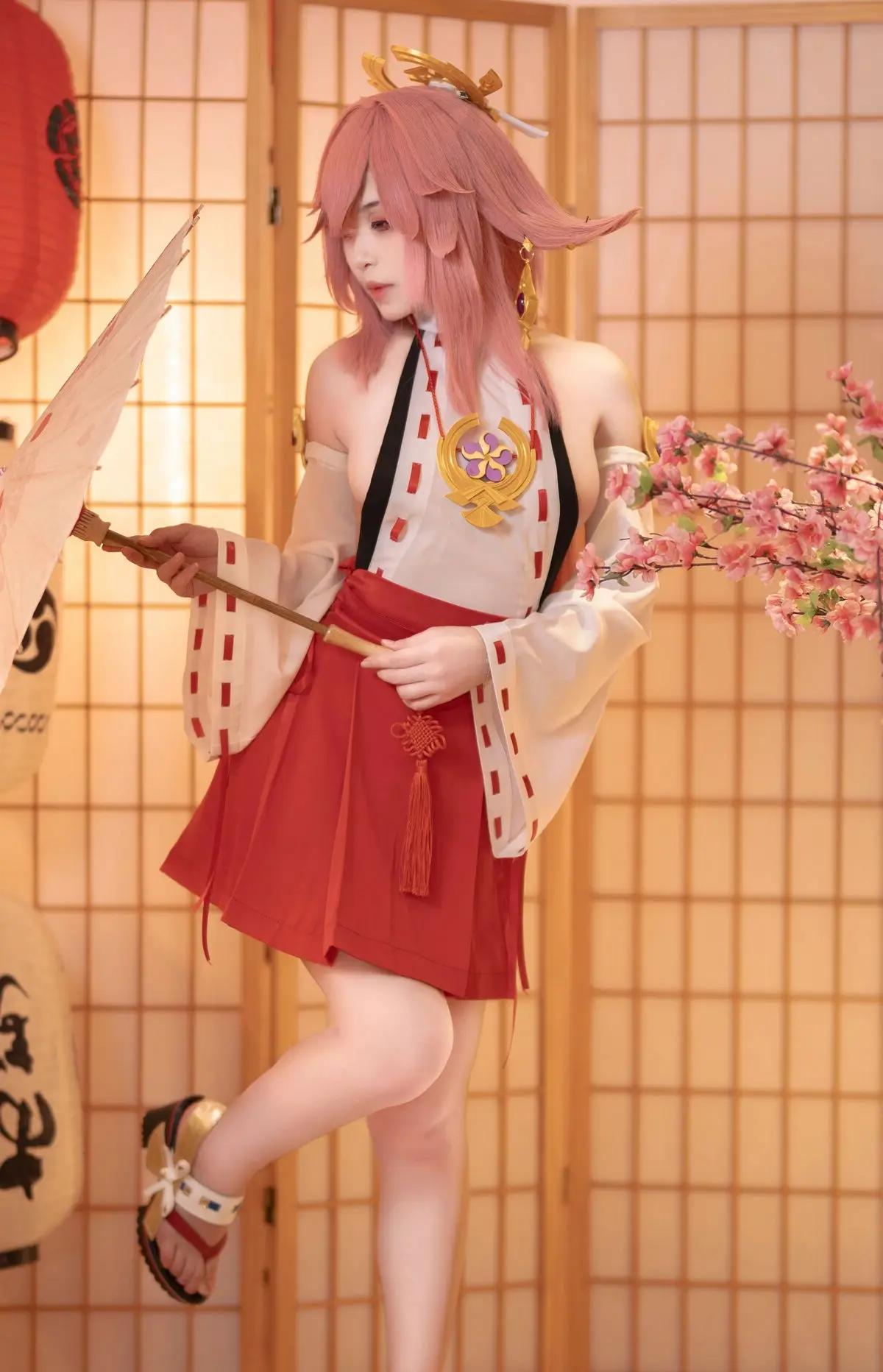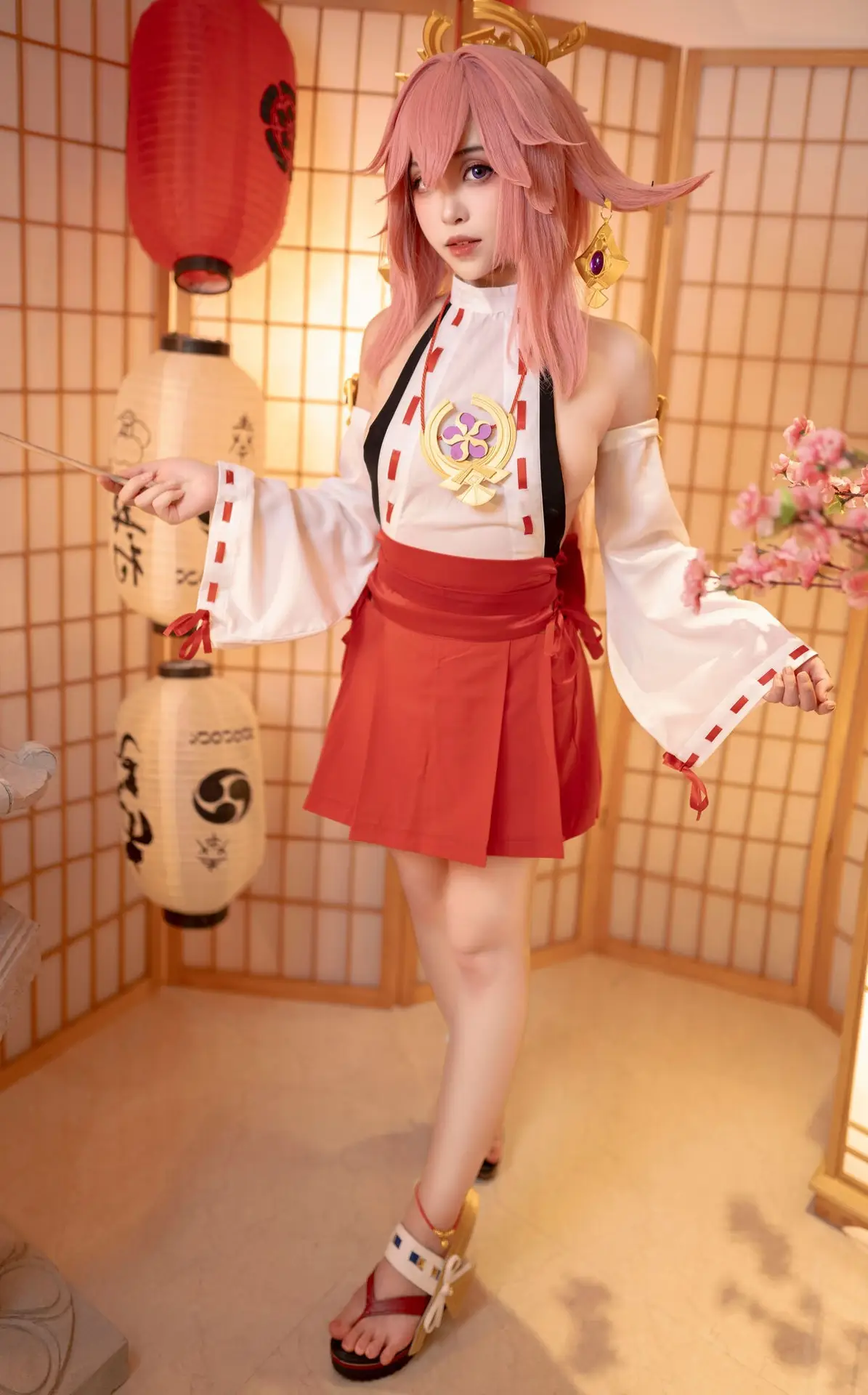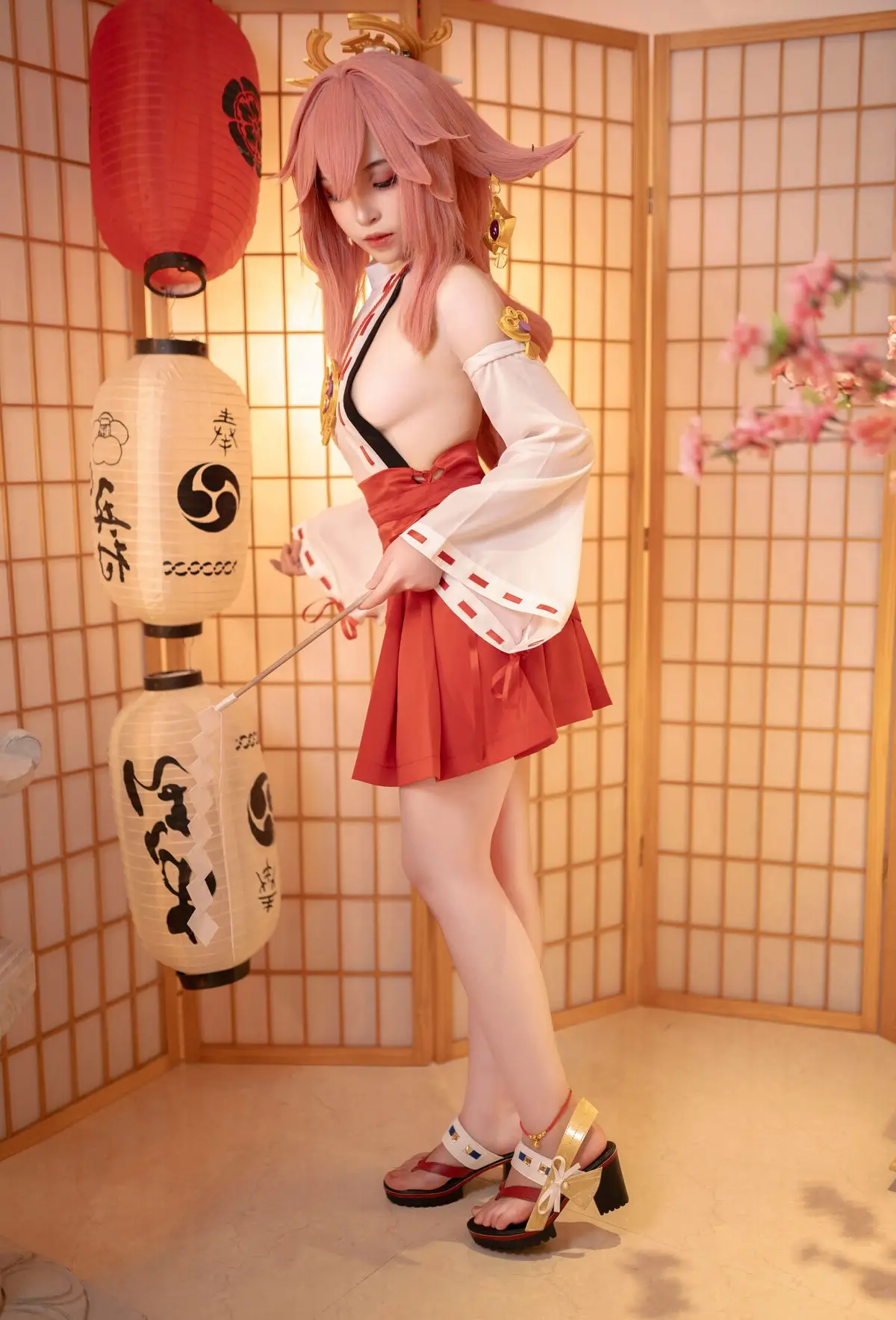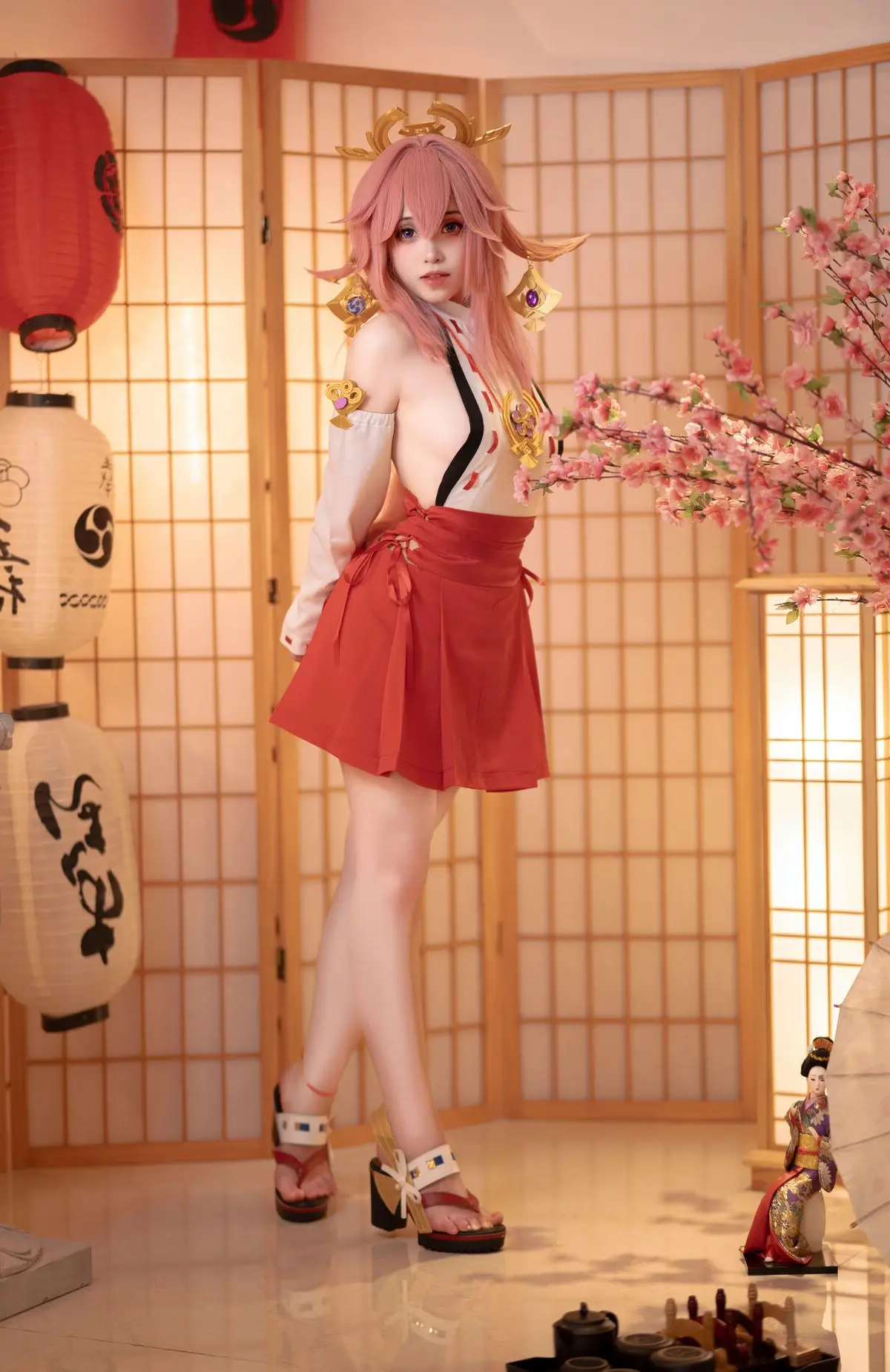 Coser Rizuna's Yae Miko Cosplay (91P) - Captivating Beauty from Genshin Impact