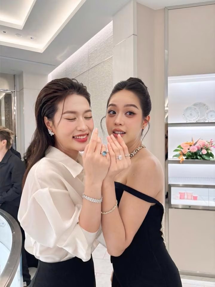 Vietnamese Miss Queens Thanh Thuy and Doan Thien An continue to captivate fans with their warm, candid moments captured in Thailand. Even without their usual matching outfits, both beauties effortlessly draw attention with their radiant looks and adorable expressions while enjoying a meal together. The image features a playful Thanh Thuy pouting and a gently smiling Doan Thien An, beautifully showcasing their deep, close sisterly bond that extends beyond glamorous events. This is a clear testament to their enduring friendship within Vietnamese showbiz, where these two queens consistently support and accompany each other. Such simple, everyday moments only deepen public affection for this talented and beautiful Miss duo.