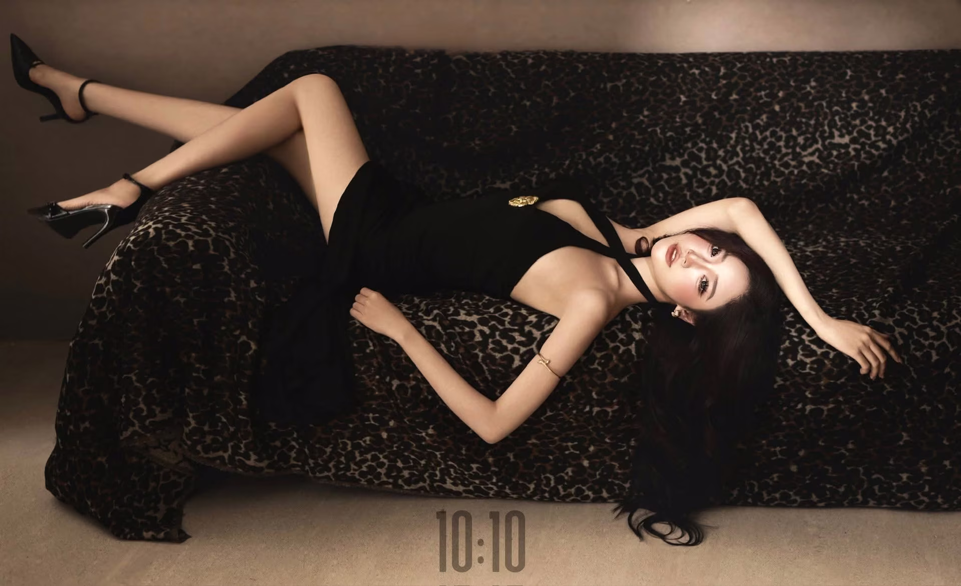This stunning photograph captures the mesmerizing beauty of a woman exuding captivating allure and contemporary style. She gracefully reclines on a sofa, draped in a soft, form-fitting black silk dress that accentuates her slender silhouette and long, elegant legs. The high slit and delicate halter-neck design, adorned with a sparkling gold embellishment, further enhance her sophisticated and mysterious aura. Every gesture and glance conveys the confidence and class of a true fashion icon. This image is more than just a picture; it is a declaration of timeless beauty, undeniable elegance, and the magnetic appeal of personal style that truly captivates. #Vietnamese #pretty #charm