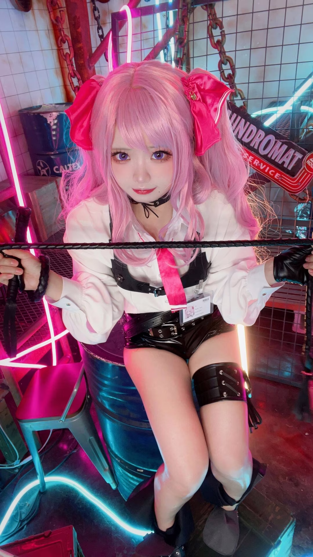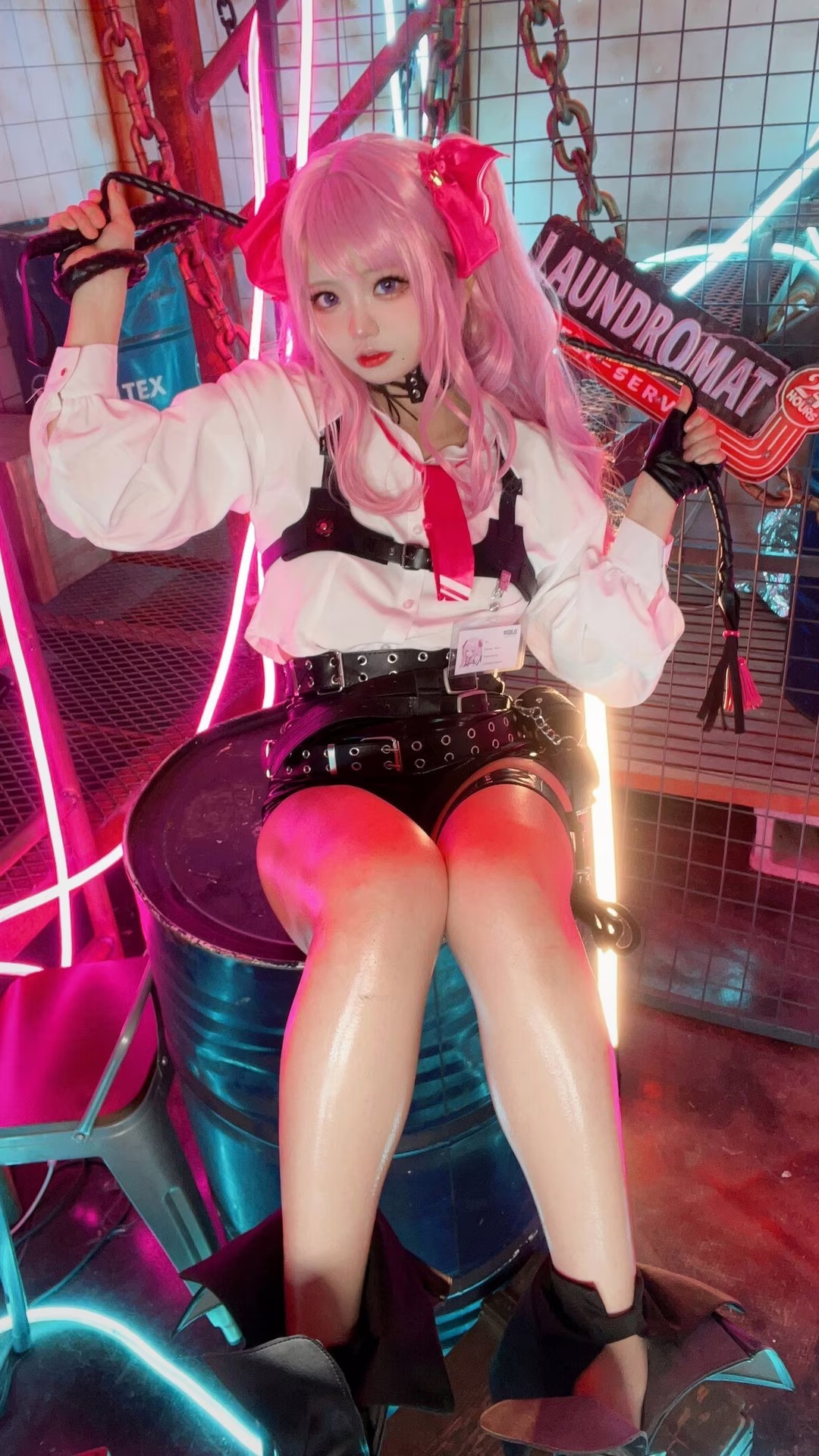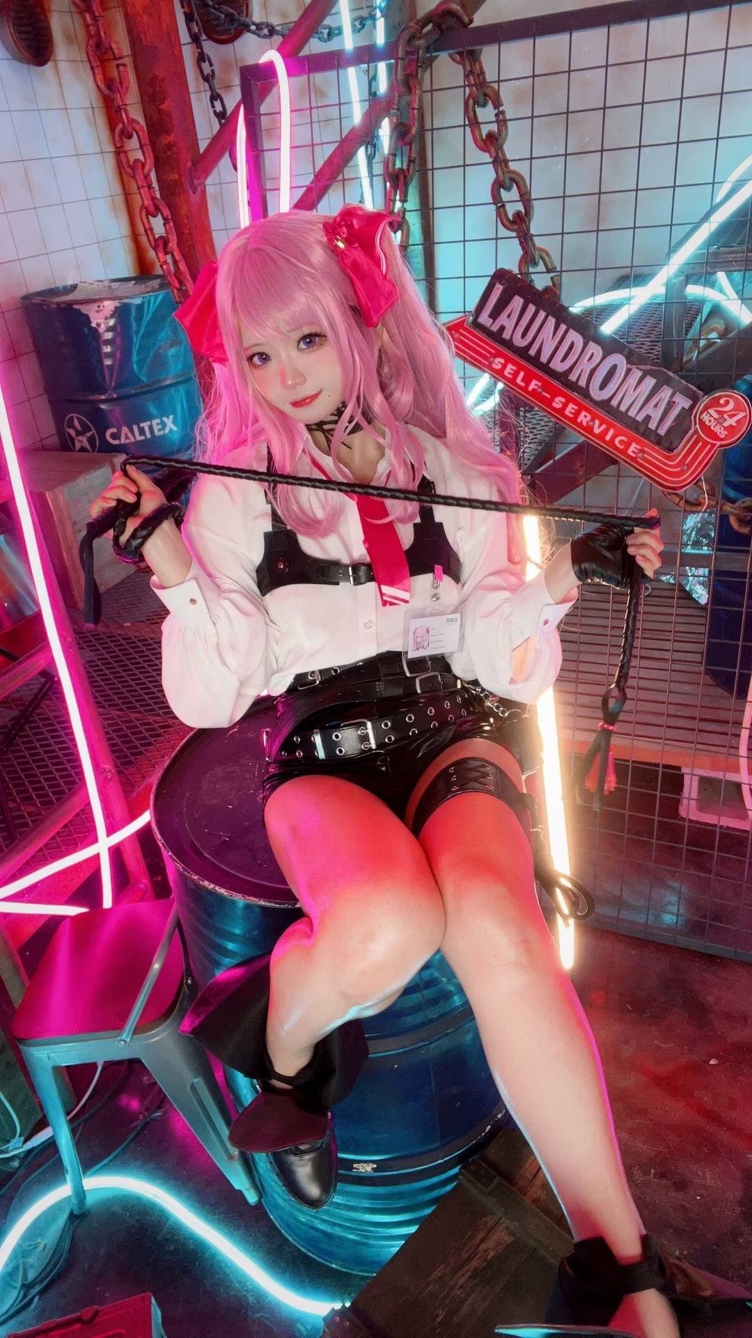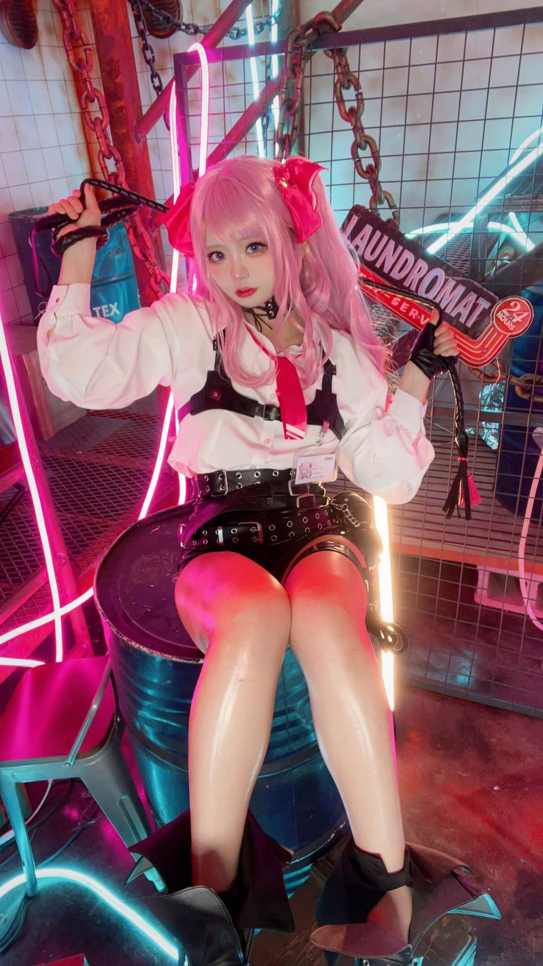 Coser Bangni邦尼 perfectly transforms into Viper from NIKKE Goddess of Victory. She showcases her alluring beauty in a glossy pink form-fitting outfit. The delicate bunny ears and white bow add a sweet yet seductive touch. With a confident sitting pose and sharp gaze Bangni邦尼 successfully captures Viper's essence. The industrial background with dim lighting creates a mysterious and dramatic atmosphere enhancing the coser's prominent beauty. Every detail from the costume to the expression is meticulously crafted delivering an authentic and captivating cosplay photoshoot. This is a wonderful visual experience for NIKKE fans and cosplay enthusiasts alike.#CoserBangni #NIKKEViper #Cosplay #PinkOutfit #NIKKEGame