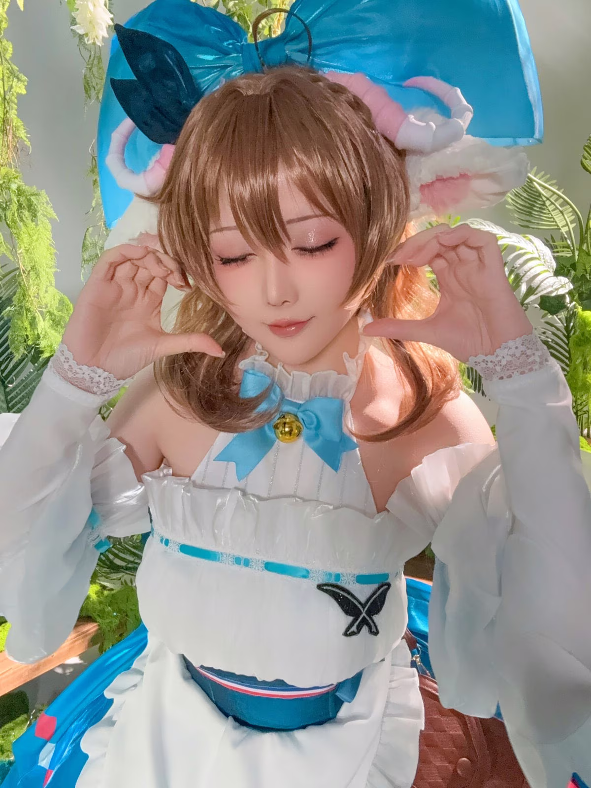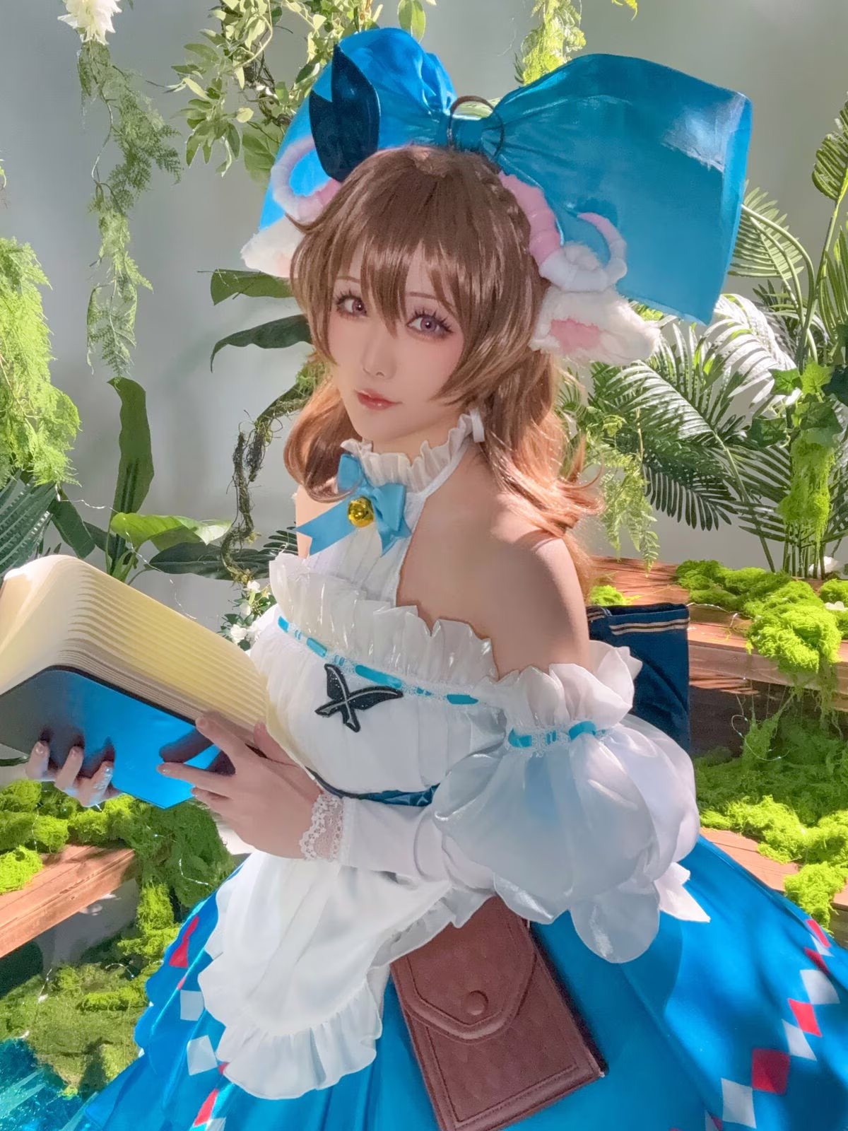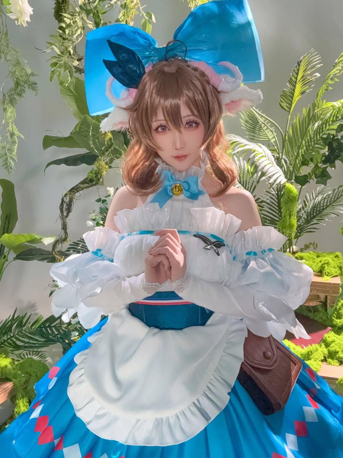Immerse yourself in the enchanting world of Arknights with Hoshilily's exquisite portrayal of Eyjafjalla. This cosplay masterpiece showcases Hoshilily's dedication meticulously recreating every intricate detail of the beloved character's costume from the serene blue hues to the delicate ruffles. Her gentle expression and gracefully clasped hands perfectly capture Eyjafjalla's ethereal charm and quiet strength. Set against a lush natural backdrop the scene evokes a sense of tranquility and magic enhancing the character's pure beauty. This stunning collection is a must-see for Arknights fans and cosplay enthusiasts alike offering a truly captivating visual experience.