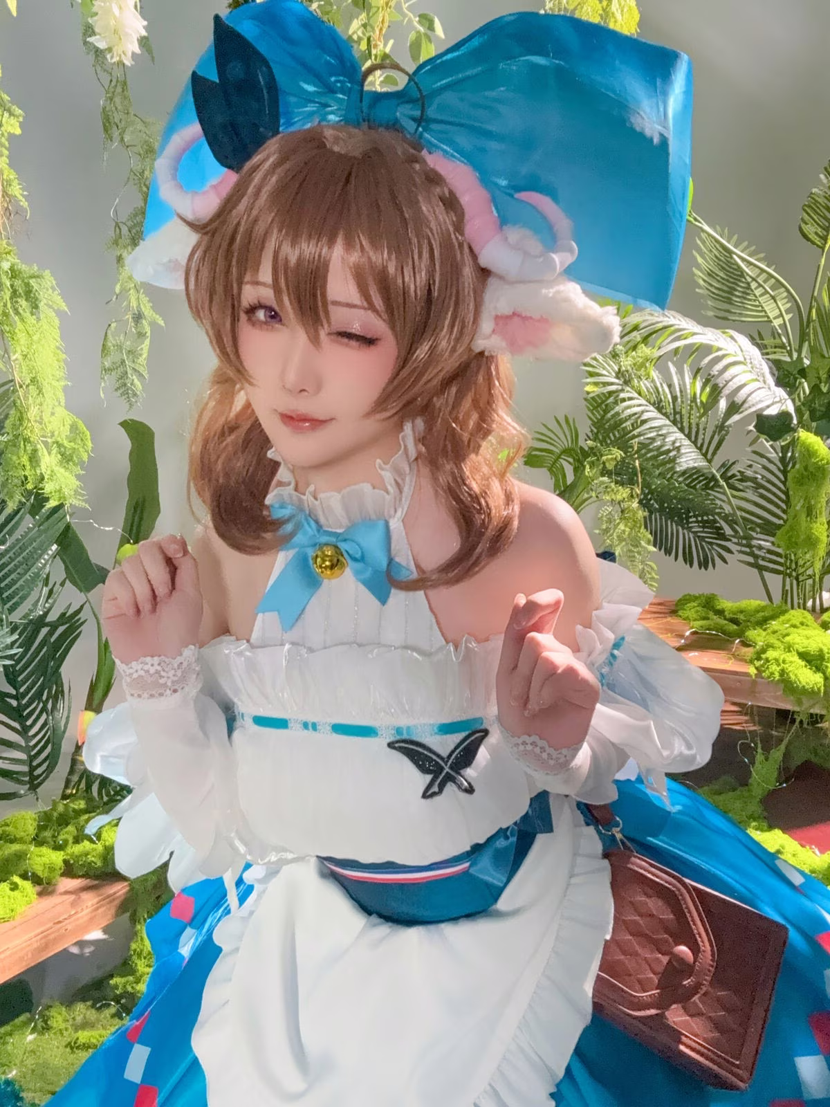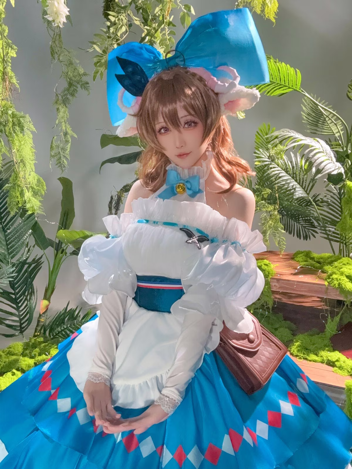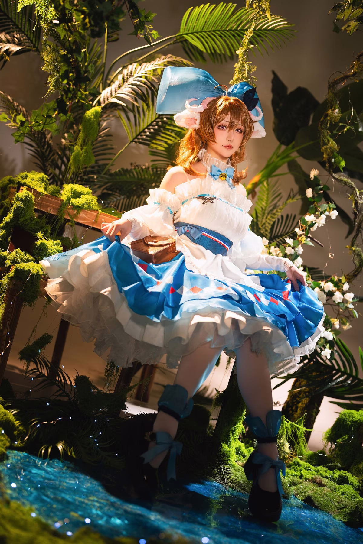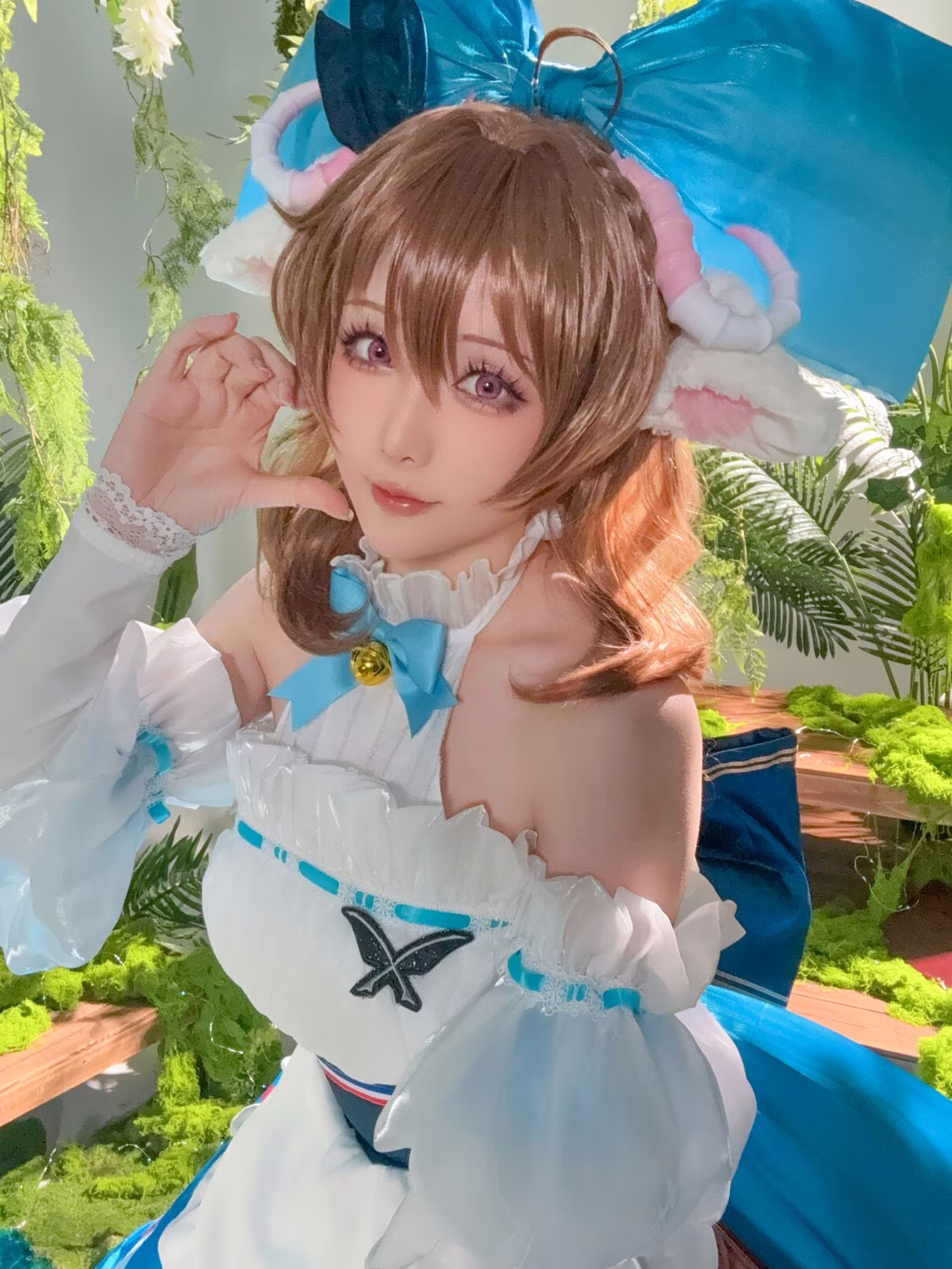 Immerse yourself in the enchanting world of Arknights with Hoshilily's exquisite portrayal of Eyjafjalla. This cosplay masterpiece showcases Hoshilily's dedication meticulously recreating every intricate detail of the beloved character's costume from the serene blue hues to the delicate ruffles. Her gentle expression and gracefully clasped hands perfectly capture Eyjafjalla's ethereal charm and quiet strength. Set against a lush natural backdrop the scene evokes a sense of tranquility and magic enhancing the character's pure beauty. This stunning collection is a must-see for Arknights fans and cosplay enthusiasts alike offering a truly captivating visual experience.
