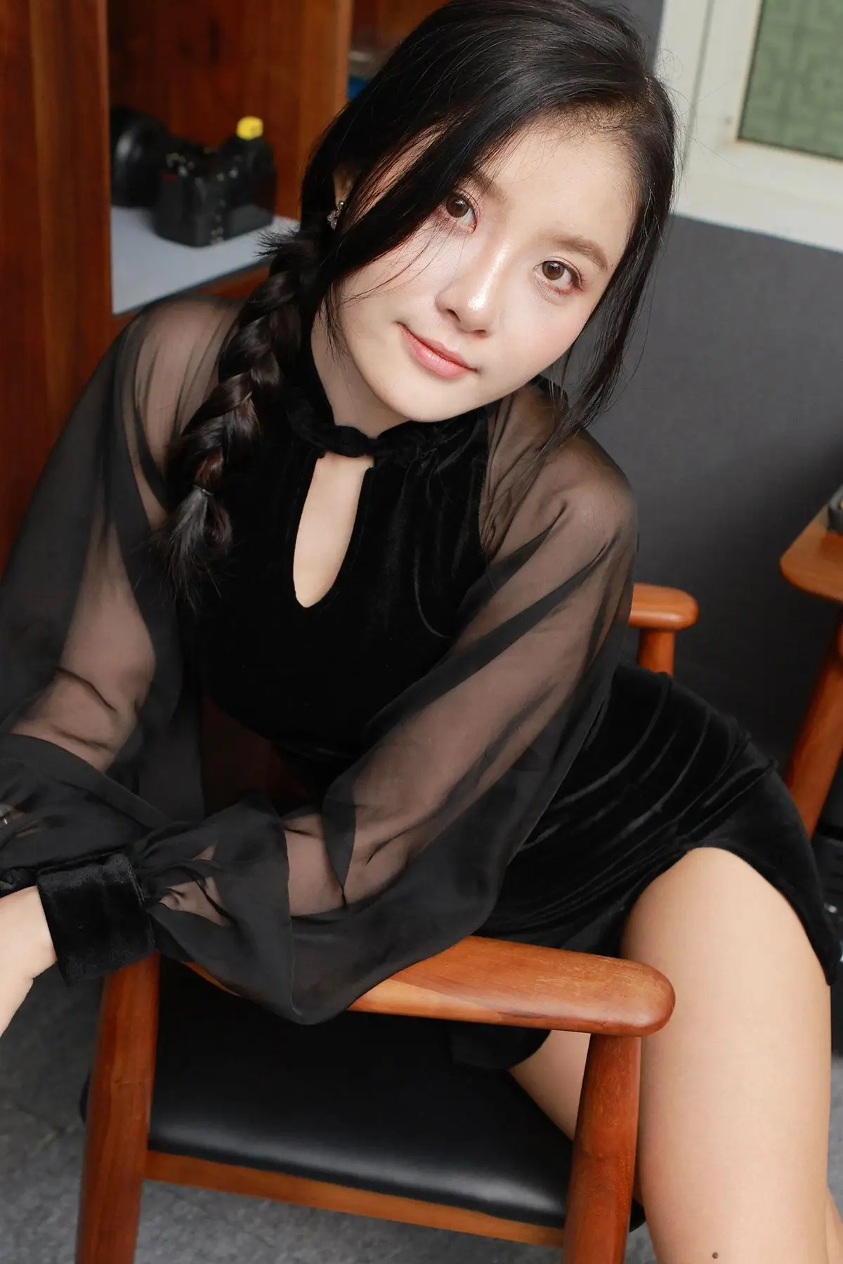 Delve into the IESS SXJ No.2086 collection, where Model Wan Ping radiates with exquisite Asian beauty and a captivating, confident demeanor. In this stunning image Wan Ping is elegantly clad in a chic black dress perfectly complemented by sheer hosiery and sophisticated clear-strapped heels creating an ensemble that is both professional and alluring. Her graceful seated pose at a desk combined with a mesmerizing gaze and a gentle gesture portrays a modern woman full of charm and appeal. The Wan Ping Part01 series promises an authentic artistic experience celebrating her graceful figure and refined elegance. Don't miss this unique collection to fully immerse yourself in the distinctive IESS style.#IESS #WanPing #ChineseModel #ElegantStyle #SheerHosiery