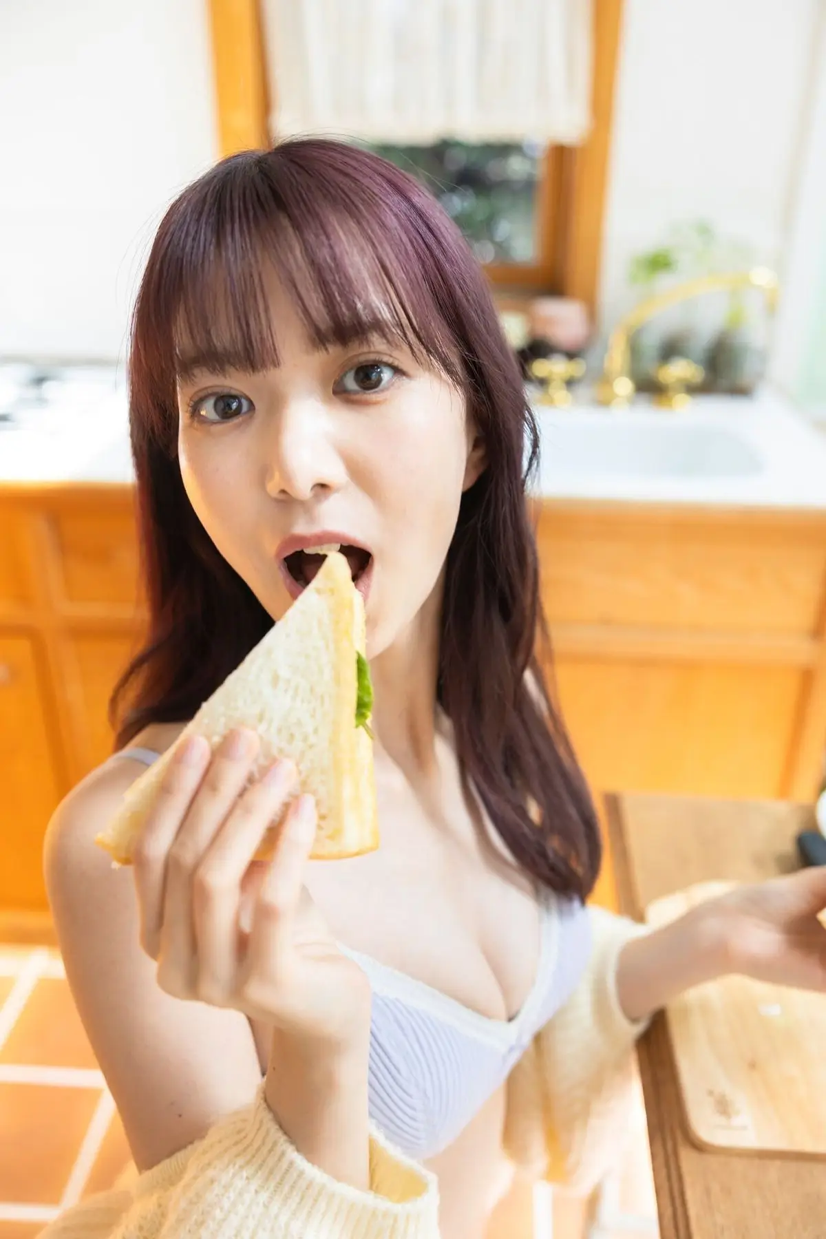 This captivating close-up reveals the pure and enchanting beauty of Kuki Naho. With a direct, expressive gaze and flowing brown hair gently framed by bangs, this Japanese model exudes natural grace. Her flawless skin, soft pink lips, and clear eyes create a vibrant portrait full of life. This exquisite moment is a highlight from Kuki Naho's exclusive Digital Photobook, offering fans a deeper look into her charming allure. Dive into the irresistible charm of Kuki Naho as captured in every page of this stunning collection.#KukiNaho #JapaneseModel #DigitalPhotobook #NaturalBeauty #Portrait