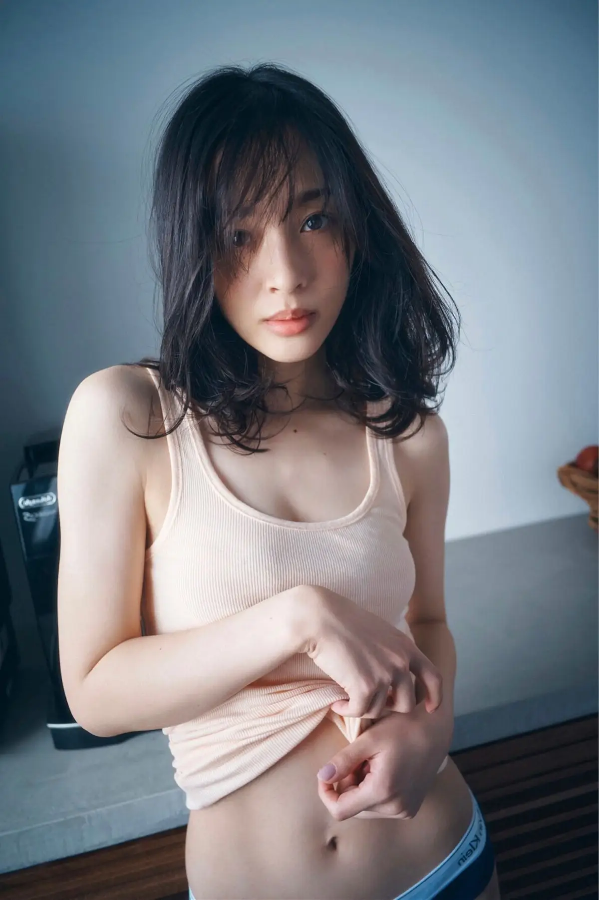 This captivating image features Misaki Jinbu (神部美咲) from her exclusive FLASH Digital Photo Book Vol.1 Part01, titled 'Just Between Us'. Misaki Jinbu exudes a delicate charm, posing gracefully on a chair with an alluring gaze. Her light, partially open top subtly highlights her elegant figure, creating an intimate and inviting atmosphere. The soft lighting beautifully enhances her smooth skin and flowing hair, adding to the photo's tender and personal feel. Every detail, from her gentle posture to her subtle expression, evokes a sense of closeness and allure, making these images feel like a private conversation with Misaki Jinbu. This collection promises a unique glimpse into her enchanting world.#MisakiJinbu #JinbuMisaki #JapaneseModel #DigitalPhotoBook #FLASHMagazine