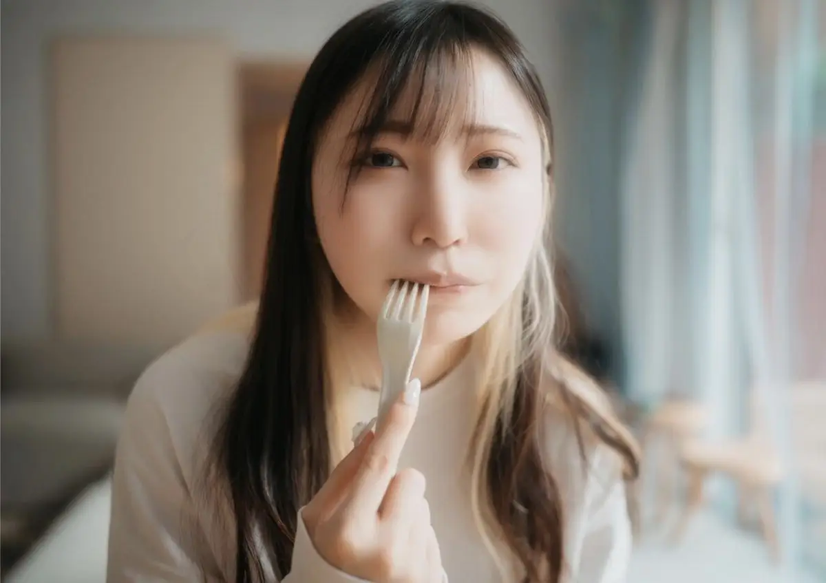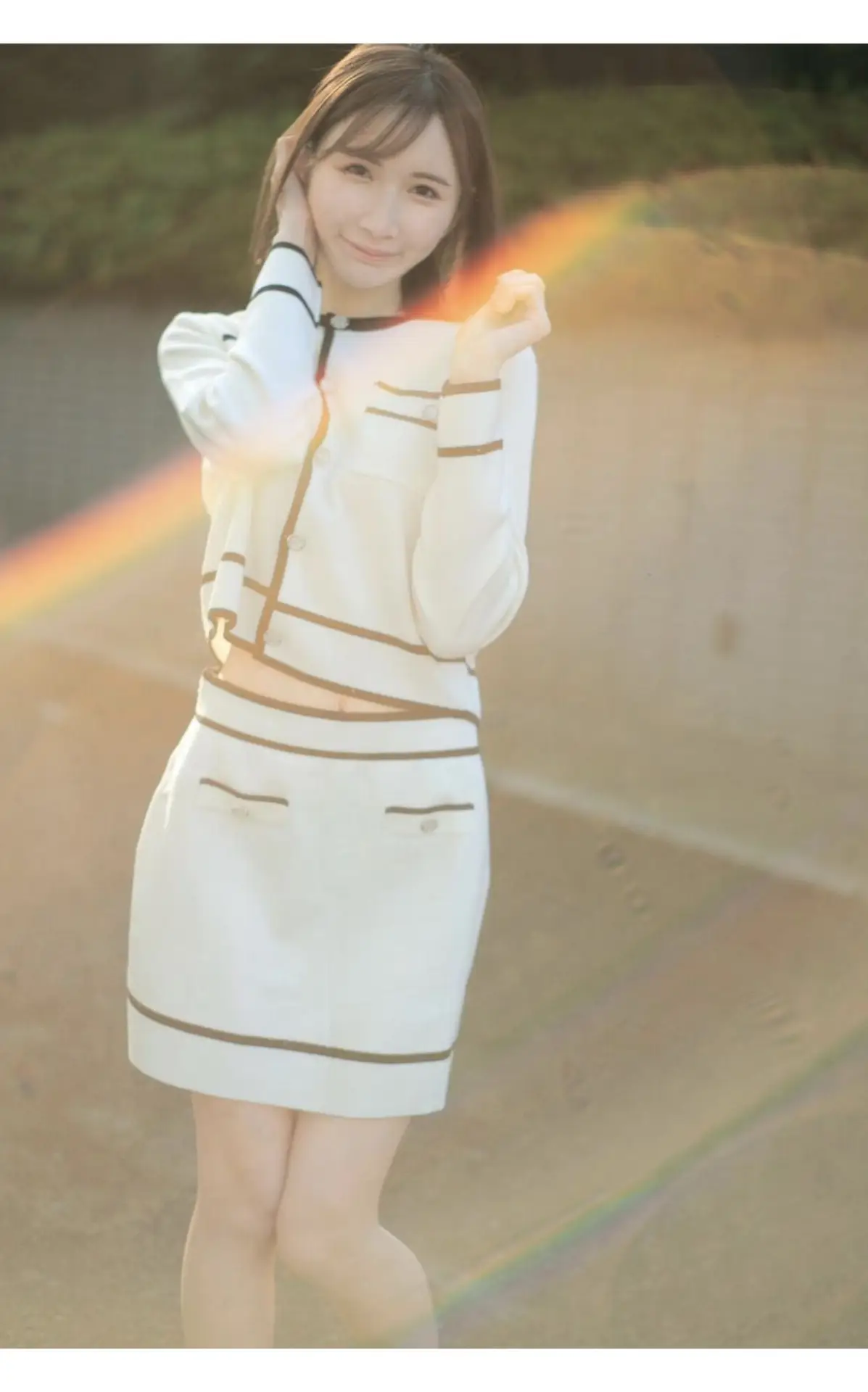 This image captures a delightful moment with Sora Amakawa, a Japanese model known for her natural beauty and engaging presence. Dressed in an elegant white cardigan with black trim, she enjoys a small snack, perhaps a delicate pastry, with a playful expression and expressive eyes directed at the viewer. Her smooth dark hair and gentle smile highlight her graceful and approachable demeanor. The picture exudes sweetness, youthful charm, and a hint of allure, inviting viewers to discover more about her style and personality. It's a glimpse into an effortless attractiveness, simply showcasing an everyday moment filled with captivating appeal.#SoraAmakawa #JapaneseModel #NaturalBeauty #EverydayCharm #PlayfulMoments