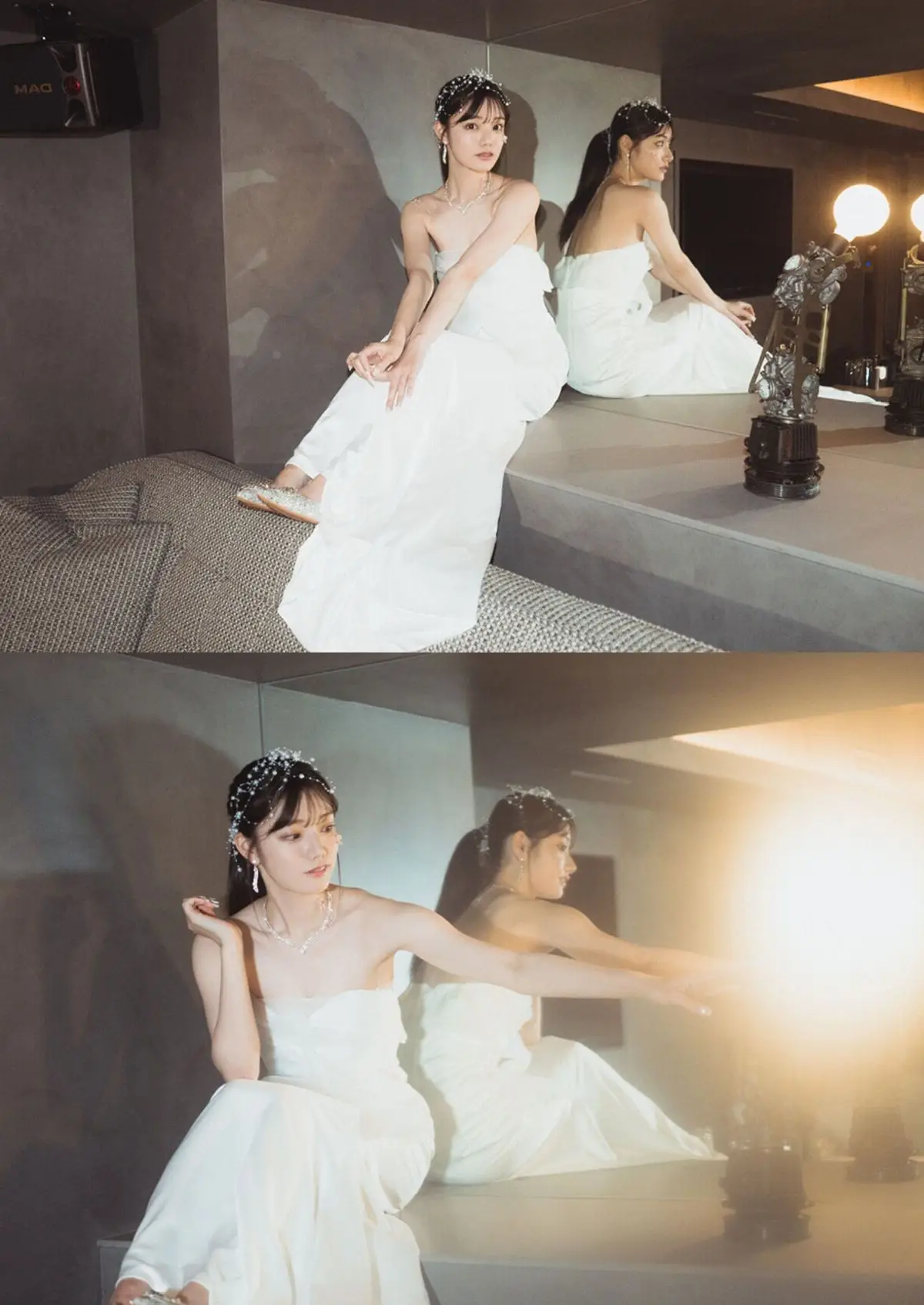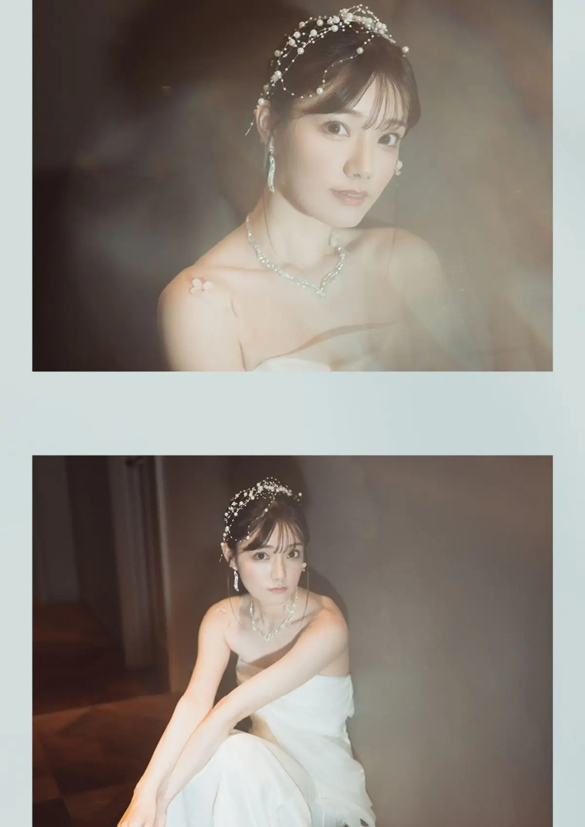 This captivating image features Rena Miyashita 宫下玲奈 in a moment of pure elegance and serenity. She graces the frame in a delicate white strapless gown, accentuating her gentle beauty and slender silhouette. Her ensemble is beautifully complemented by a shimmering pearl headpiece and a subtle necklace, evoking a modern princess or sophisticated bridal aesthetic. Her gaze is enchanting, conveying both confidence and a captivating allure. The soft shadow cast behind her subtly enhances her refined facial features. This photograph is a highlight from the exclusive LadyMary Part02 collection where Rena Miyashita masterfully showcases her versatile charm transitioning from innocent grace to alluring maturity sure to captivate every admirer.#RenaMiyashita #LadyMary #EtherealBeauty #WhiteGown #JapaneseModel