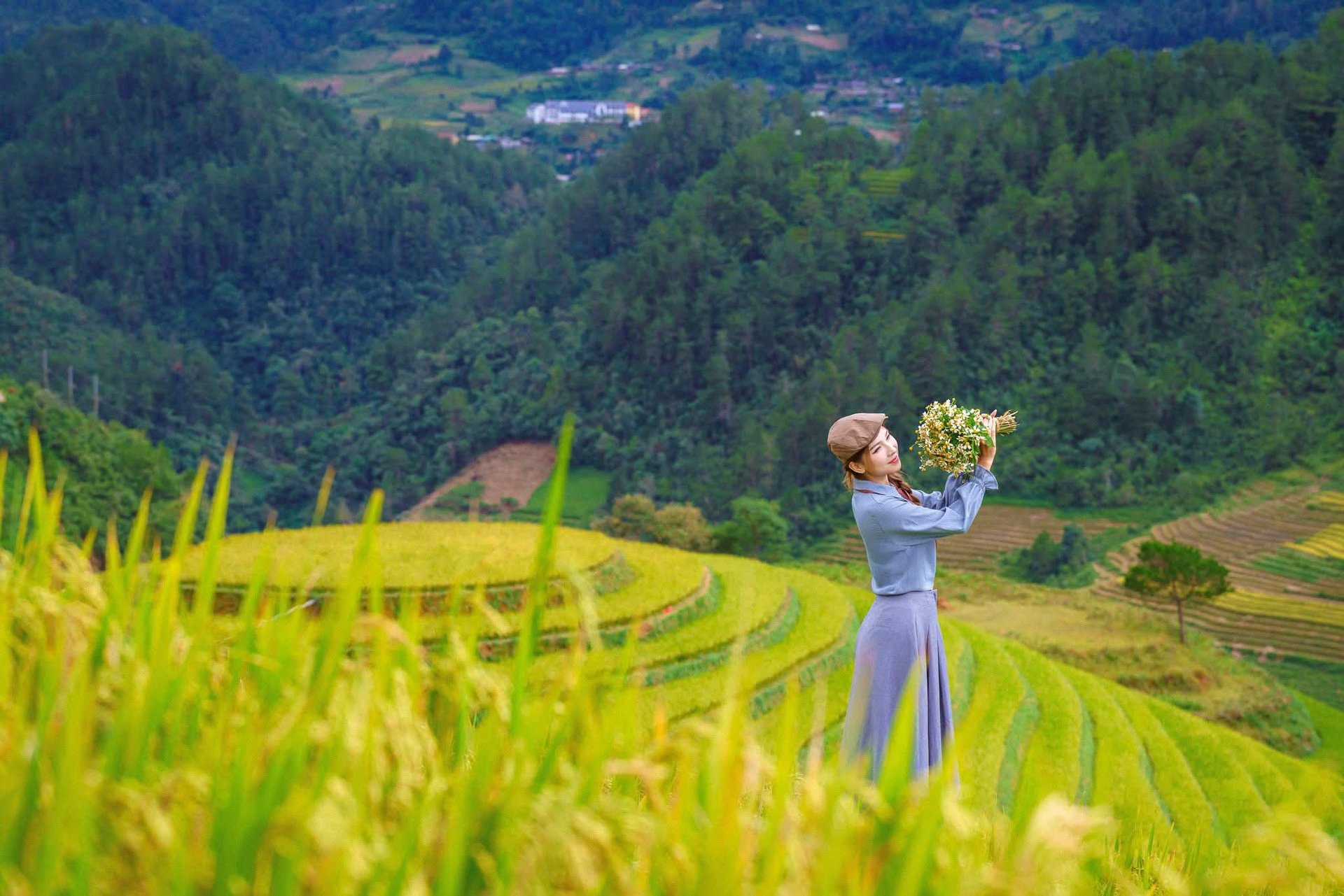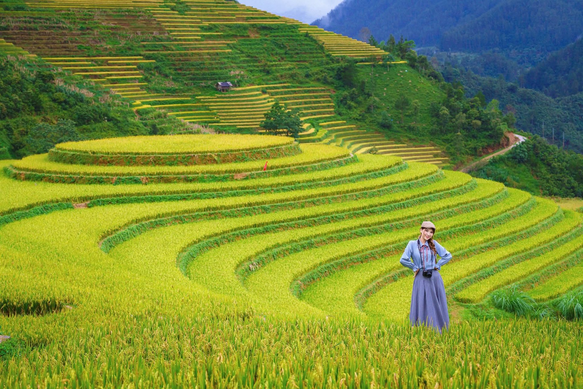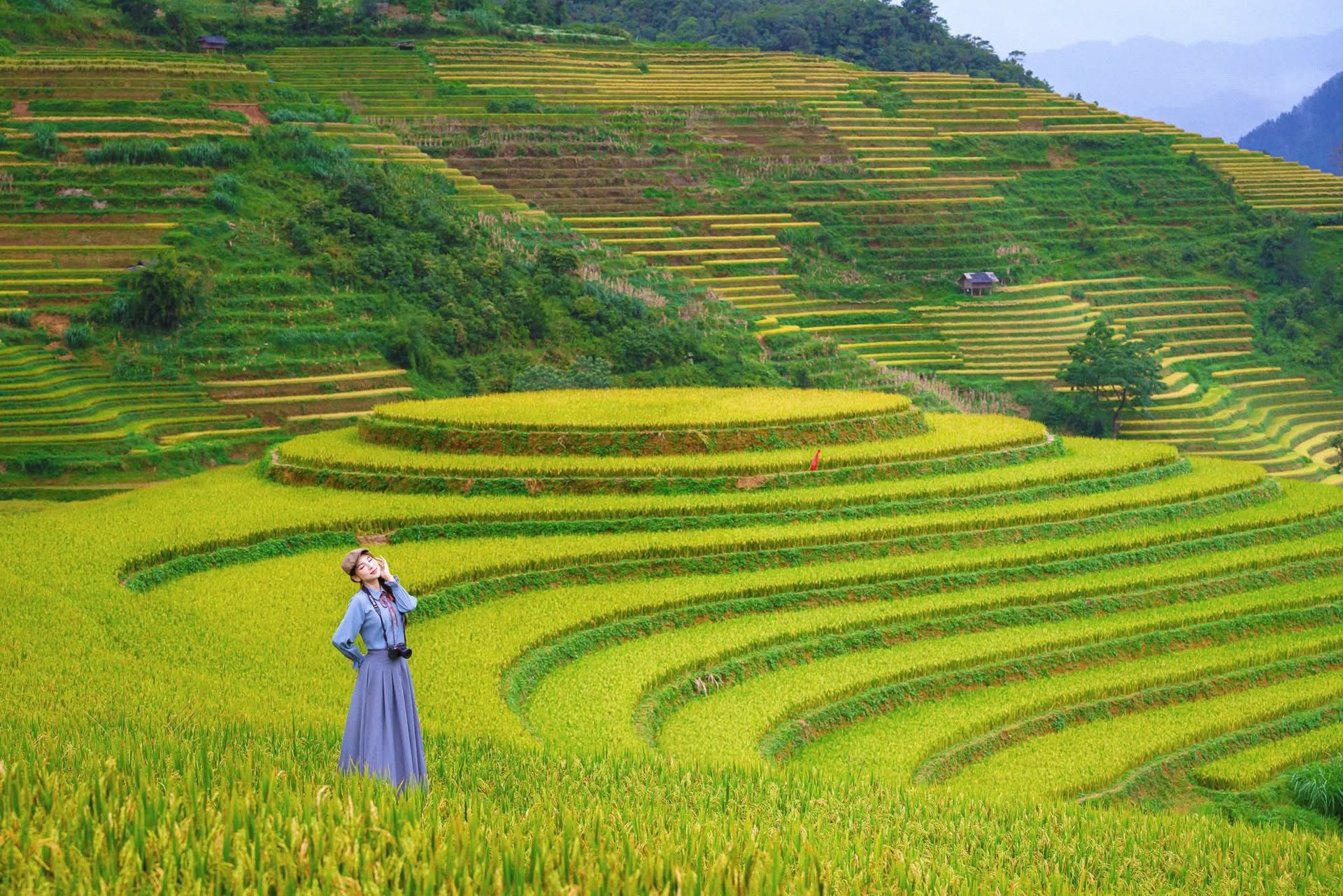 Sa Pa during its golden rice season reveals a breathtaking splendor across the Northwestern mountains The terraced fields glow in shades of yellow curving gracefully like silken ribbons embracing the meandering river creating a majestic and enchanting natural masterpiece This is the ideal time for travelers to explore Vietnams unique landscape and capture countless Instagram worthy moments This stunning scenery is not just a perfect destination for photography enthusiasts but also a place to immerse oneself in the tranquility of the villages and feel the essence of nature Sa Pas ripe rice season truly offers an unforgettable travel experience a true symbol of Vietnams natural beauty