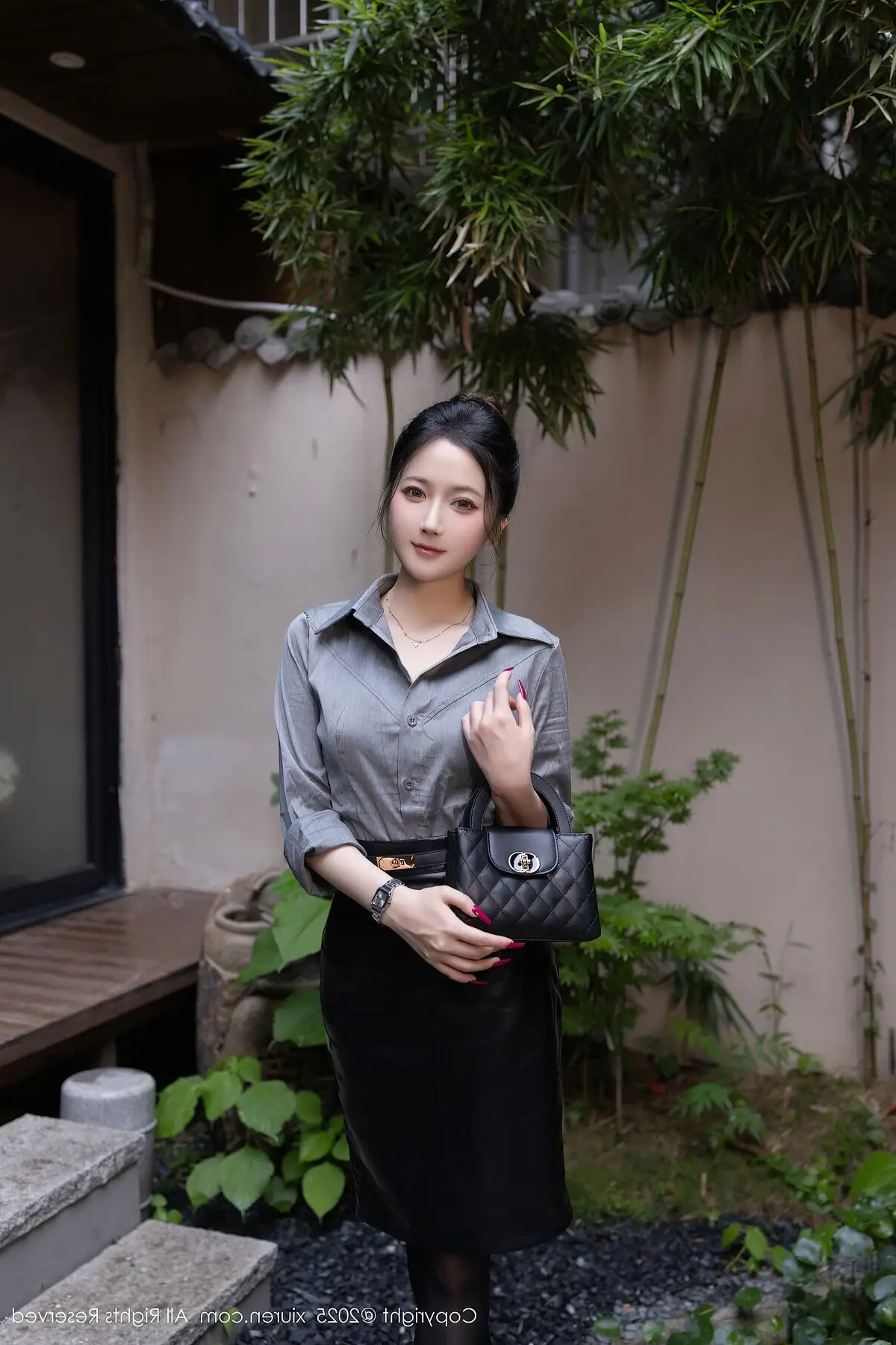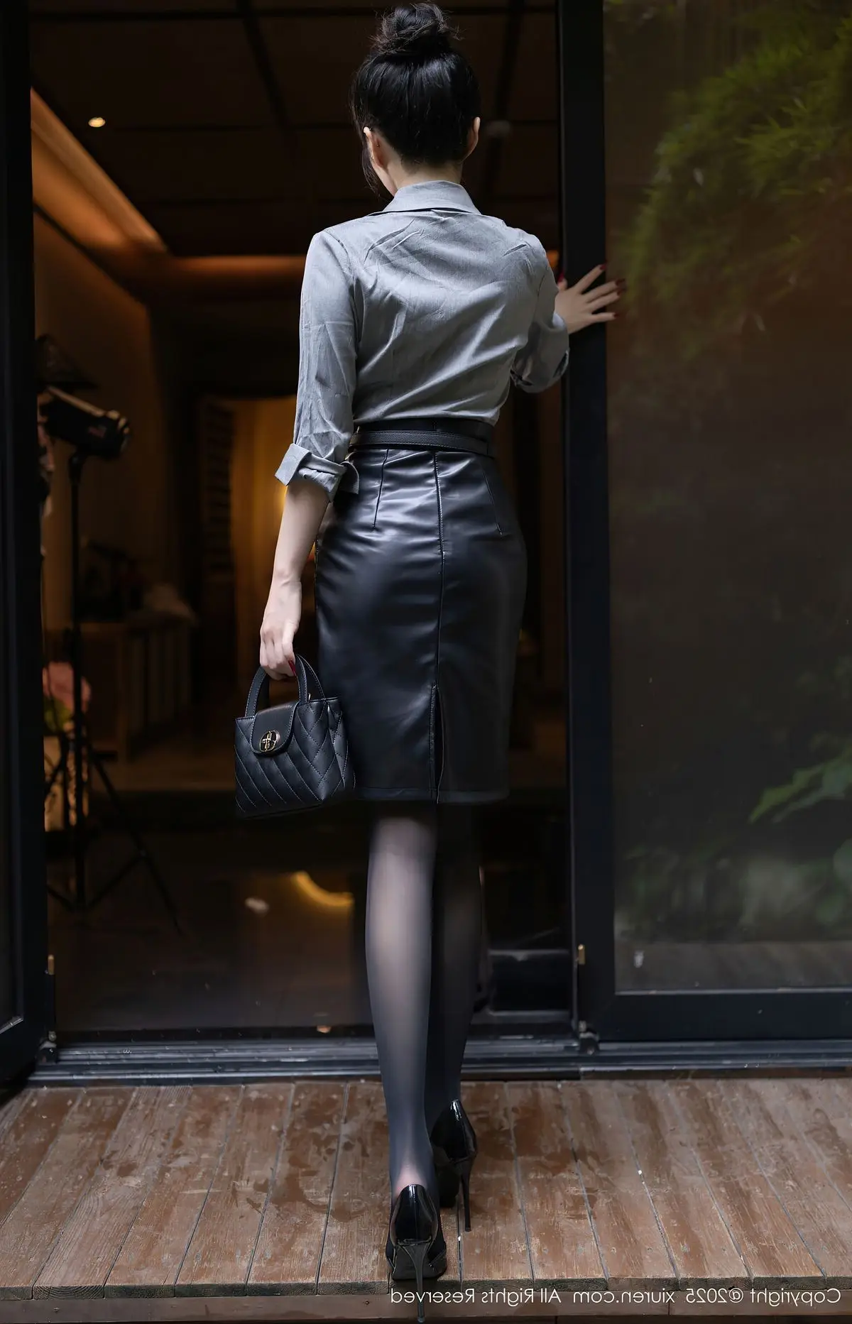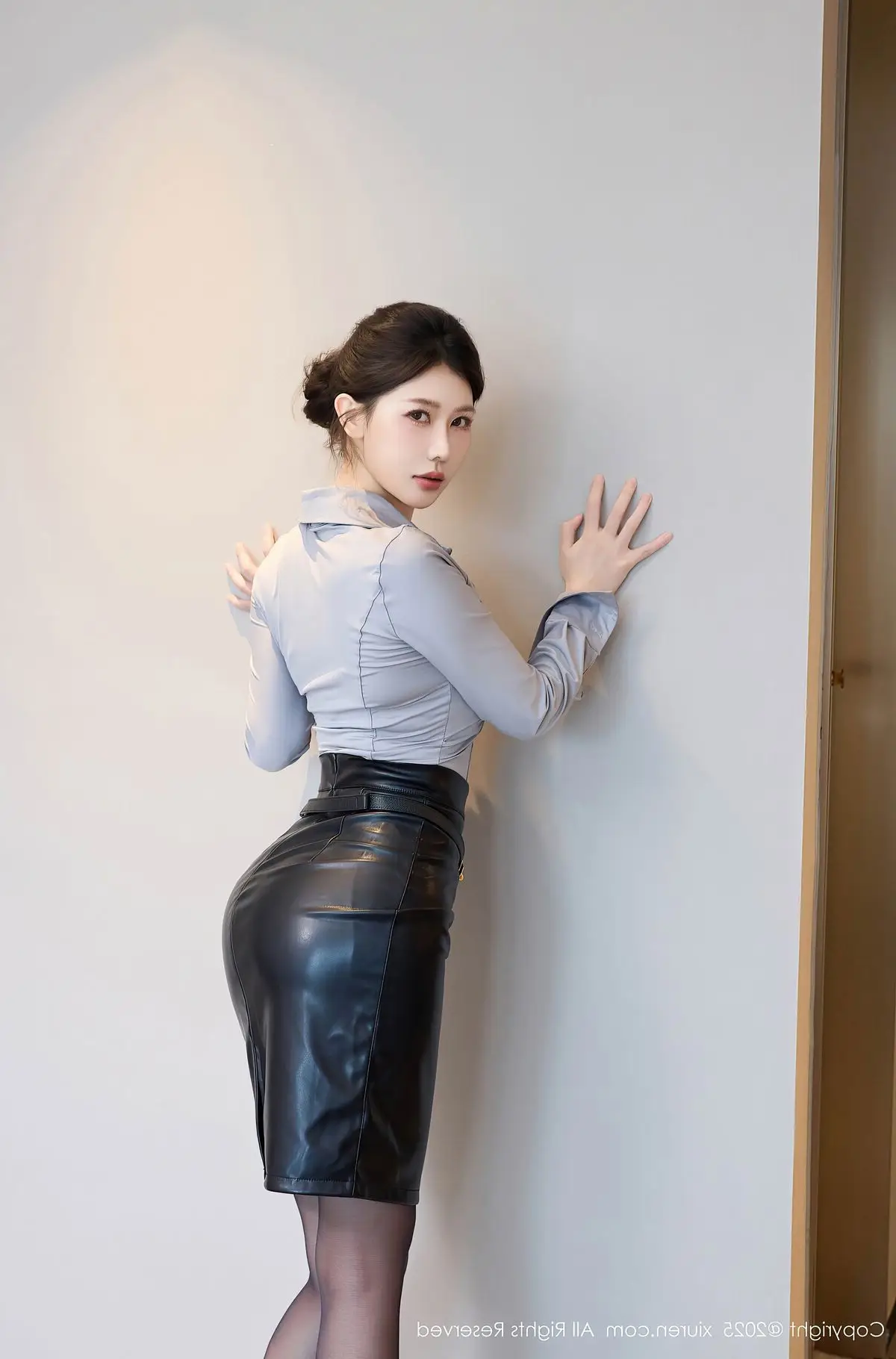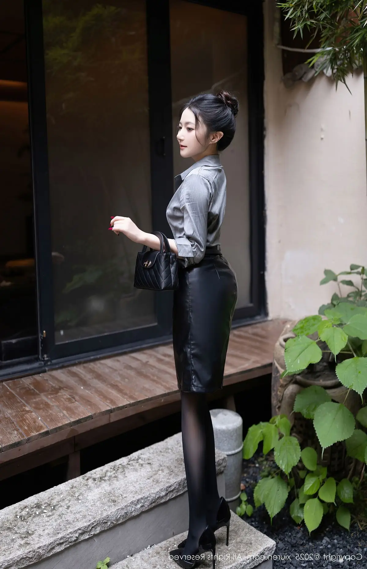 In the XiuRen No.10635 collection, model Yu Zi Jiang Fish captivates with her elegant and professional demeanor. She wears a tasteful grey collared shirt paired with a form-fitting black leather pencil skirt, highlighting her slender silhouette. Her legs are gracefully showcased through sheer black stockings and pointed high heels, creating a look that is both modern and alluring. A small black handbag serves as the perfect accent, completing a sophisticated office ensemble. Every step Yu Zi Jiang Fish takes down the pebbled hallway exudes confidence and professionalism, embodying the contemporary beauty of a modern woman.#YuZiJiangFish #XiuRen #OfficeFashion #LeatherSkirt #ElegantStyle