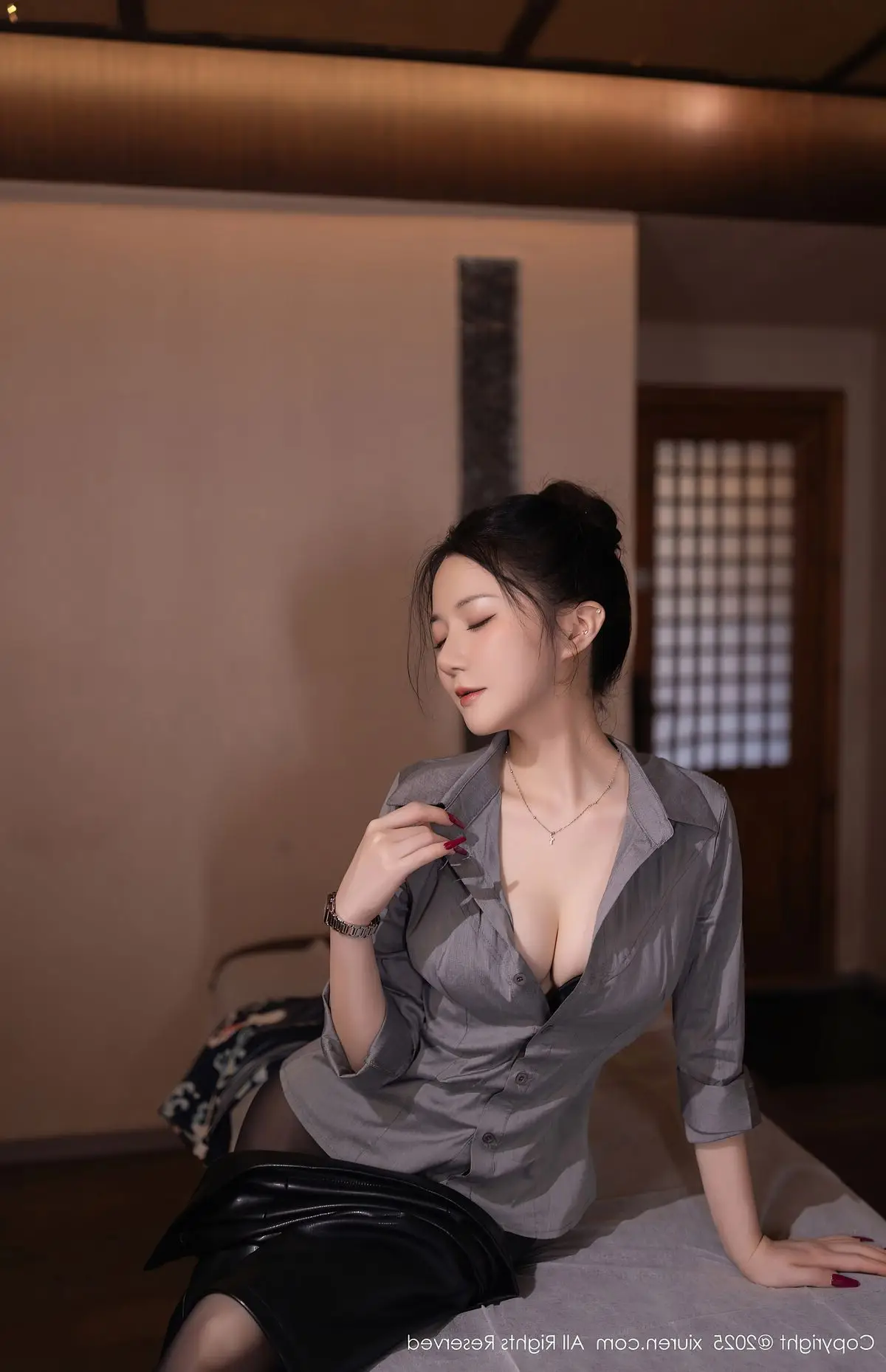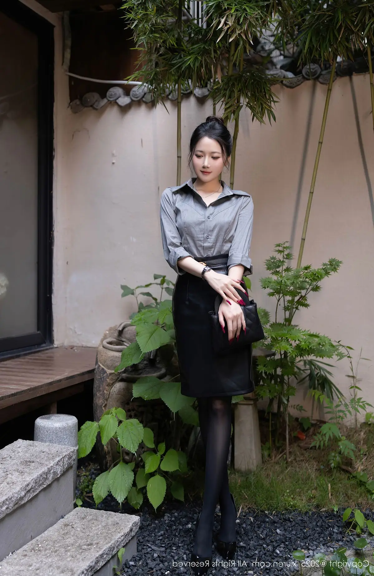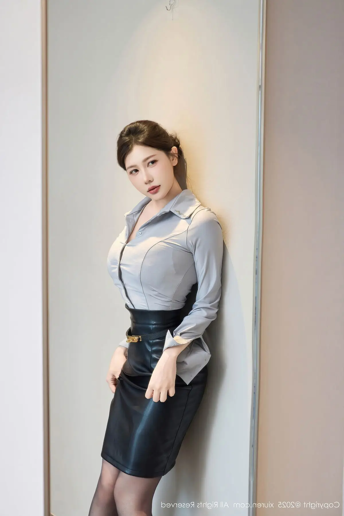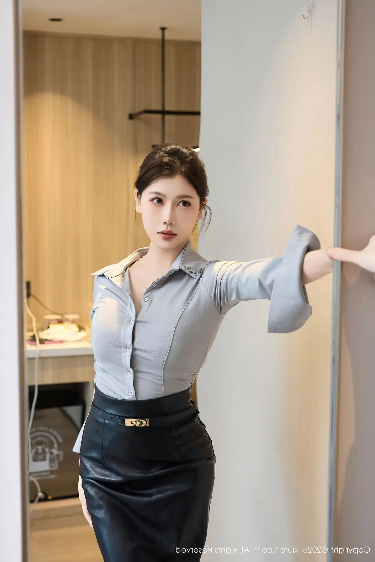 In the XiuRen No.10635 collection, model Yu Zi Jiang Fish captivates with her elegant and professional demeanor. She wears a tasteful grey collared shirt paired with a form-fitting black leather pencil skirt, highlighting her slender silhouette. Her legs are gracefully showcased through sheer black stockings and pointed high heels, creating a look that is both modern and alluring. A small black handbag serves as the perfect accent, completing a sophisticated office ensemble. Every step Yu Zi Jiang Fish takes down the pebbled hallway exudes confidence and professionalism, embodying the contemporary beauty of a modern woman.#YuZiJiangFish #XiuRen #OfficeFashion #LeatherSkirt #ElegantStyle