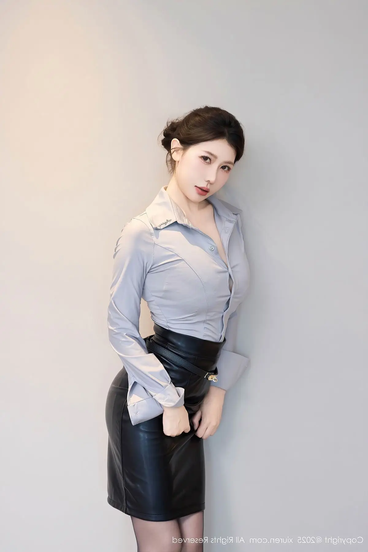 In the XiuRen No.10604 photo collection, model Yi Tian Tian shines with an elegant yet captivating beauty. She dons a sophisticated light blue shirt, expertly paired with a form-fitting black leather skirt, creating a distinctive and alluring office style. Every gesture and gaze from Yi Tian Tian exudes confidence and a professional demeanor, yet remains undeniably sensual. The modern backdrop with its unique textured wall further accentuates her charm. This collection not only highlights her figure but also vividly portrays Yi Tian Tian's irresistible appeal, delivering emotionally rich artistic moments.#YiTianTian #XiuRen #OfficeFashion #SeductiveStyle #LeatherSkirt