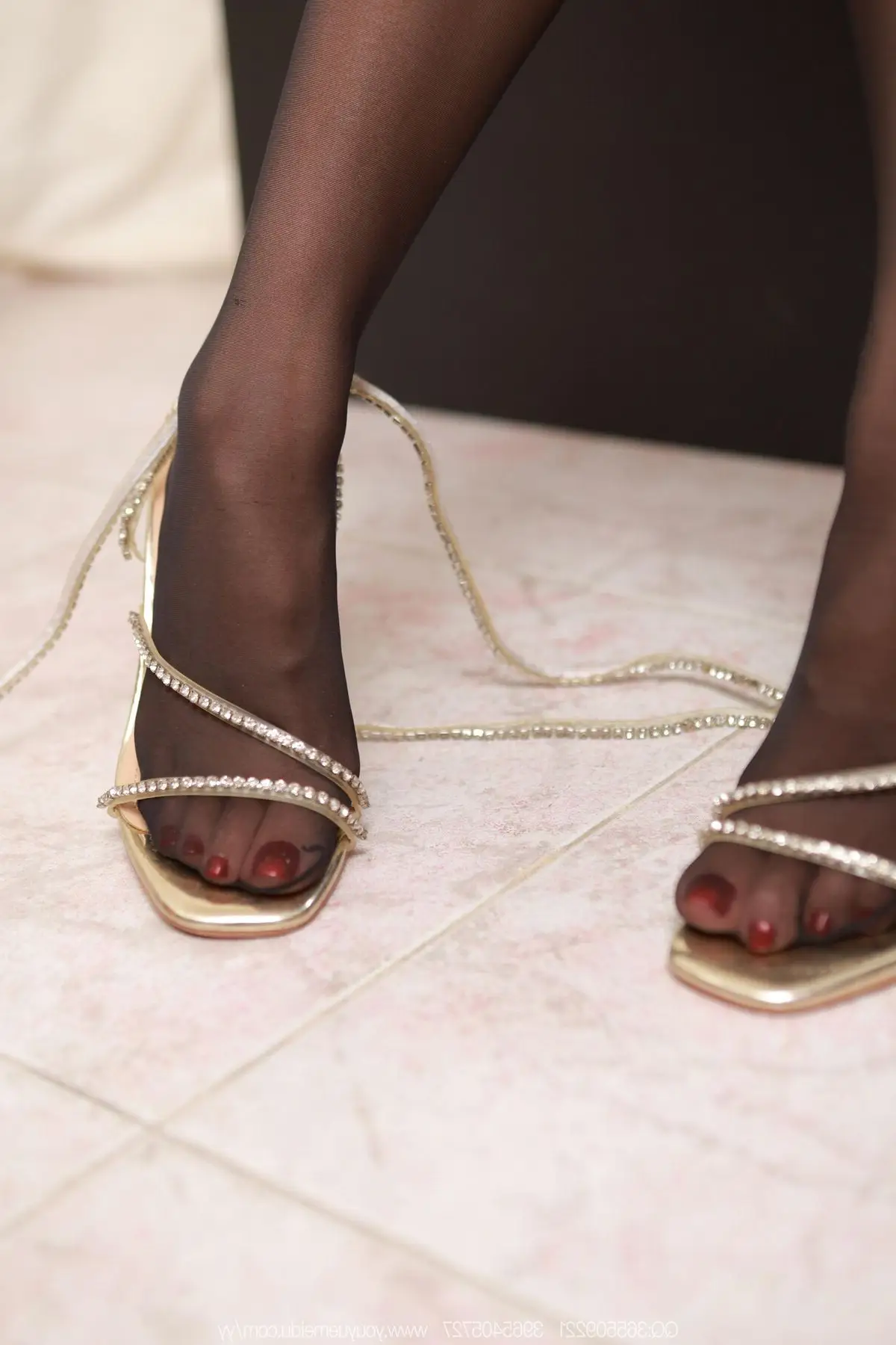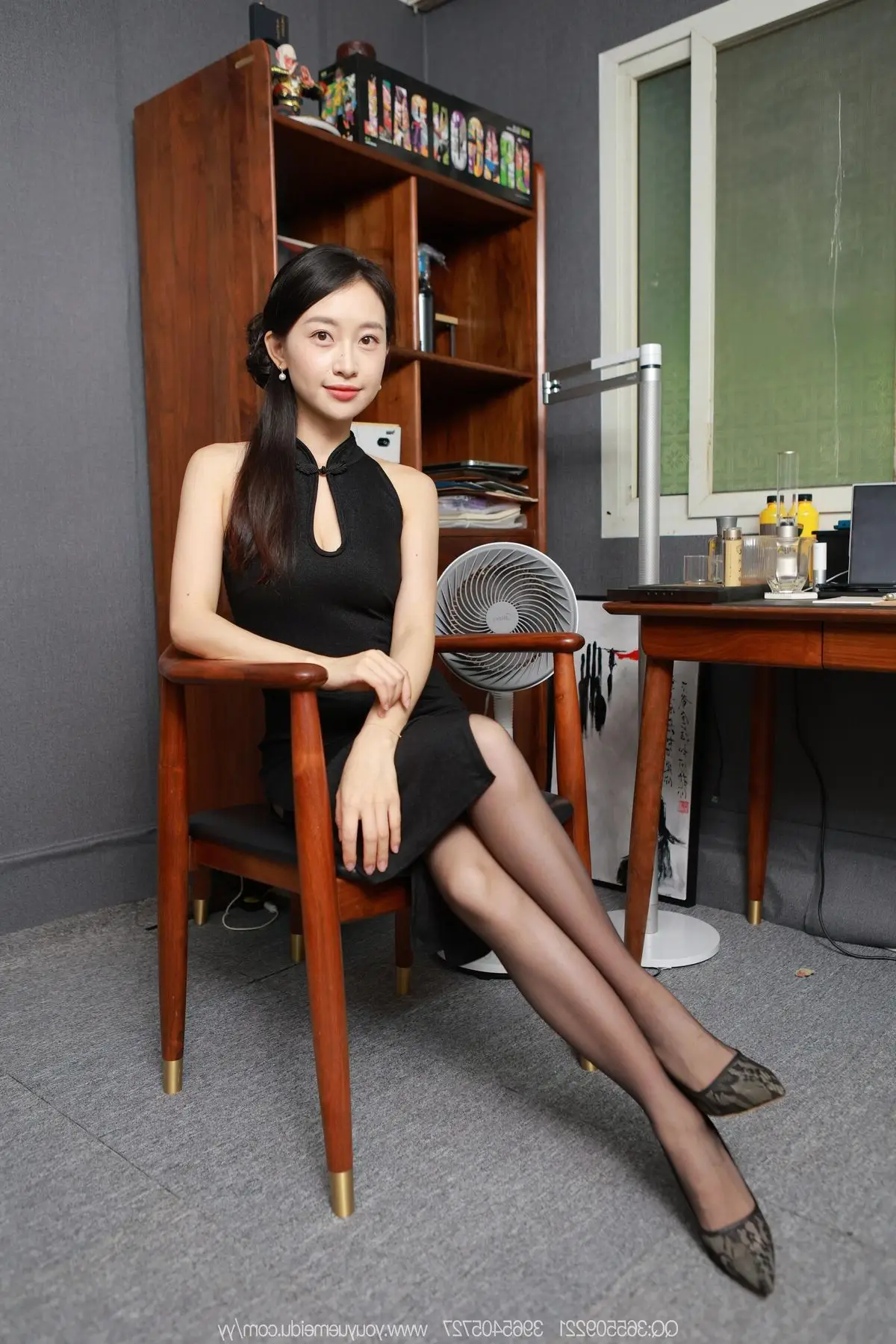 In the IESS SXJ No.2147 collection, model Xiao Jie emanates a captivating and elegant beauty. She gracefully sits on a wooden chair, subtly showcasing her long alluring legs in sheer black stockings and luxurious high heels. Her form-fitting black dress further accentuates her slender and refined physique. With a gentle smile and captivating gaze, Xiao Jie creates an alluring moment reflecting the confidence and professional demeanor of a Chinese model. This photo not only celebrates physical beauty but also portrays sophistication and elegance in every gesture transforming each frame into an emotional work of art. It stands as a testament to the irresistible charm of the IESS style.