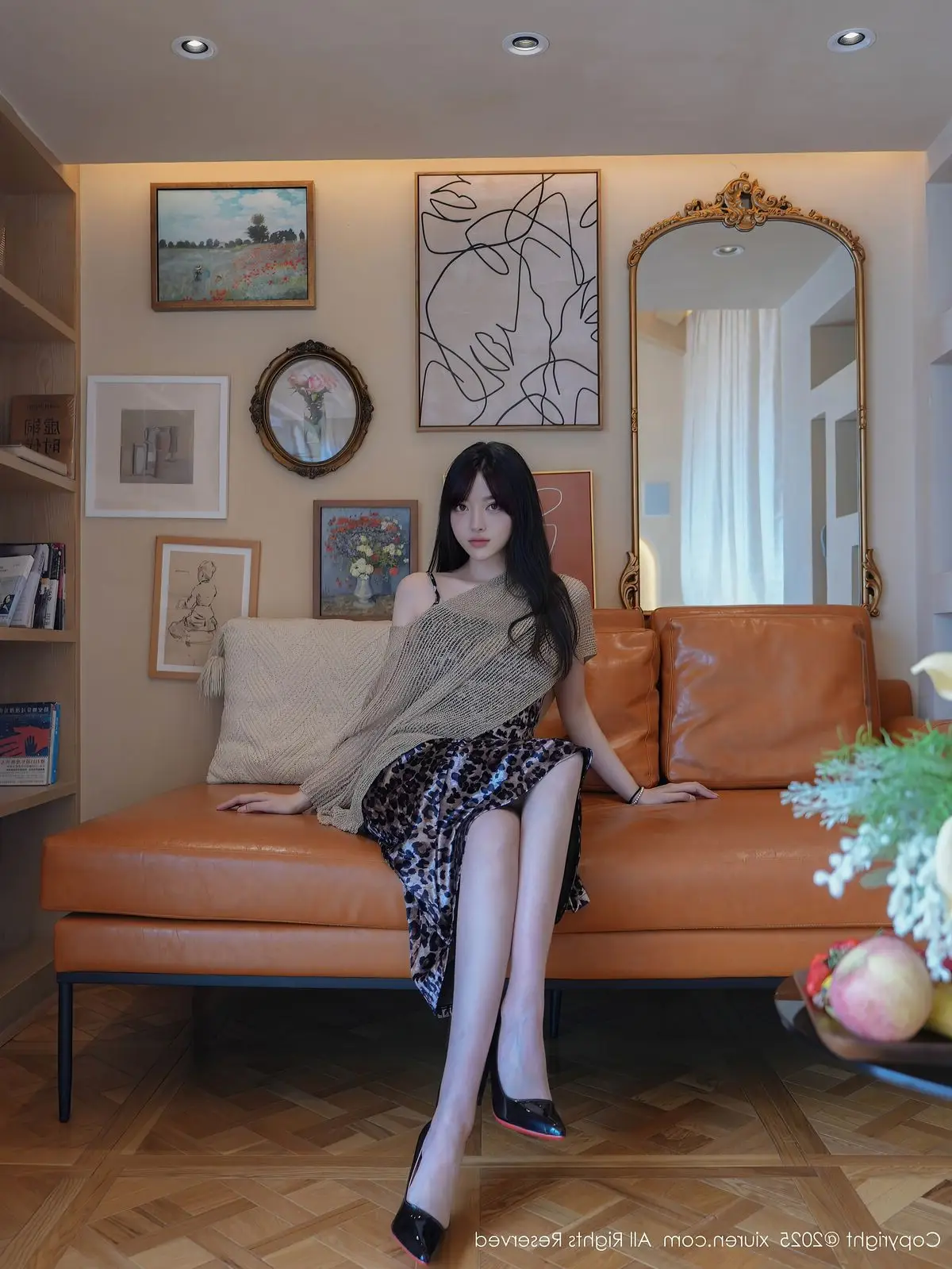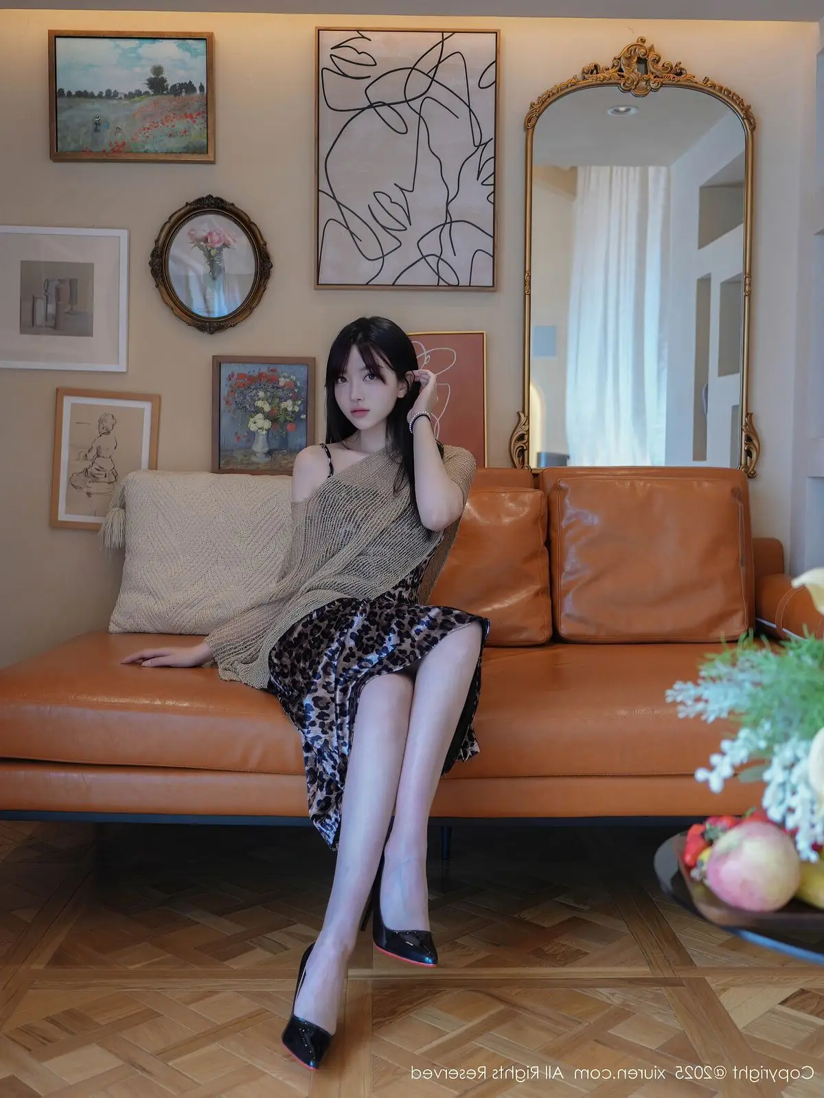Discover the elegant charm and style of Bai Lu Lulu in the exclusive XiuRen No.10698 photo collection. In this captivating image, she reclines gracefully on a warm brown leather sofa, exuding an aura of sophistication and tranquility. Soft natural light beautifully enhances her captivating presence and delicate silhouette. Adorned in tasteful attire and set within an artfully decorated interior, Bai Lu Lulu not only showcases her beauty but also conveys a narrative of serene elegance and refined aesthetics. This is undoubtedly a moment worth admiring, reflecting the professionalism and irresistible allure of a top model.