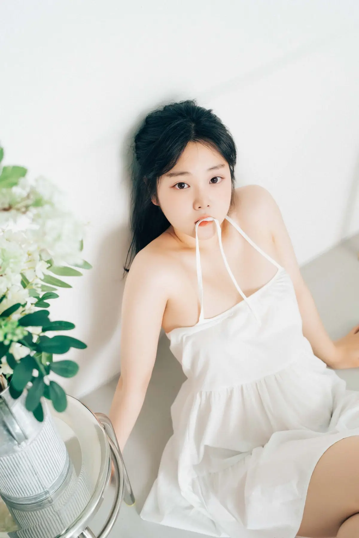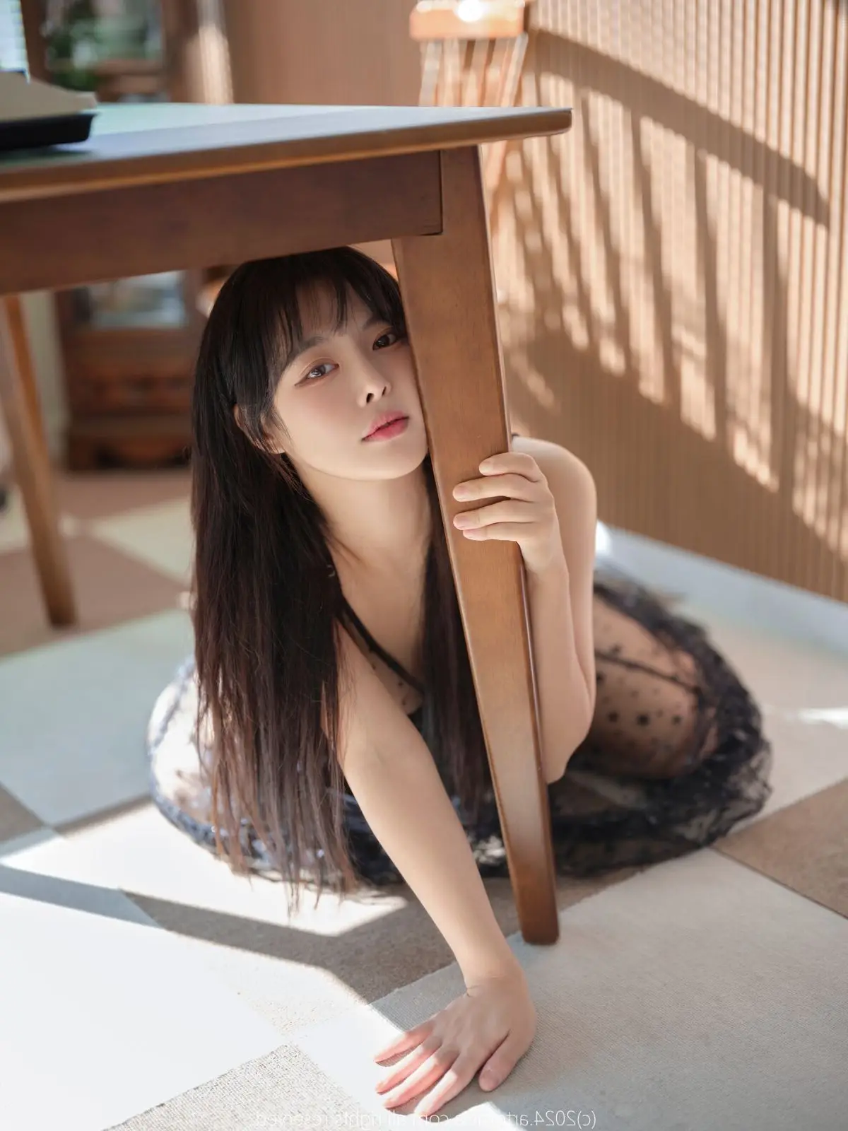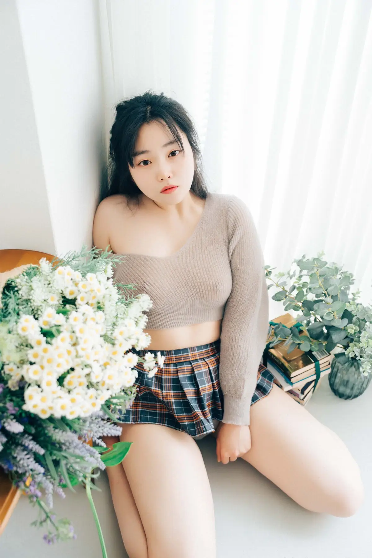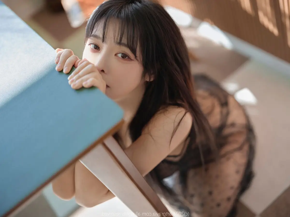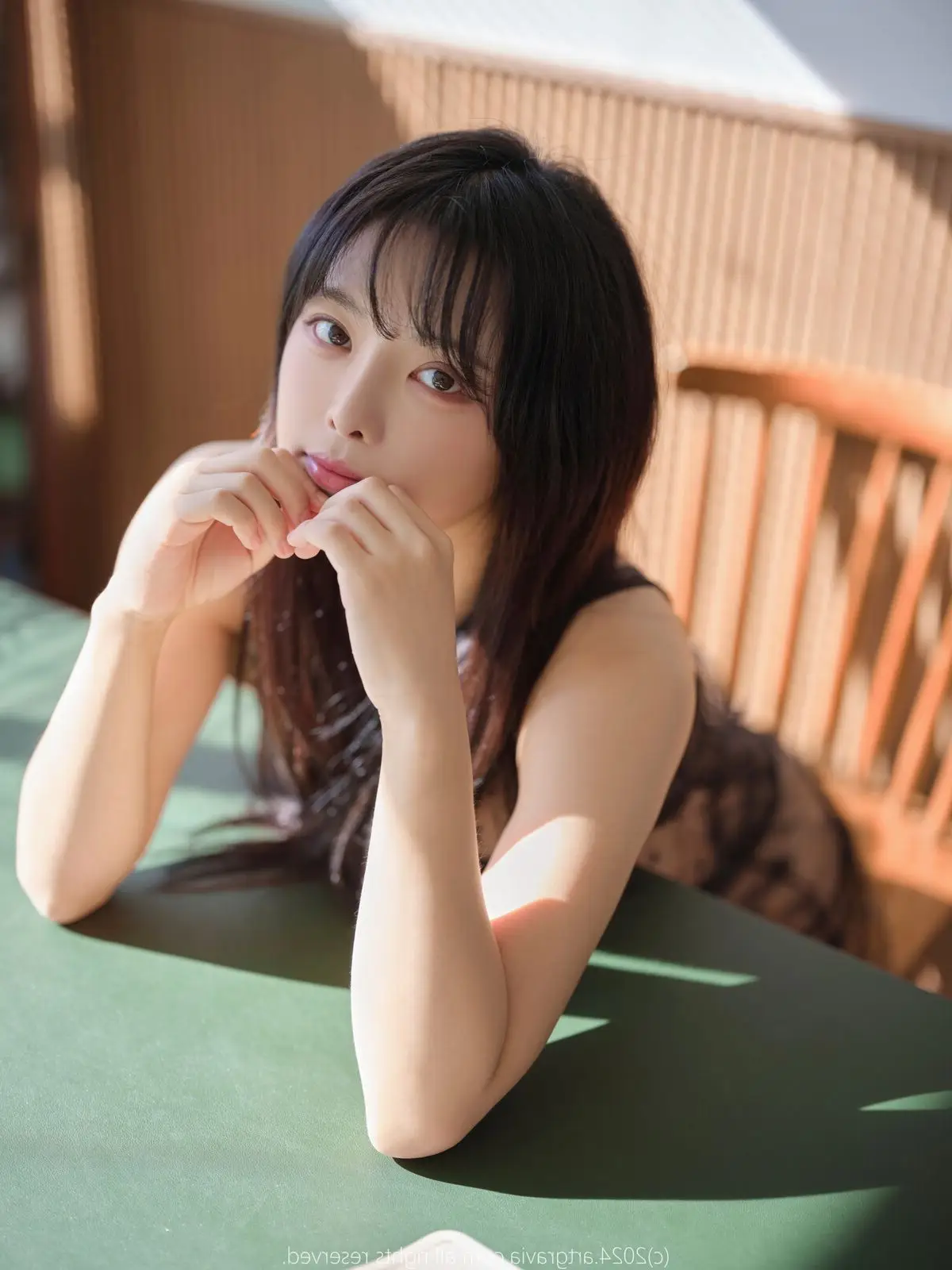 In this exquisite AG Vol.611 Areumm 다움 Part01 collection model Areumm showcases her pure and graceful East Asian beauty. Her lustrous dark hair and deep captivating eyes effortlessly draw every gaze. Soft natural light streaming through the window creates a warm and romantic ambiance highlighting her smooth skin and delicate facial features. Each moment captured in this series radiates Areumm's inherent sweetness and natural allure. This photo collection perfectly blends traditional charm with a contemporary style offering an emotionally rich and unforgettable visual experience. Immerse yourself in these stunning images to fully appreciate Areumm's irresistible charm.