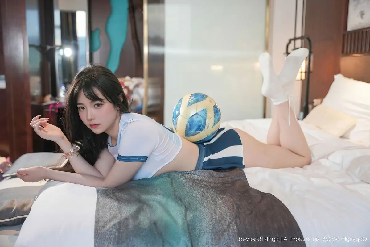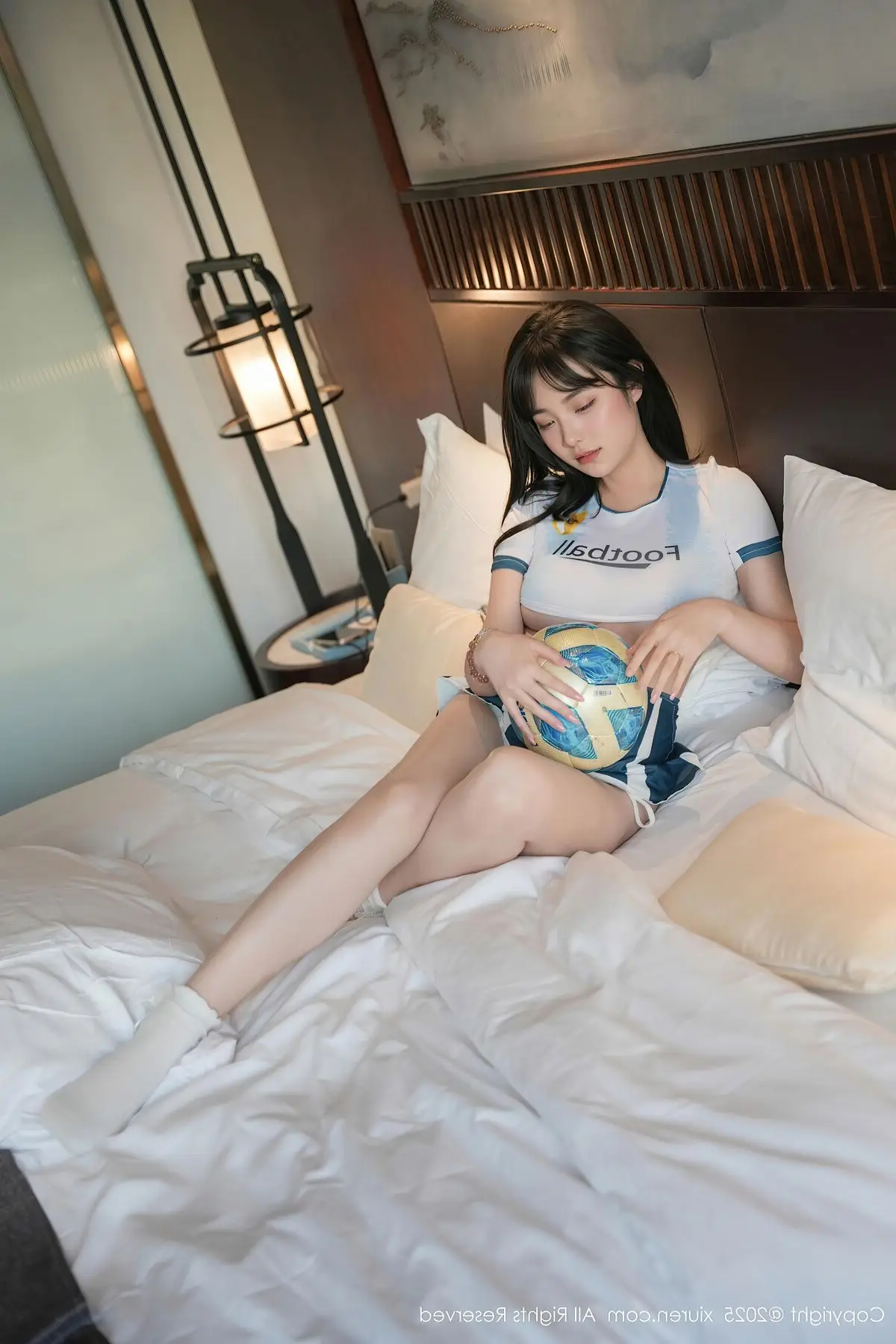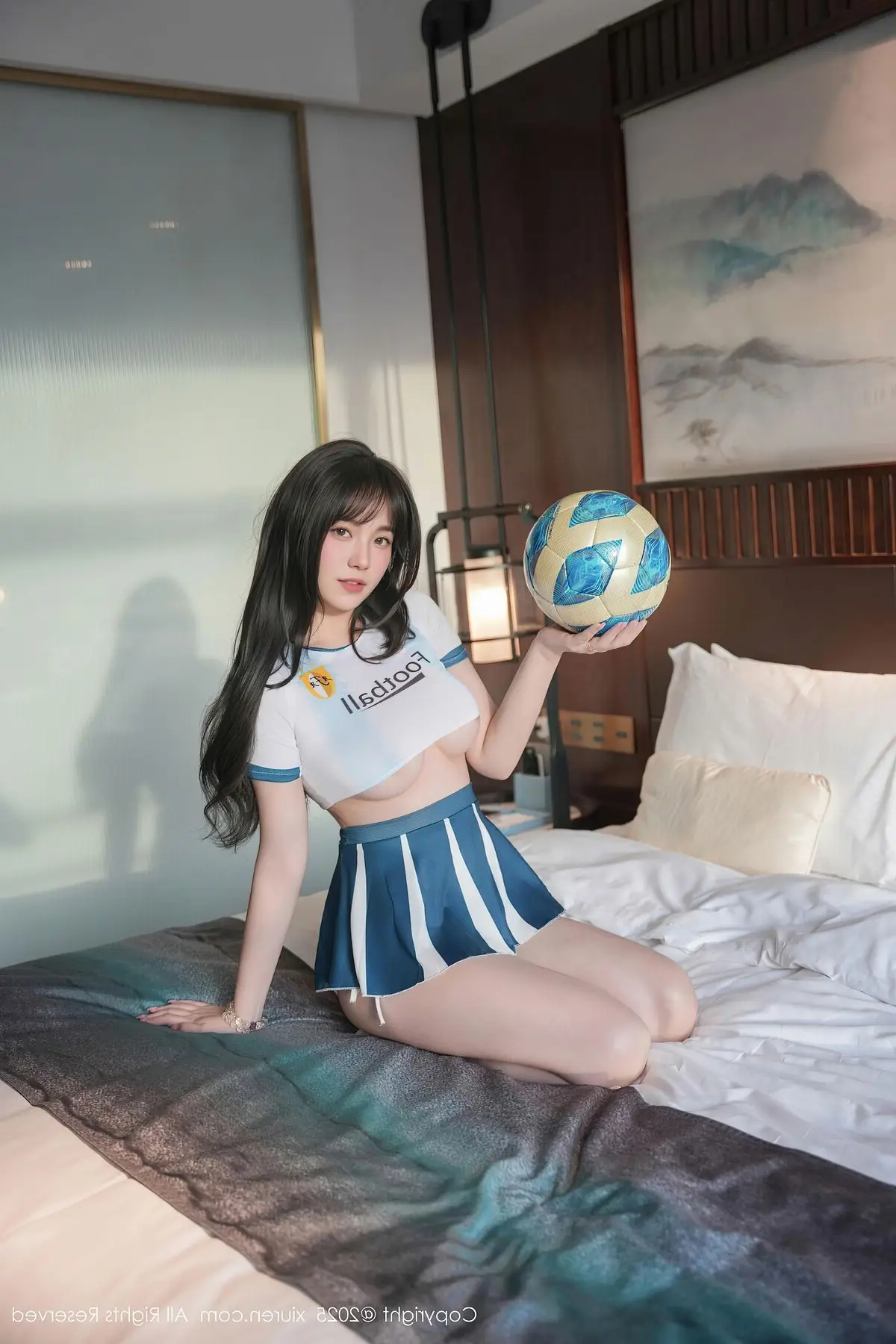 Ruan Qing from the XiuRen No.10606 collection presents a vibrant and energetic image. She appears in a sporty football uniform, featuring a stylish white cropped top and a dynamic blue pleated skirt, holding a soccer ball. Ruan Qing's bright smile and captivating gaze highlight her healthy beauty, while exuding a subtle allure. From her confident demeanor to her graceful posture, Ruan Qing displays an irresistible charm, transforming this moment into an unforgettable highlight. This photo set promises to immerse viewers in the colorful world of a unique and stylish athlete.#RuanQing #XiuRen #Model #FootballGirl #SportyChic #DynamicBeauty
