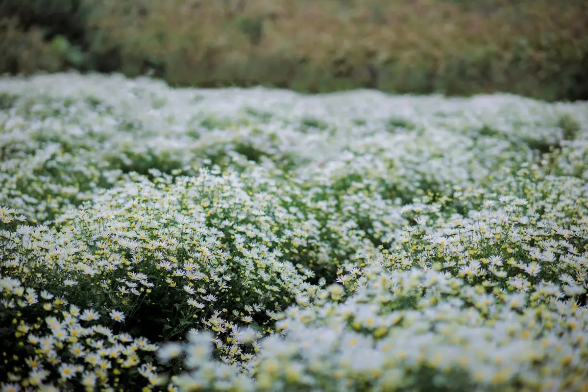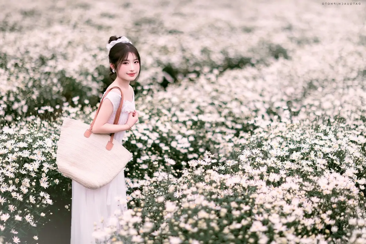 Moc Chau's Pure White Daisy Fields: A Muse Amidst a Floral Wonderland, Perfect for Stunning Photoshoots.