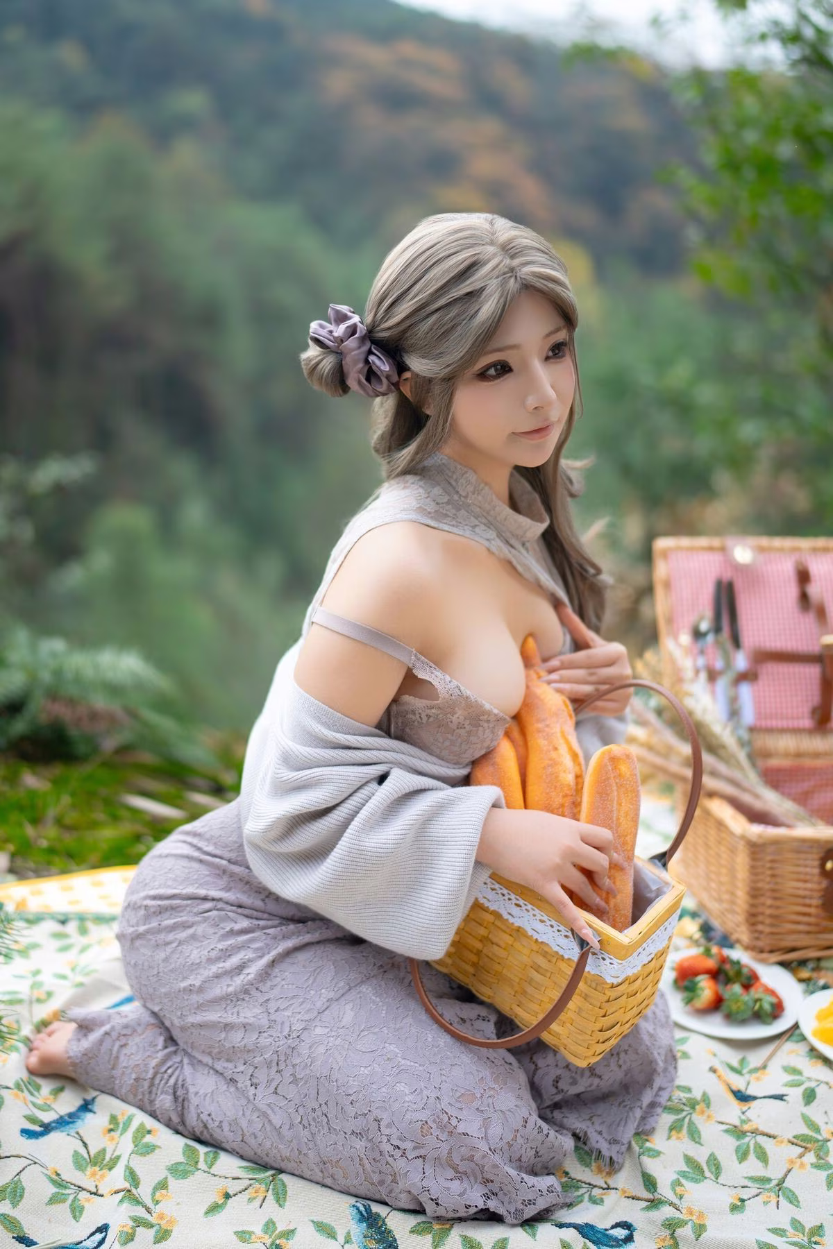 Coser Yuuhui shines brightly during her spring outing, exuding a gentle and captivating beauty. Amidst the lush green natural setting, she appears in elegant, refined attire that accentuates her graceful figure. Warm sunlight filters through the tree canopy, creating a perfectly romantic backdrop for a relaxing picnic. Yuuhui sits on the green grass, her eyes clear and a soft smile, embodying peace and fully savoring the moment. This "Spring Outing Plan Part01" photo series not only captures the coser's charm but also conveys a sense of ethereal tranquility, inviting viewers into a poetic adventure amidst nature.