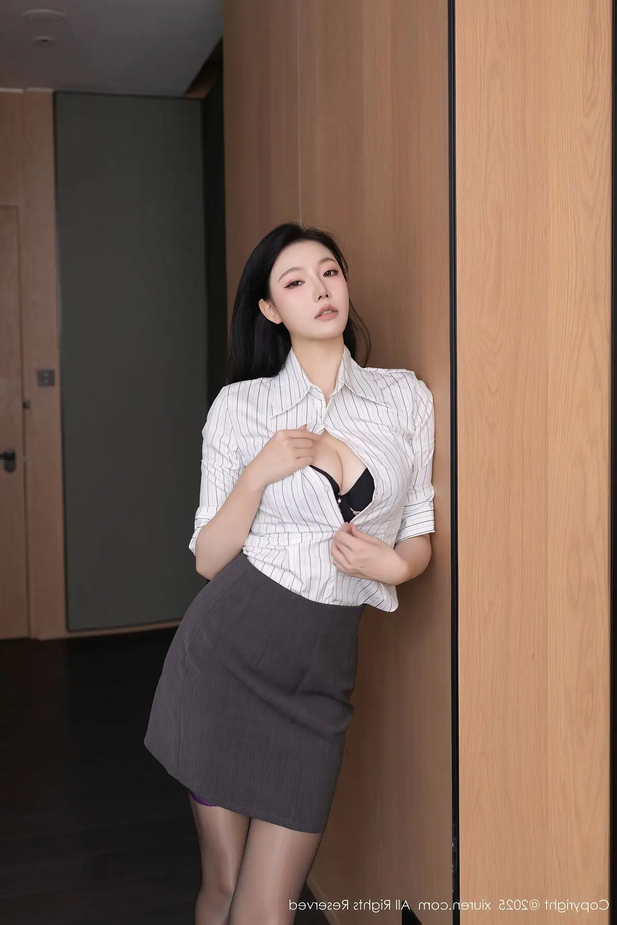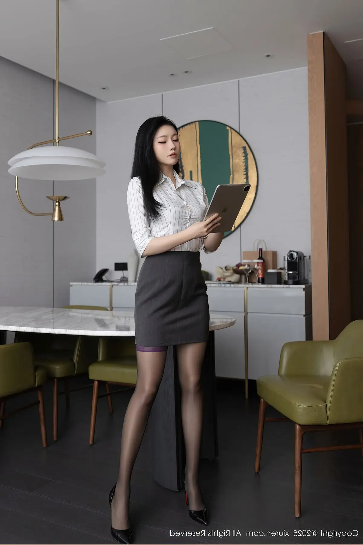 The XiuRen No.10623 photo collection features An Ran, a captivating embodiment of modern charm and elegance. An Ran exudes confidence in her stylish OL office attire, perfectly blending a crisp white shirt with a sleek grey pencil skirt. Unique accents like alluring purple stockings and vibrant red high heels create a look that is both professional and distinctly individual. With her long flowing dark hair and magnetic gaze, An Ran showcases not only her striking beauty but also a powerful independent aura. This image beautifully combines sophisticated office fashion with a subtle yet undeniable sensuality, guaranteed to captivate every viewer.#AnRan #XiuRen #OLFashion #SeductiveLook #OfficeStyle #OfficeLady #OL
