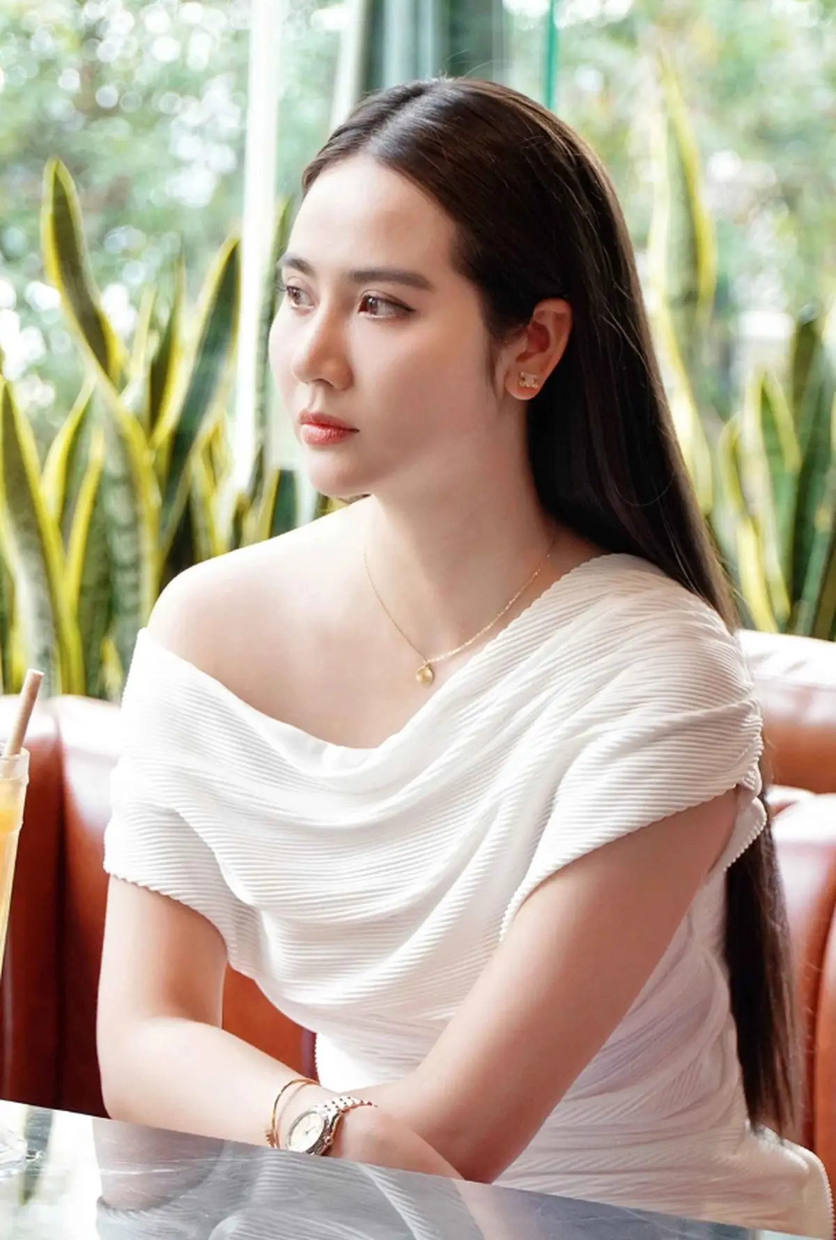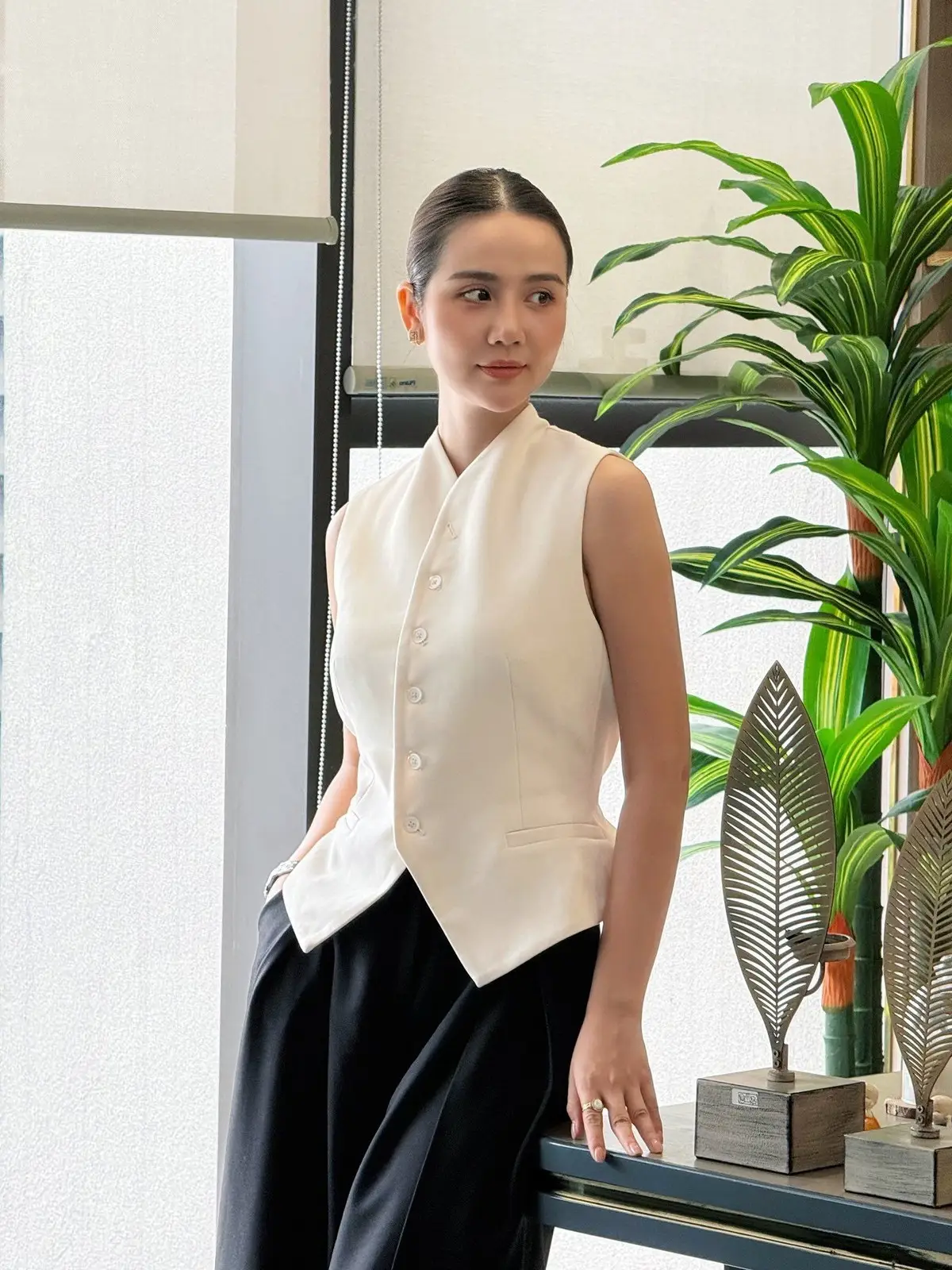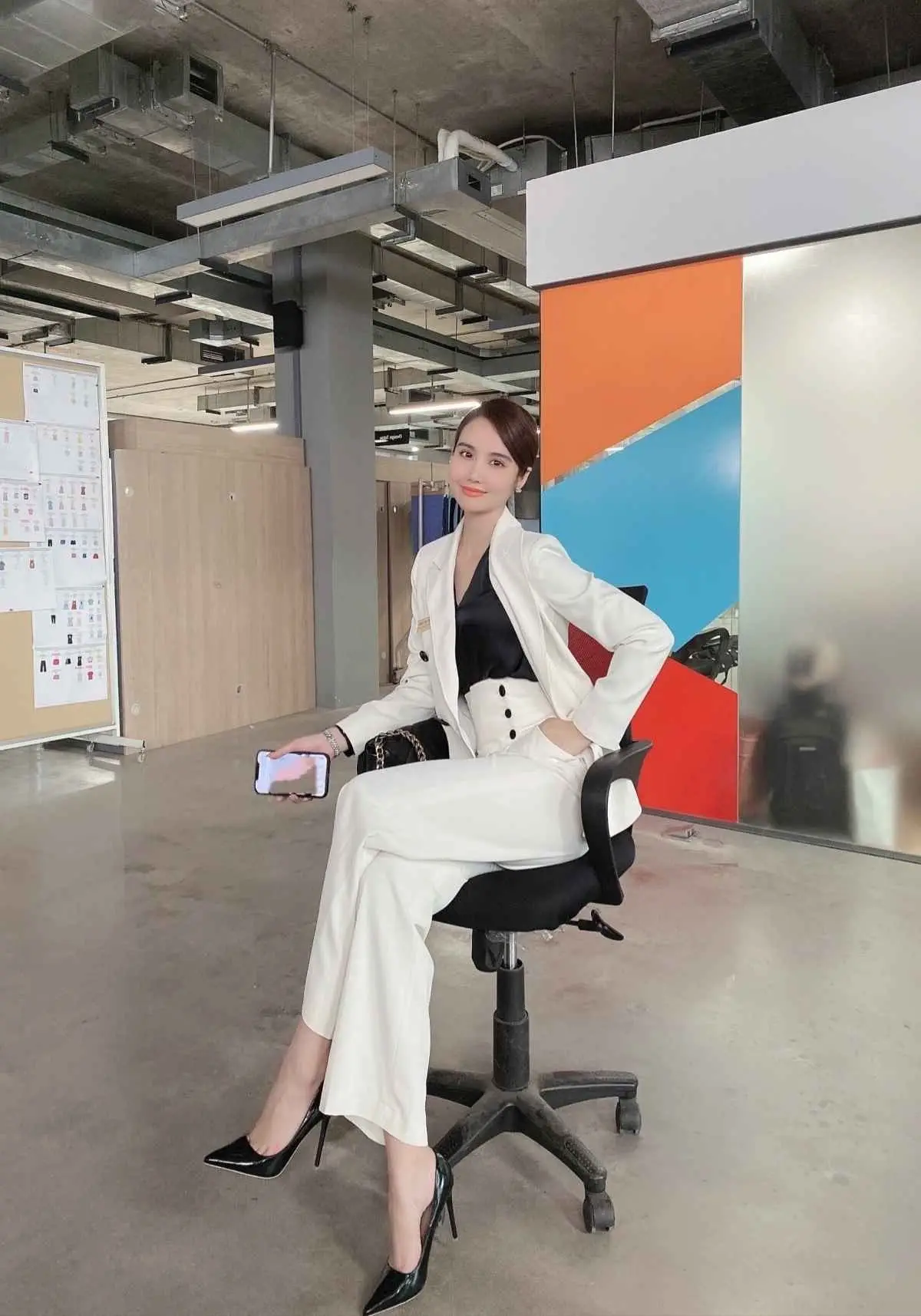 Actress Huyen Lizzie once again showcases her impeccable and sophisticated office style. In this captivating image, she exudes charm in an elegant white pantsuit, perfectly paired with a sleek black top, creating a striking contrast. The wide-leg trousers and tailored blazer not only flatter her figure beautifully but also project an aura of professionalism and modern chic. Huyen Lizzie's confident and luxurious presence serves as a fantastic source of inspiration for women seeking tips on how to dress impeccably for the workplace. This ensemble offers a perfect blueprint for achieving an elegant yet fashionable look that empowers every woman to shine daily at the office.#HuyenLizzieFashion #OfficeStyle #WorkwearChic #ElegantFashion #PowerDressing