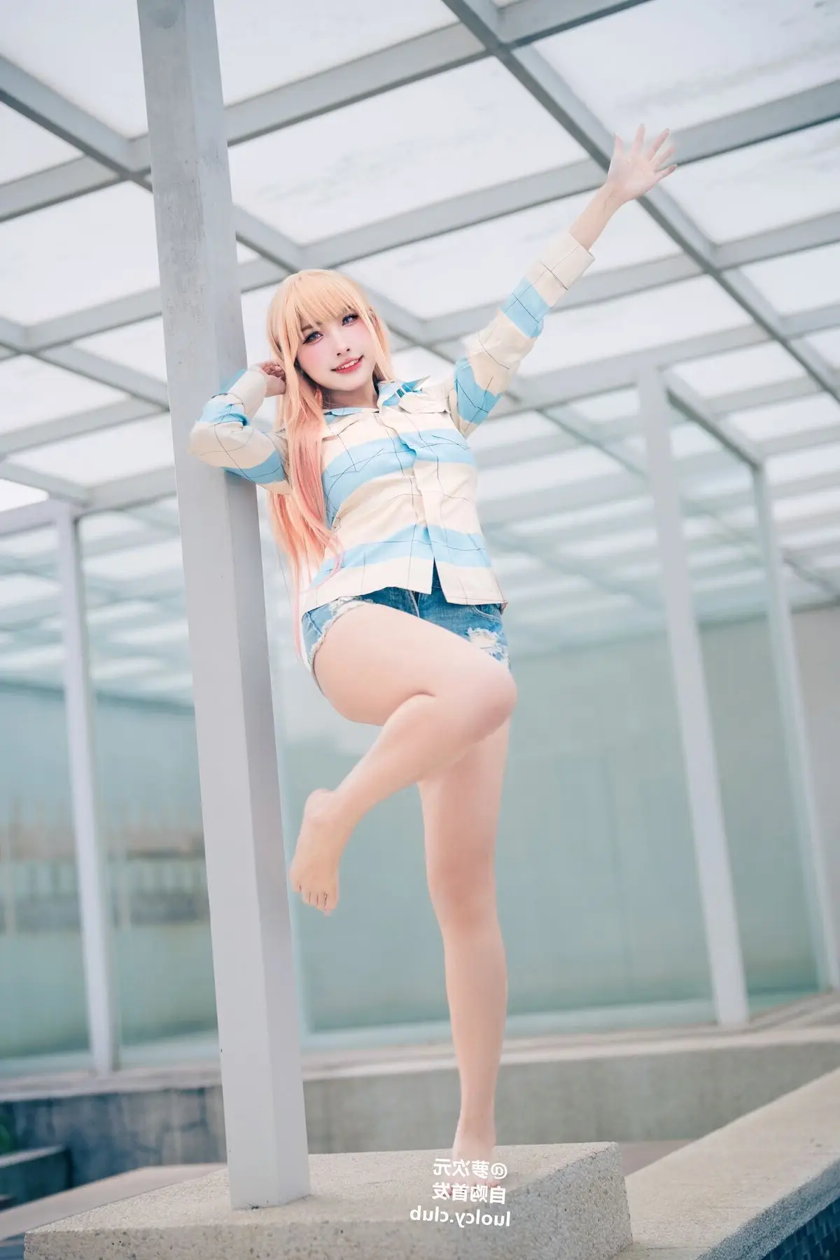 Coser Mumu Momo beautifully embodies Marin Kitagawa in her swimsuit version She poses vibrantly in a youthful and energetic outfit featuring a striped blue and white shirt worn over a swimsuit paired with denim shorts highlighting her slender legs The poolside setting bathed in natural light accentuates Marin's pure beauty and radiant smile Every detail from her golden blonde hair to her sparkling eyes is brought to life by Mumu Momo conveying the joyful and refreshing vibe of a summer day The cosplayer's confident and graceful demeanor truly infuses spirit into Marin Kitagawa captivating viewers with delight and admiration#Coser #Mumu #Momo #MarinKitagawa #Cosplay #Swimsuit #MyDressUpDarling