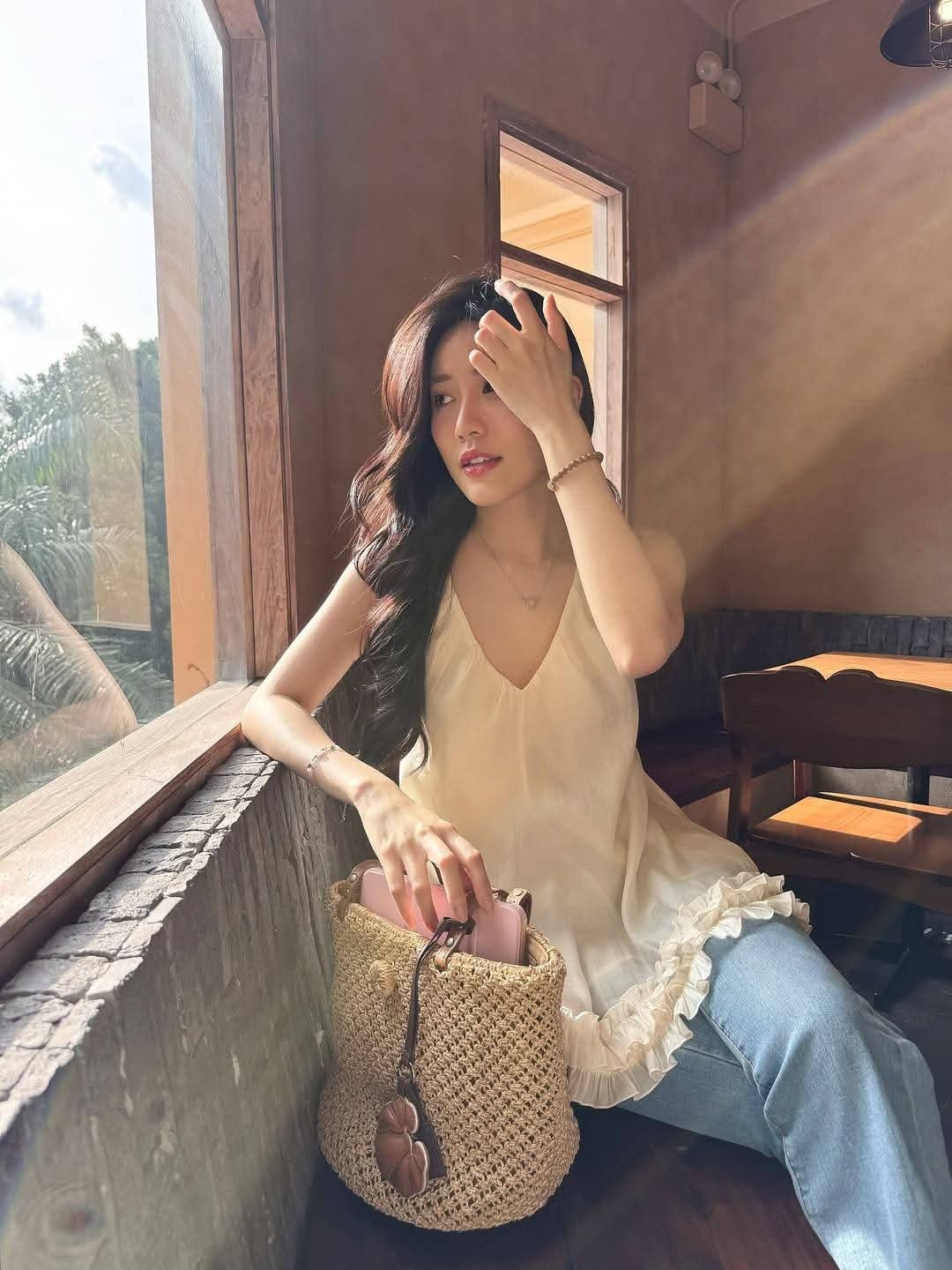The image 1000019515.jpg depicts a portrait of a young girl with innocent and gentle beauty. She wears a pristine white outfit, blending into the lush green natural scenery. Her long flowing hair is adorned with tiny white flowers, creating a poetic and pure look. The girl's eyes exude innocence, her direct gaze into the camera is captivating. Prominently in her hands is a large bouquet of white flowers, symbolizing purity and elegance. Soft golden sunlight filters through the leaves, highlighting her delicate features and fair skin. This image represents natural beauty, unpretentious yet incredibly charming, evoking a sense of peace and romance.Discover Ethereal Grace: An Asian Beauty in Pure White Amidst Delicate White Blossoms