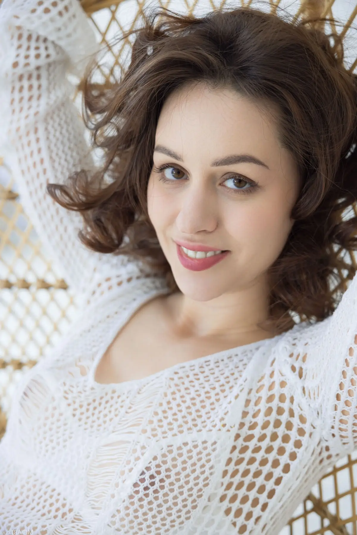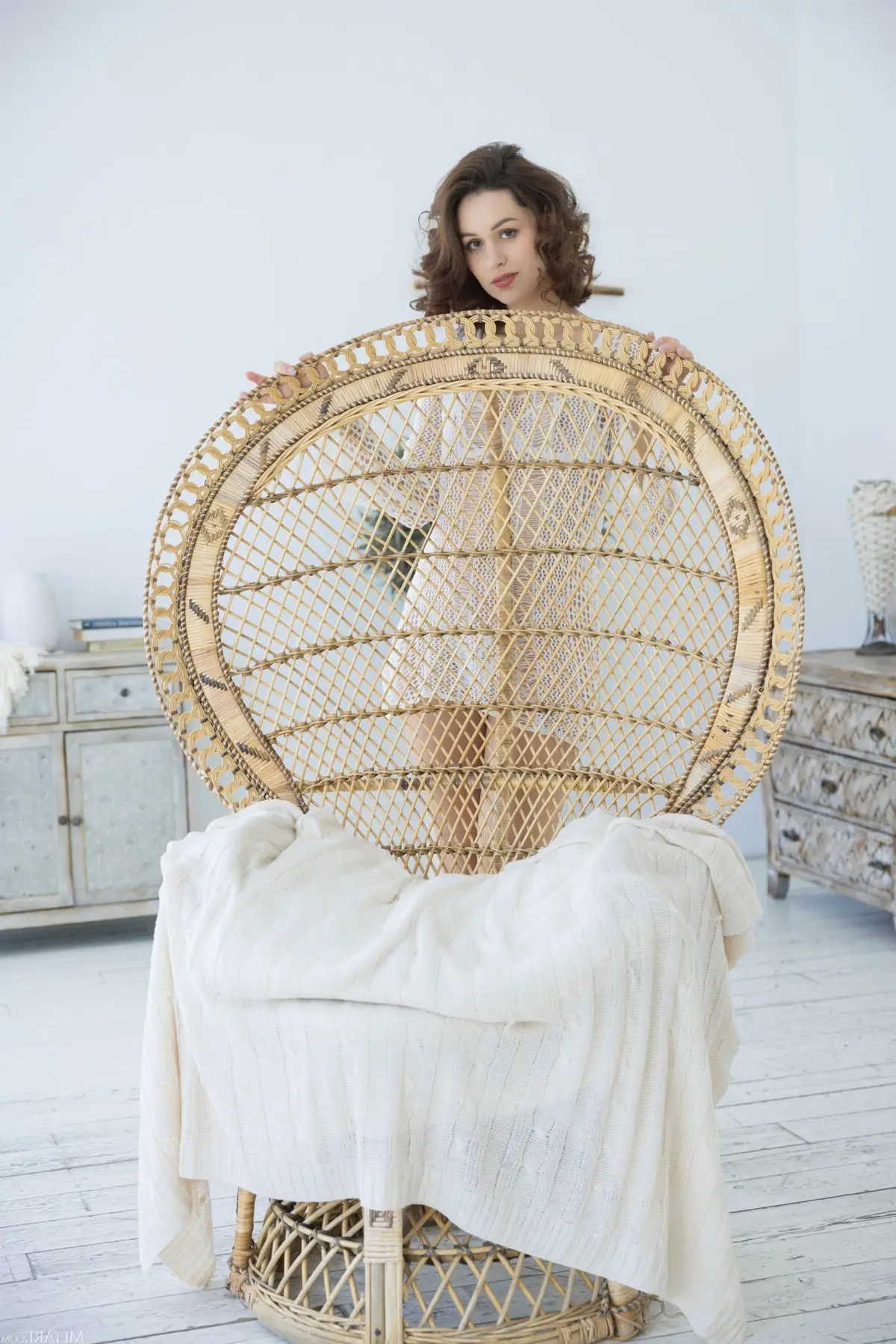 Marie Berger shines in this MetArt White Textiles Part01 series. The young woman, with her wavy hair and captivating gaze, is seated elegantly on a wicker chair, draped in a sheer white knitted top. The interplay of pristine white fabrics and gentle natural light creates a romantic atmosphere, artistically celebrating her form with exquisite taste and subtlety. Each frame exudes grace and subtle sensuality, inviting viewers to delve into the emotional depth of the portrayal. This collection perfectly showcases MetArt's unique photographic style, blending purity with irresistible charm and timeless beauty.#MarieBerger #WhiteTextiles #MetArt #EtherealBeauty #SensualPortrait