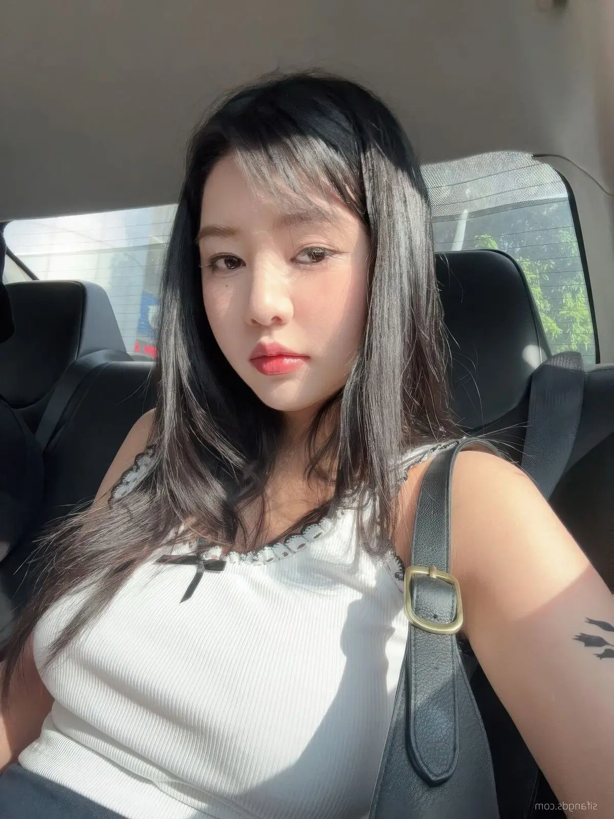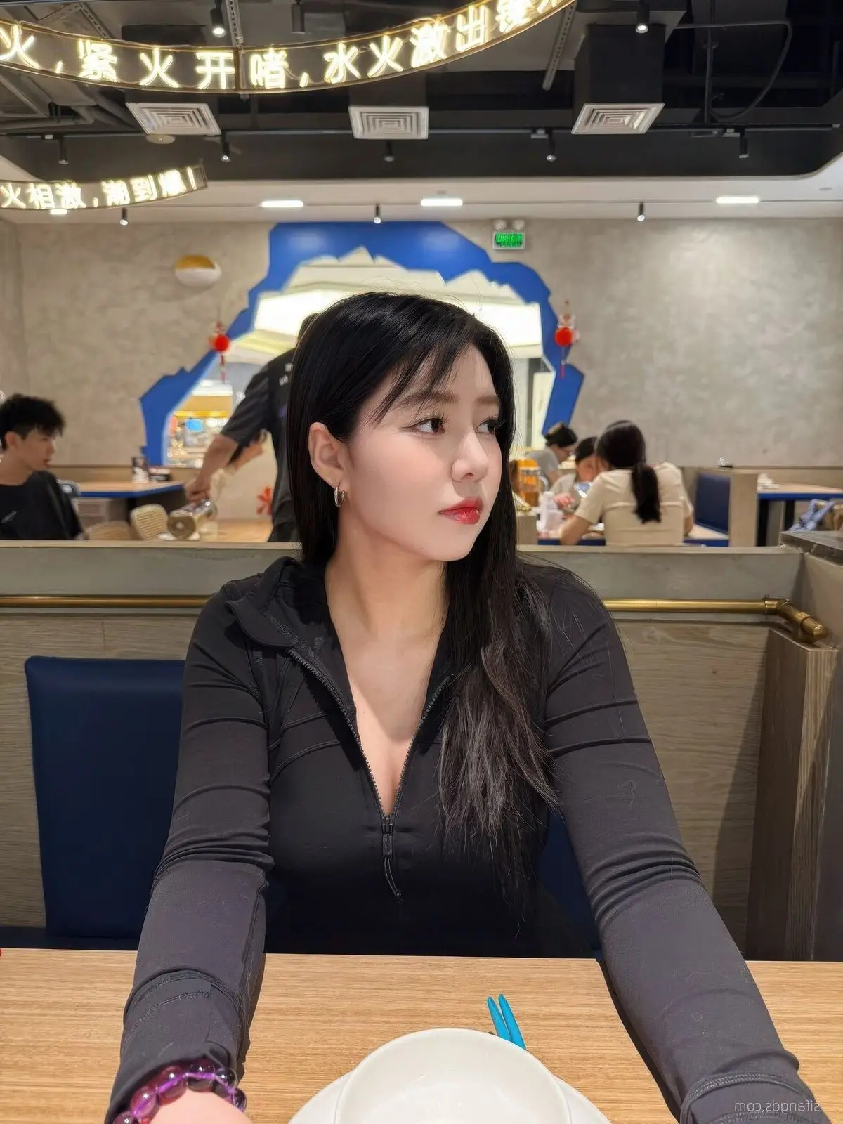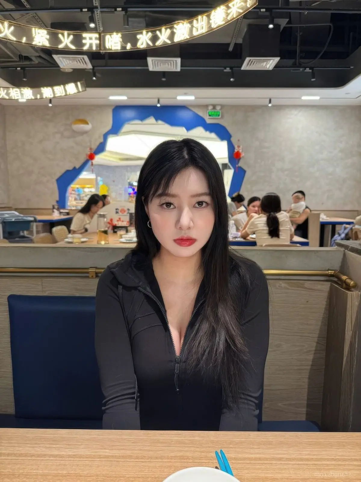 In this image Sha Le Mei Xiao Cang Lao Shi 莎乐美 captivates with her striking beauty She features long lustrous dark hair and an air of confidence and allure Her simple black top elegantly highlights her slender figure and sophisticated aura The direct gaze creates a powerful connection with the viewer conveying a sense of self-assurance and distinct personality The cozy restaurant setting with soft lighting further enhances Sha Le Mei's natural and elegant charm This photograph is part of the Part05 series offering an intimate glimpse into the style and charisma of a rising internet celebrity The image not only captures a moment but also portrays a modern vibrant and alluring young woman#ShaLeMeiXiaoCangLaoShi #AsianBeauty #FashionStyle #InfluencerVibes #PortraitPhotography