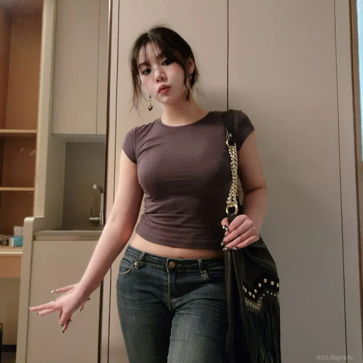 Discover the gentle charm of an Asian beauty in elegant attire, exuding grace and allure 1000025175
