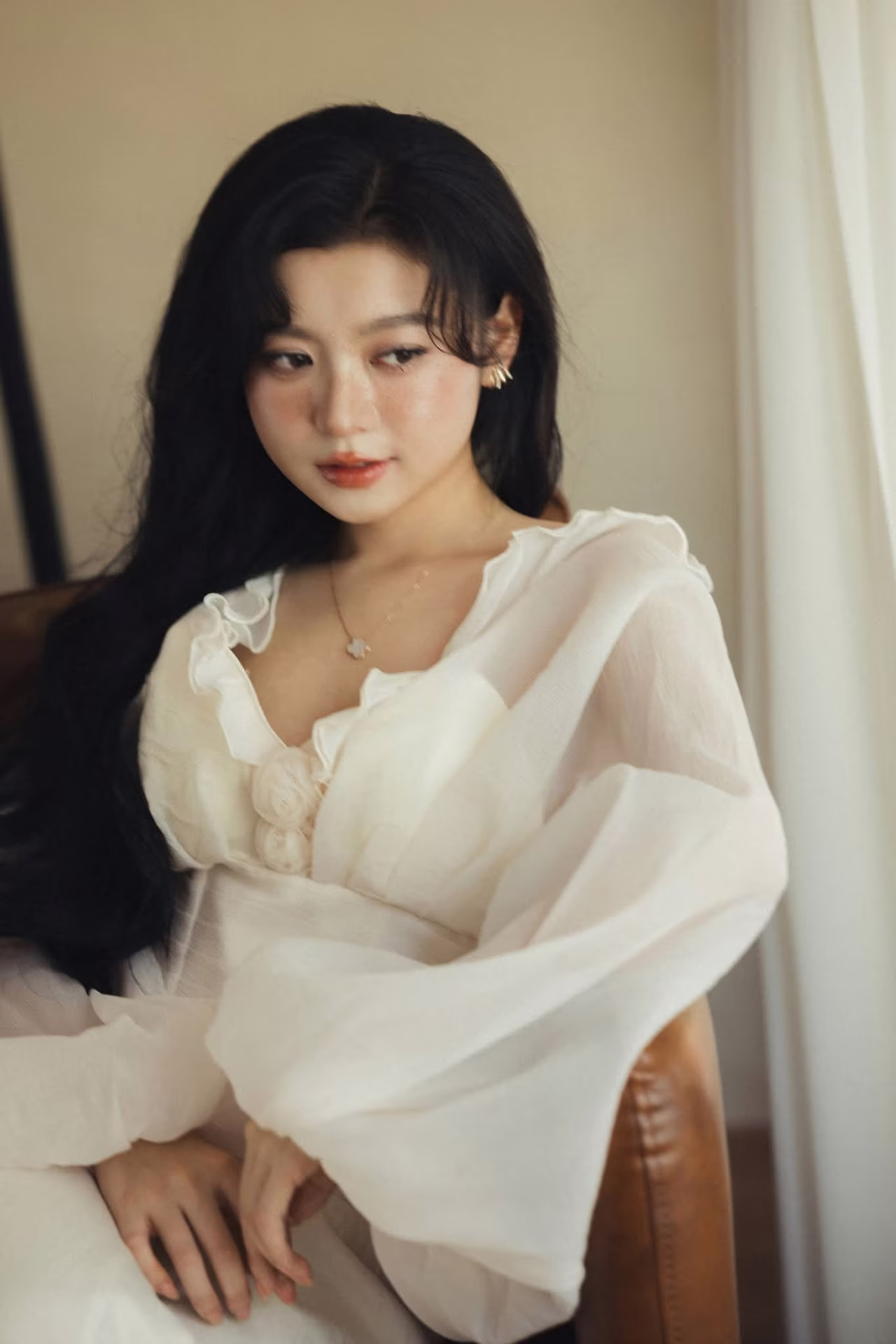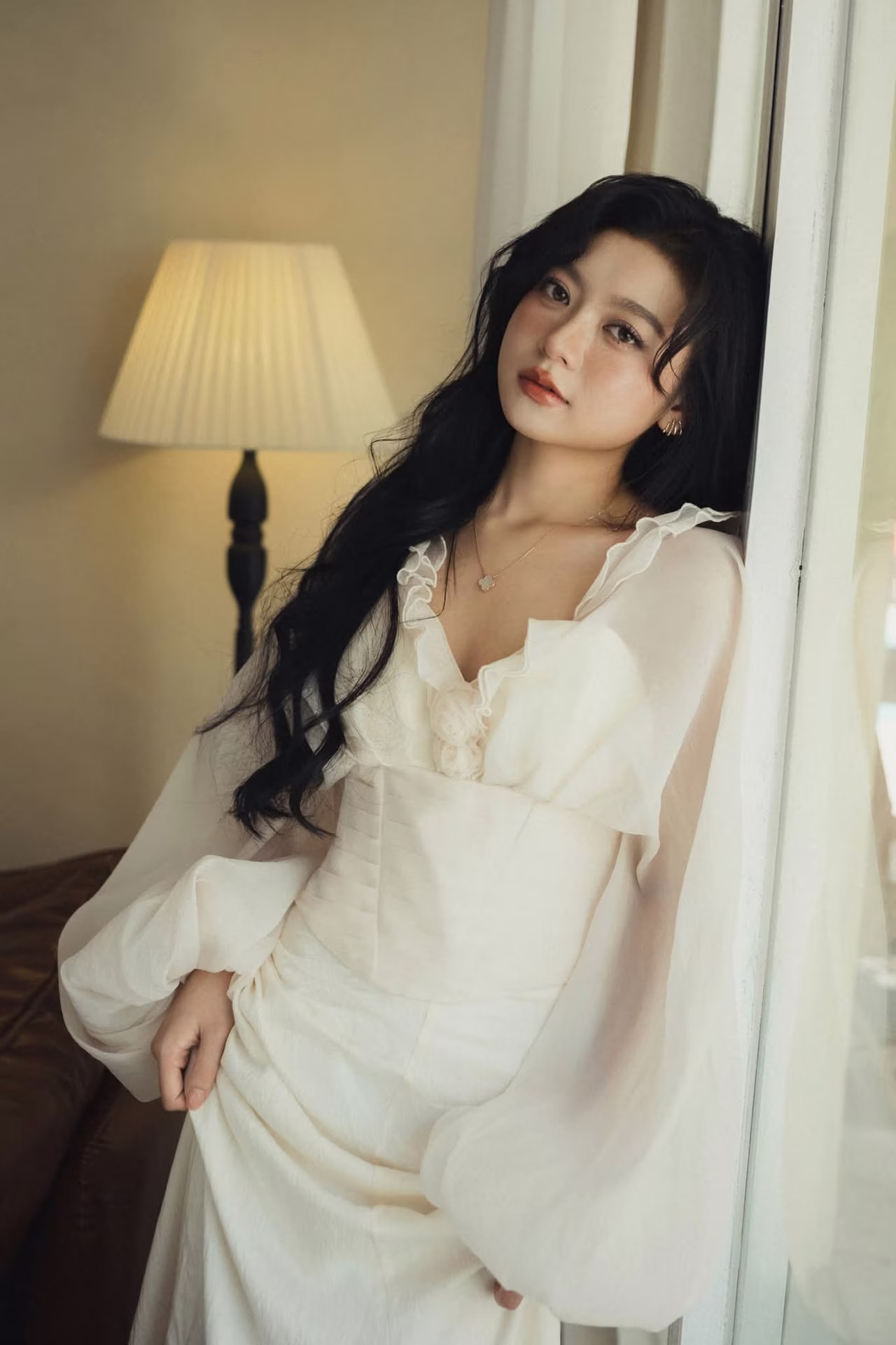 The VGU No.33 image captures a heartwarming pure and gentle beauty. The main subject is a girl with voluminous hair and a bright innocent smile. Dressed in a pristine white gown and adorned with soft white angel wings she embodies an earthly angel. Her eyes radiate warmth and friendliness inviting viewers to admire her natural grace. This is more than just a portrait; it is a tribute to feminine innocent beauty offering a sense of peace and lightness to anyone who gazes upon it. The image of this angel girl is sure to leave a lasting impression. #Vietnamese #pretty #charmVietnamese Beauty: Alluring Traditional Charm Through Her Modern Gaze 1000021045
