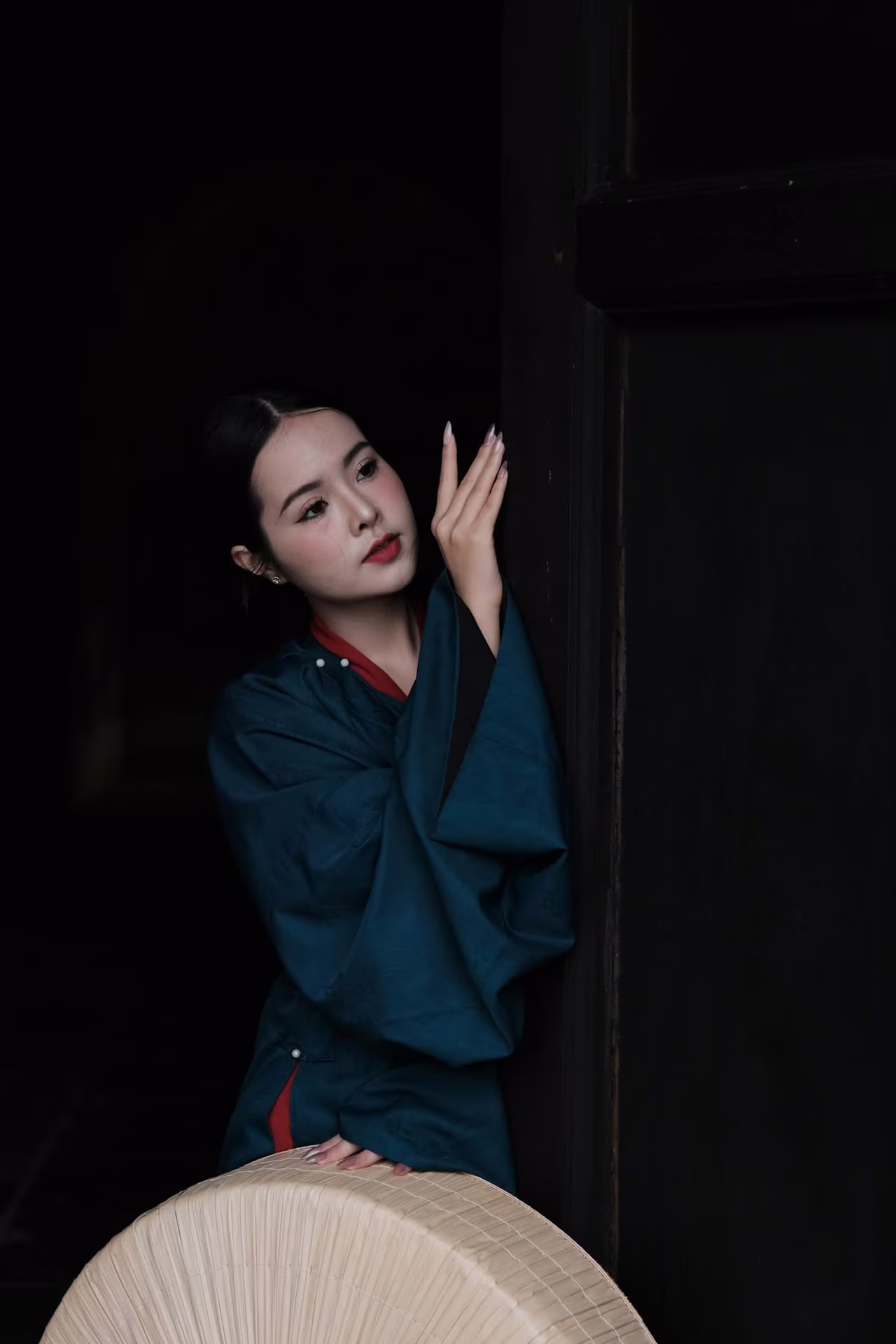 This image VGU No.4 captures a young woman exuding captivating Asian beauty. Her direct gaze into the camera reveals an aura of confidence and irresistible charm. Her dark hair and elegant attire further enhance her graceful presence. Behind her shelves of antique ceramics create an artistic and nostalgic atmosphere. The warm expertly utilized lighting beautifully accentuates her facial features and adds depth to this compelling portrait. The harmonious blend of the womans contemporary allure and the classic elegance of the pottery results in an emotionally rich composition inviting viewers to explore the story behind her every look. This is more than just a photograph it is an artistic moment where past and present converge. #Vietnamese #pretty #charm