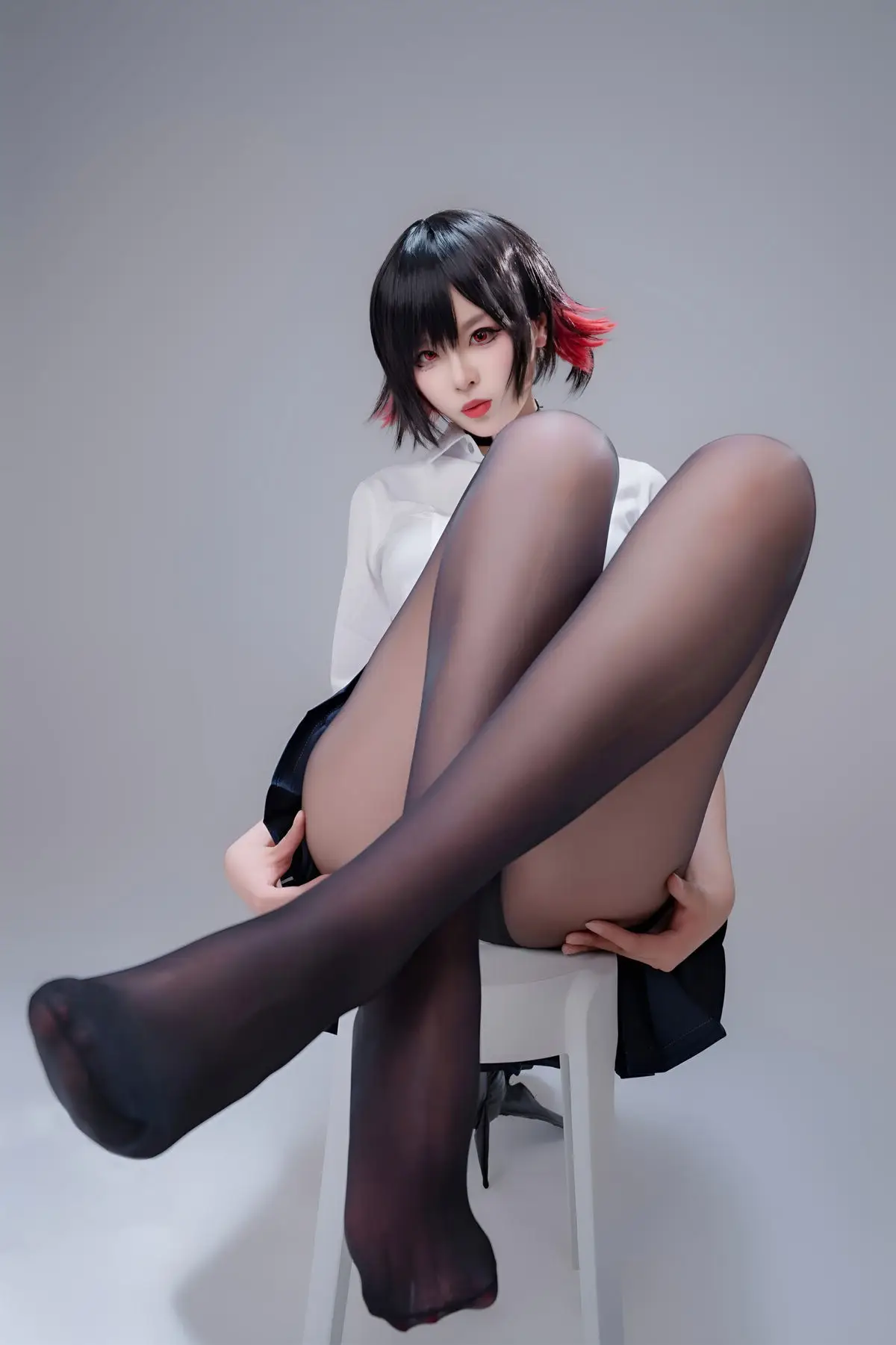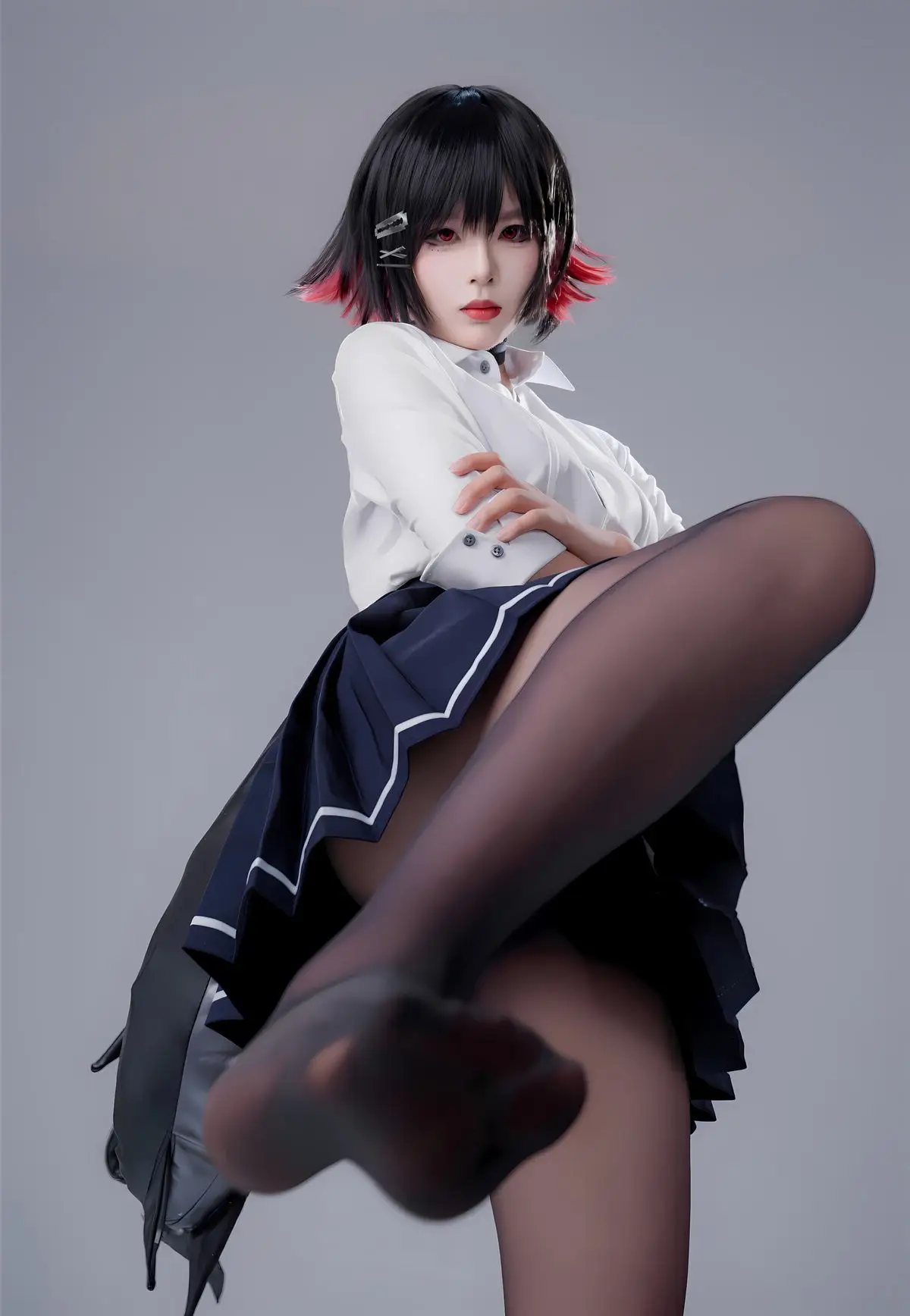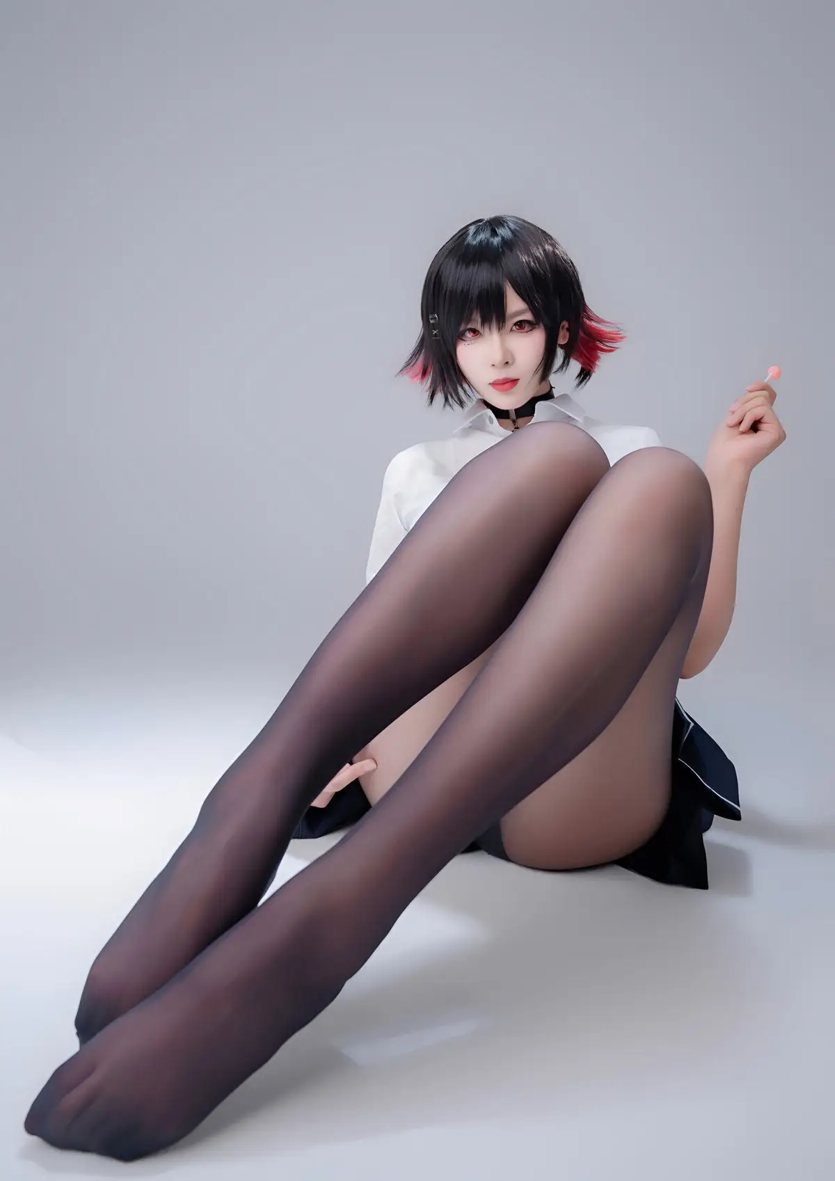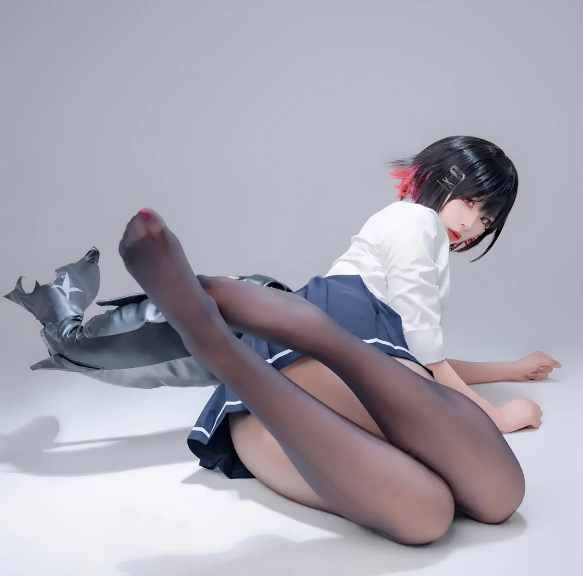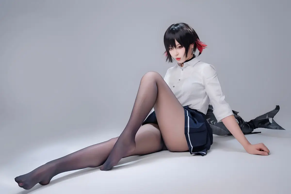 Immerse yourself in the captivating world of cosplay with Coser Xuan Xiao Xue Jie in the Shark Girl JK Part02 photo set. In this striking image, Xuan Xiao Xue Jie embodies a compelling JK schoolgirl persona, blending the innocent charm of a school uniform with the formidable power emanating from the sharp weapon she wields. Her short, dark, stylish hair, piercing gaze, and elegantly styled uniform paired with black tights create an enigmatic yet alluring figure. This is a segment from a special photo series where Xuan Xiao Xue Jie showcases her versatility and creativity in the art of costume play, promising to keep viewers utterly enchanted.