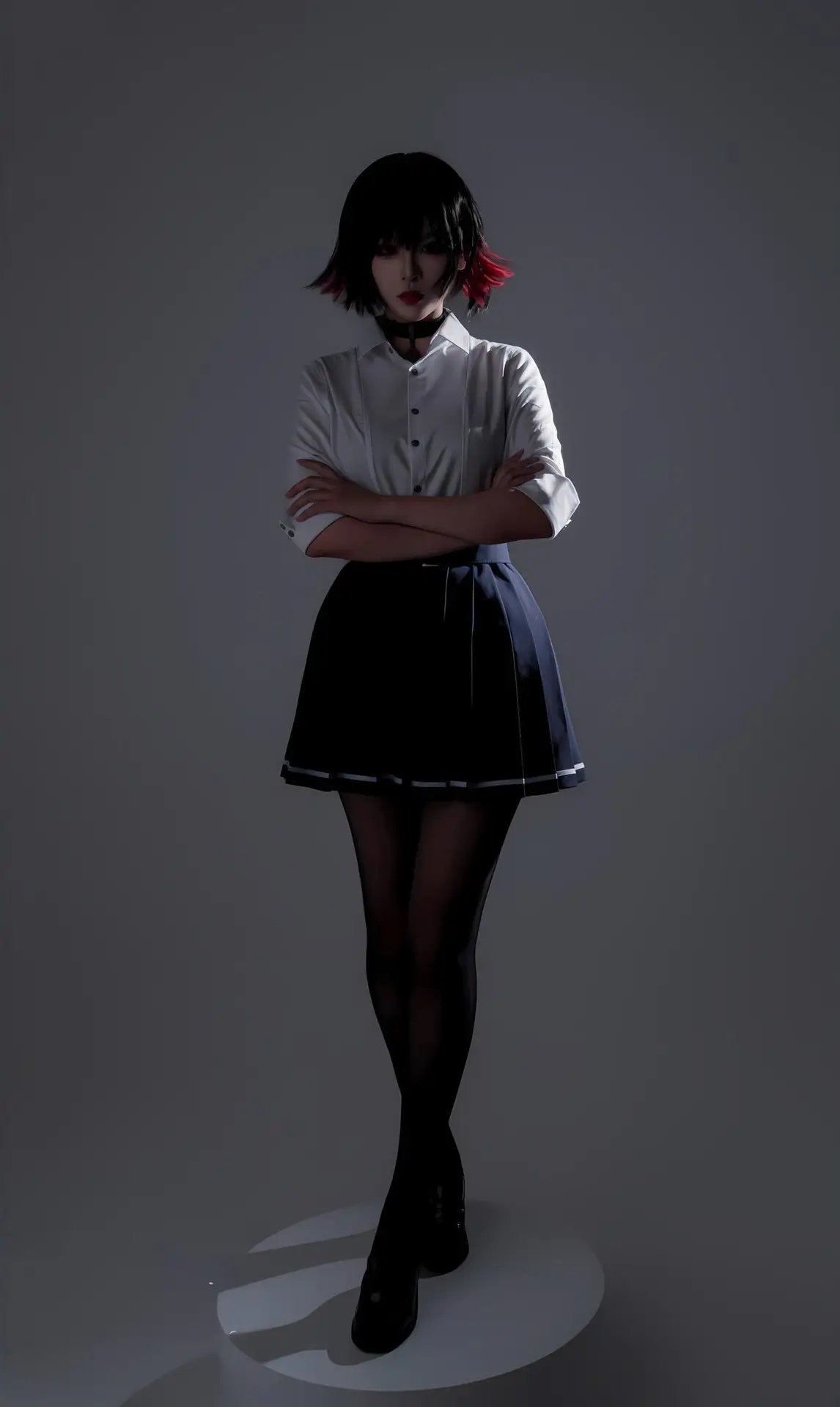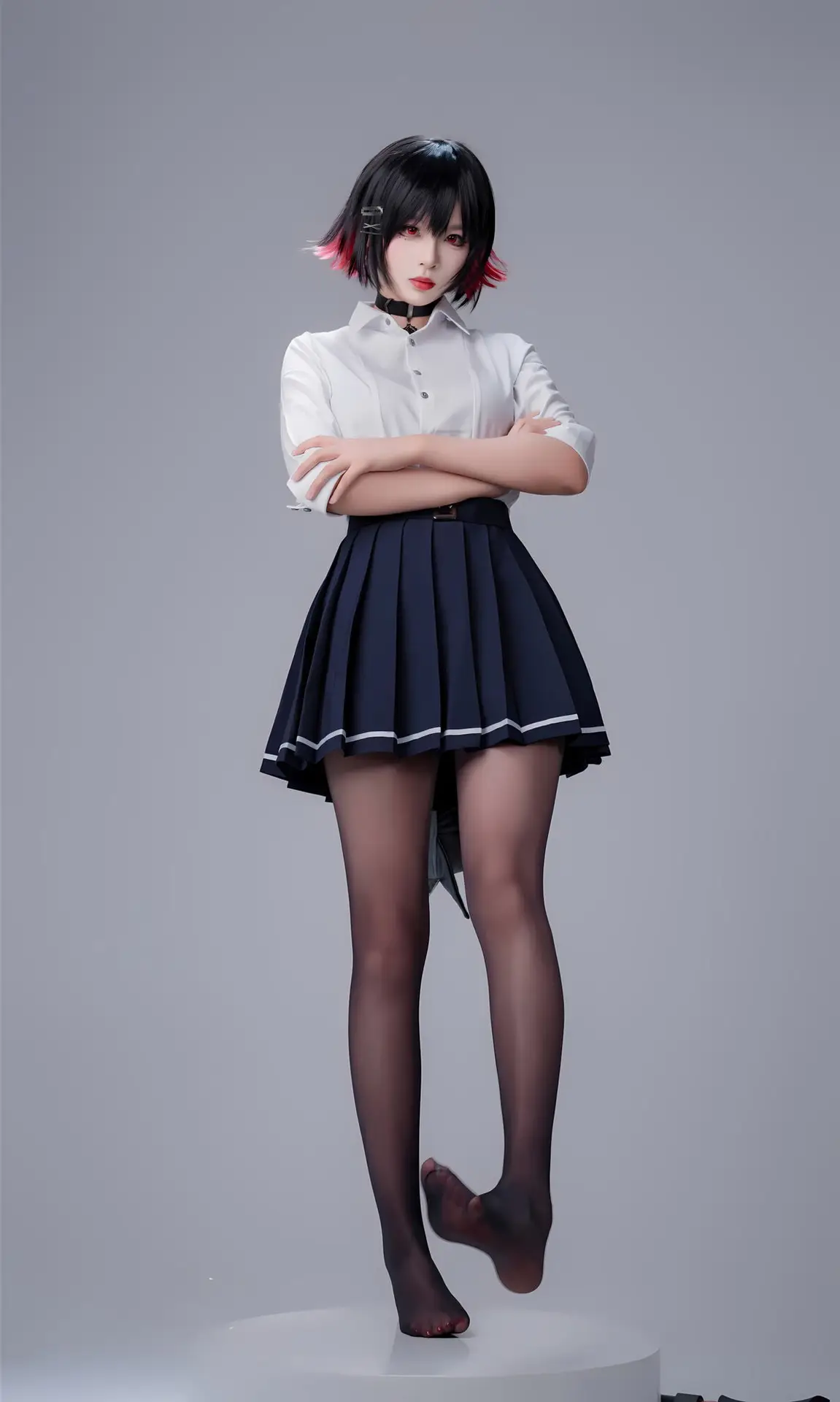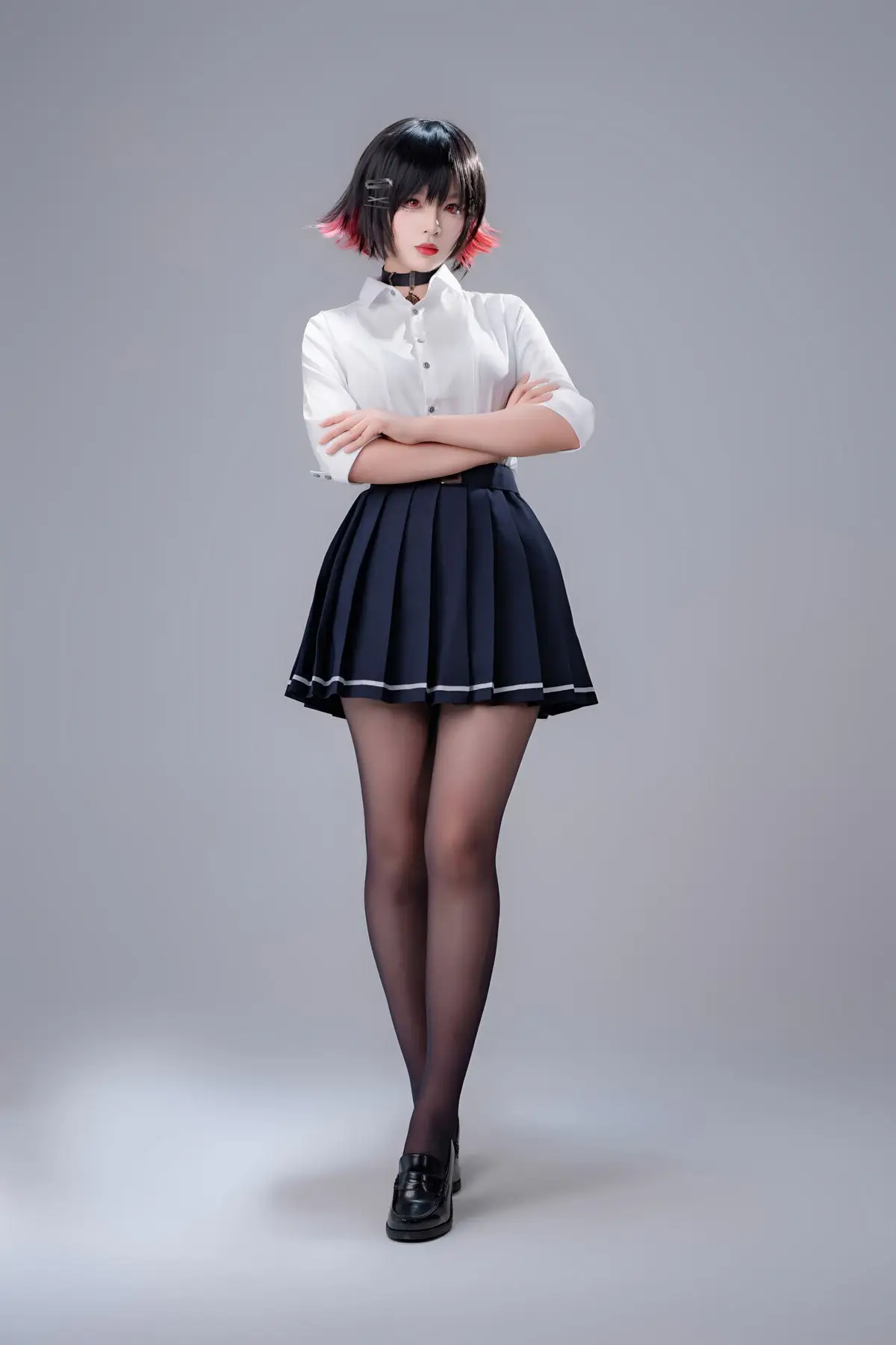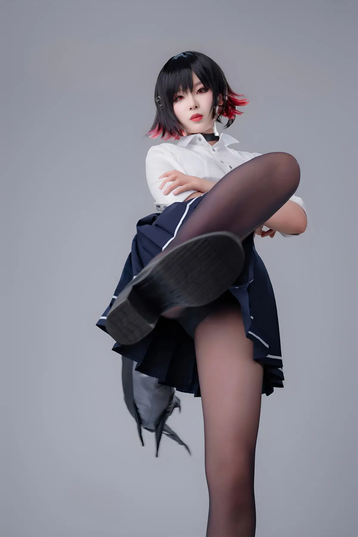 Immerse yourself in the captivating world of cosplay with Coser Xuan Xiao Xue Jie in the Shark Girl JK Part02 photo set. In this striking image, Xuan Xiao Xue Jie embodies a compelling JK schoolgirl persona, blending the innocent charm of a school uniform with the formidable power emanating from the sharp weapon she wields. Her short, dark, stylish hair, piercing gaze, and elegantly styled uniform paired with black tights create an enigmatic yet alluring figure. This is a segment from a special photo series where Xuan Xiao Xue Jie showcases her versatility and creativity in the art of costume play, promising to keep viewers utterly enchanted.
