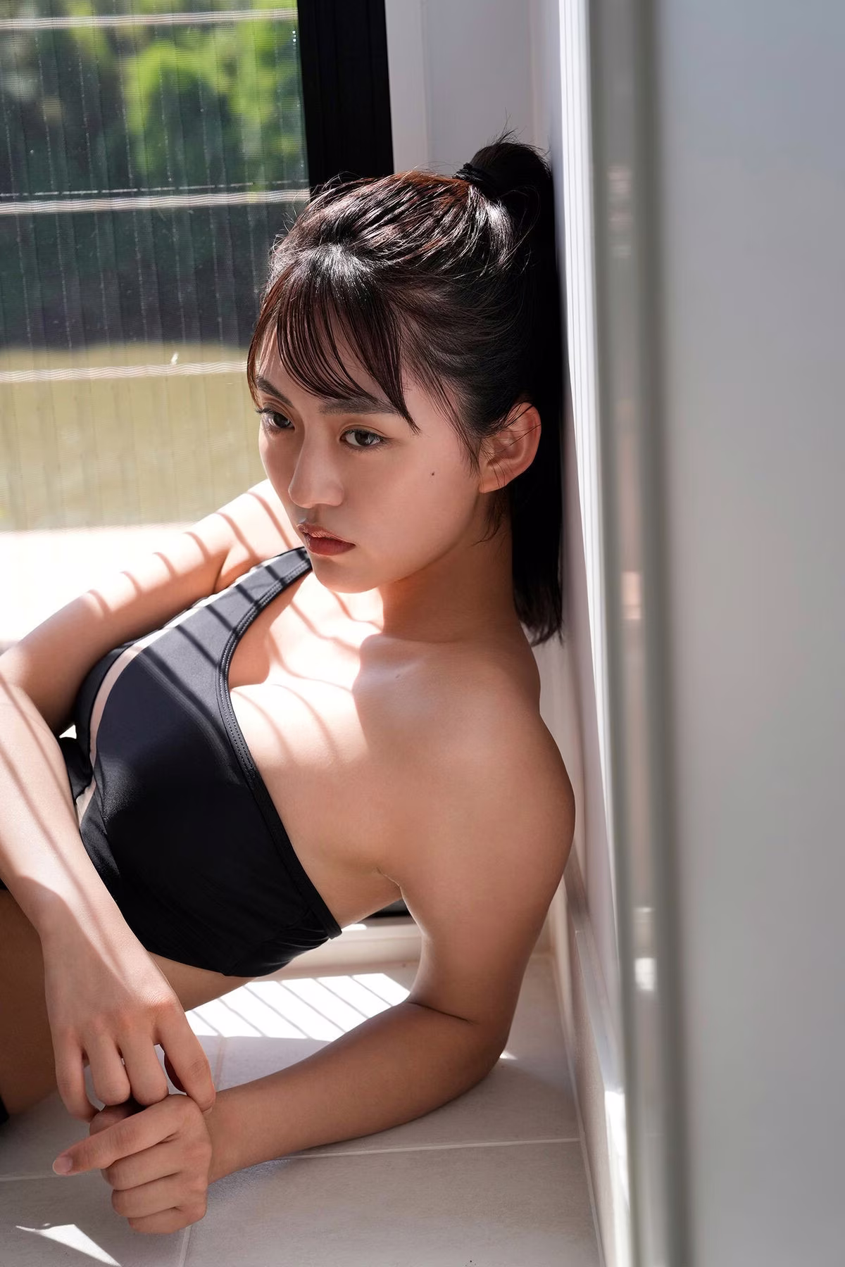 In the captivating FLASH Digital photo book "Seaside Memories", Toyoda Runa 豊田ルナ embodies serene beauty and vibrant charm. Dressed in a chic black cut-out swimsuit, she poses gracefully on a wooden balcony, framed by lush greenery and a bright blue sky. Each image evokes the essence of a perfect summer getaway, where time slows down to capture beautiful moments by the sea. Runa's natural elegance and captivating aura shine through, inviting viewers to immerse themselves in this enchanting collection of Japanese girl's seaside adventures. Discover the allure of Toyoda Runa.