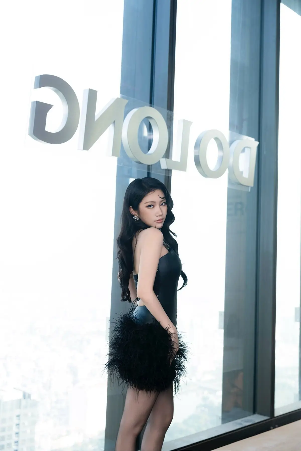 “Trendy Girl” Khanh Linh once again captivated fans with her charismatic presence. She appeared in a striking chartreuse green dress, showcasing a seductive open back and an incredibly luxurious fashion style. Every step radiated confidence and class, solidifying her status as a fashion icon. Draping a dark green faux fur jacket, Khanh Linh not only stayed warm but also created a unique accent, adding a touch of mystery and power. This image quickly went viral on social media, proving her undeniable appeal. It is a testament to her exquisite styling and superior aesthetic taste, ensuring all eyes are drawn to her.