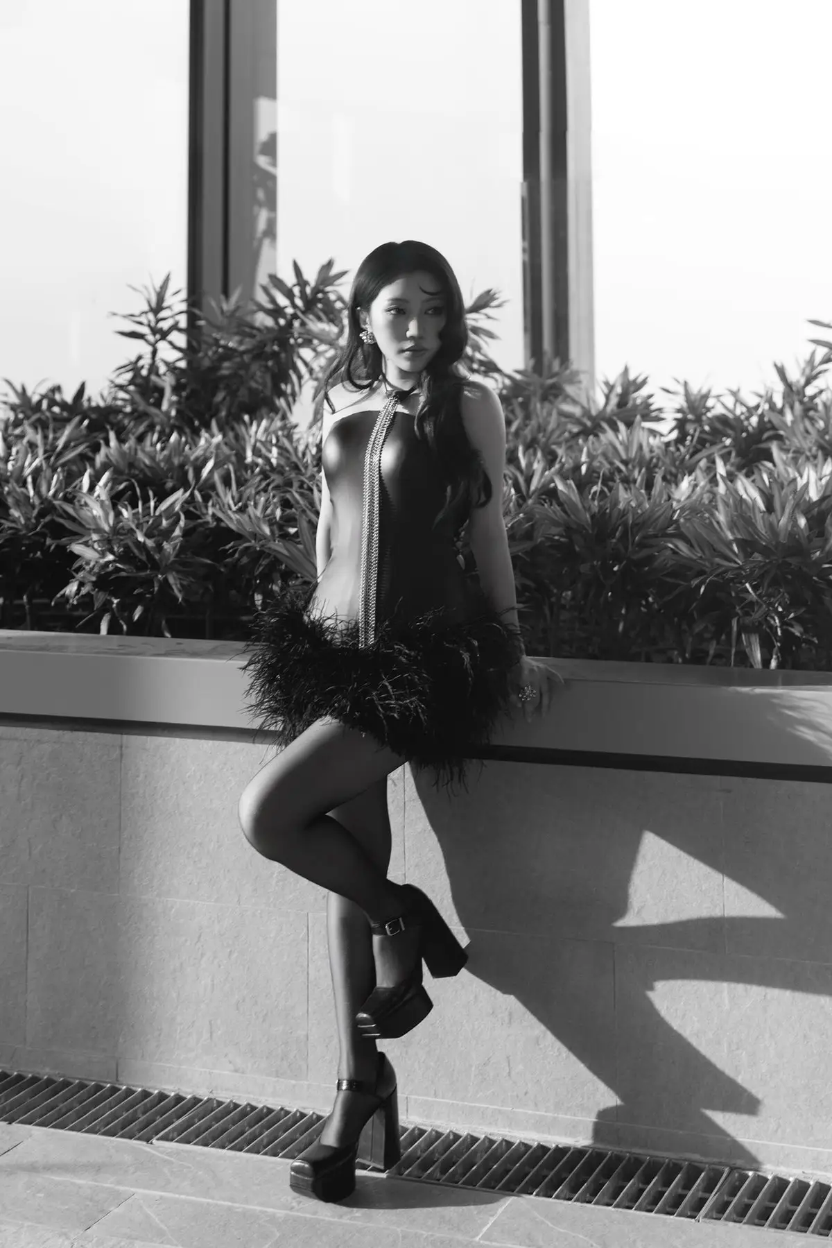 Singer Orange Khuong Hoan My continues to make a strong impression with her latest fashion photoshoot. She showcases radiant beauty and a distinctly elevated demeanor. Dressed in a seductive black gown adorned with delicate feathers Orange exudes modern elegance and sophistication. Her classy fashion style and confident aura captivate every gaze. This series of images not only represents a transformation in her appearance but also affirms Orange's position in the entertainment industry. It serves as a testament to the singer's serious investment in her personal style creating an irresistible allure.