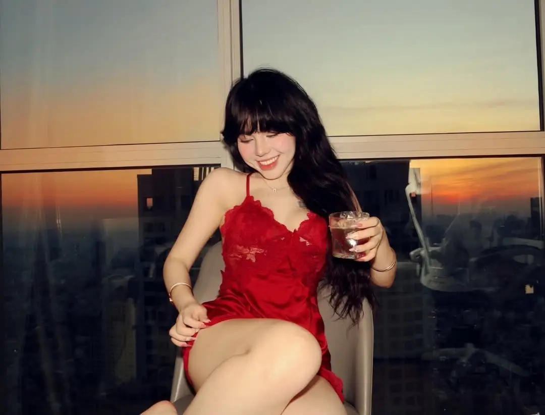 Bảo Khuyên Susan once again captivated the online community with her stunning new photo series. The hot girl fully showcased her seductive beauty and daring charm in a delicate red silk dress. The romantic sunset light streaming through the large window enveloped the space, creating a magical backdrop that accentuated Bảo Khuyên's alluring curves. Holding a drink, with captivating eyes, she exuded irresistible confidence and enchantment. This photoshoot not only highlights her refined fashion sense but also asserts her unique personal style, making it impossible for viewers to look away. These are undoubtedly precious moments, spreading captivating energy across platforms like Instagram and TikTok.