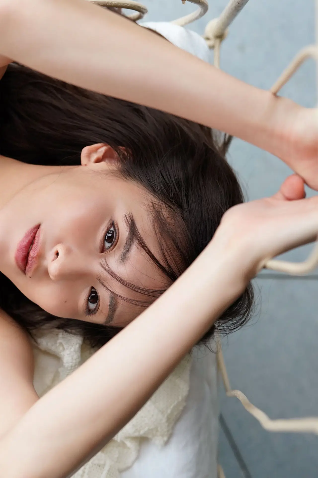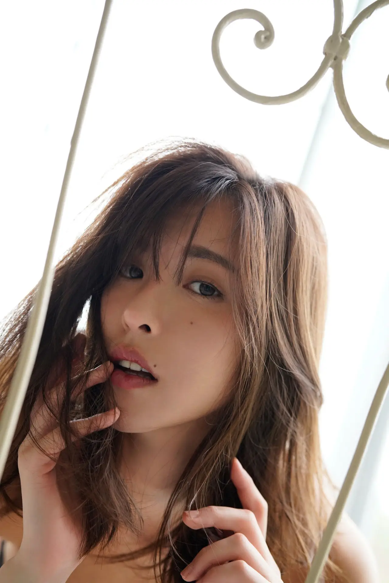 Immerse yourself in the captivating beauty of Sena Natsuki captured in a moment of delicate intimacy. This unique high-angle shot highlights her alluring gaze and profound expression, drawing viewers into her world. Sena Natsuki is gracefully adorned in exquisite black lace lingerie, subtly accentuating her elegant and sensual silhouette. Her pose on the bed, with the bed frame artfully framing the shot, evokes a sense of personal connection and vulnerability, inviting contemplation. This evocative image is a key piece from her 'Tamayura Shunkashuto' collection, where each photograph beautifully narrates a tale of charm, grace, and mesmerizing allure, captivating the audience with every frame.#SenaNatsuki #Tamayura #Shunkashuto #Lingerie #Fashion #Beauty #Portrait #AlluringGaze