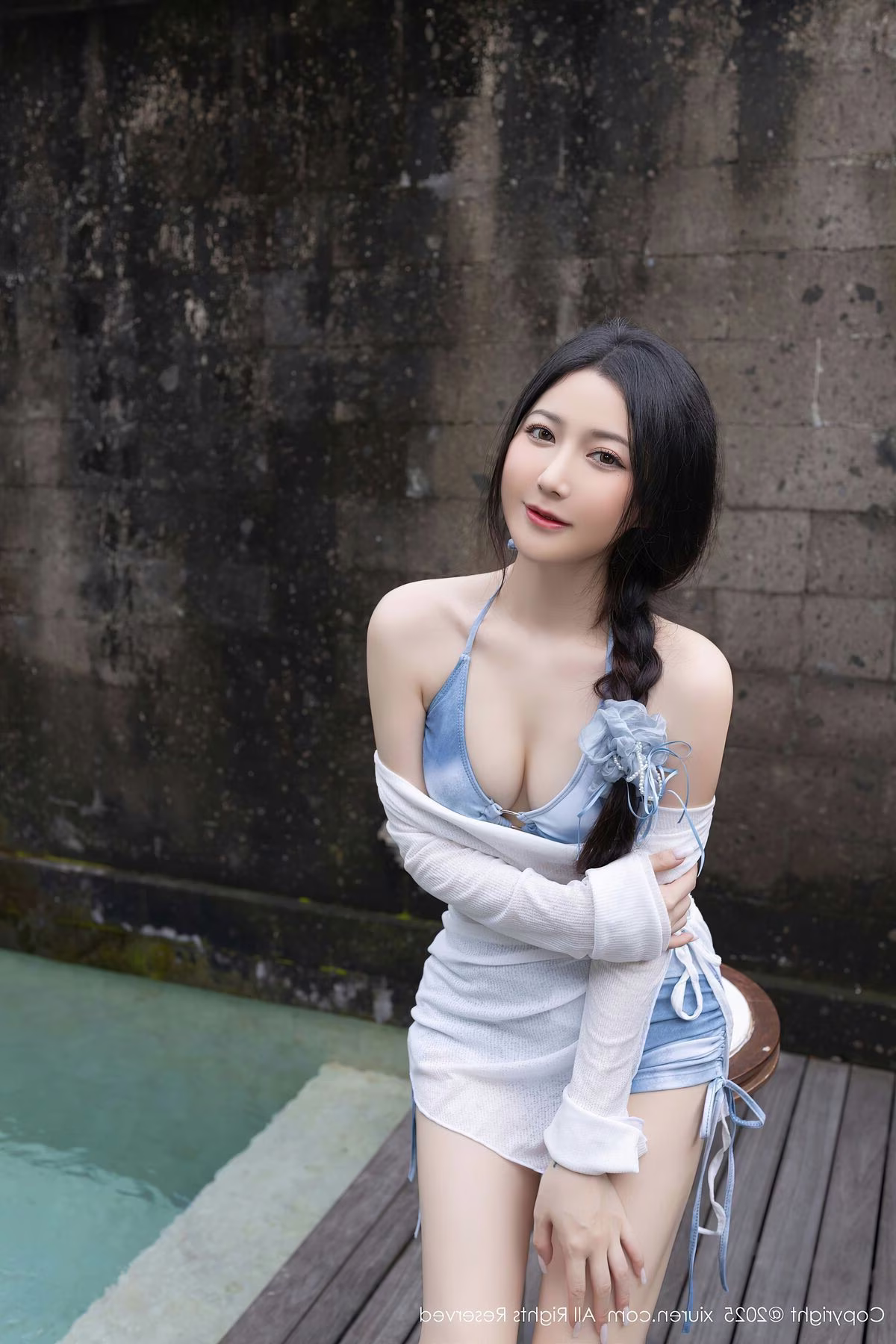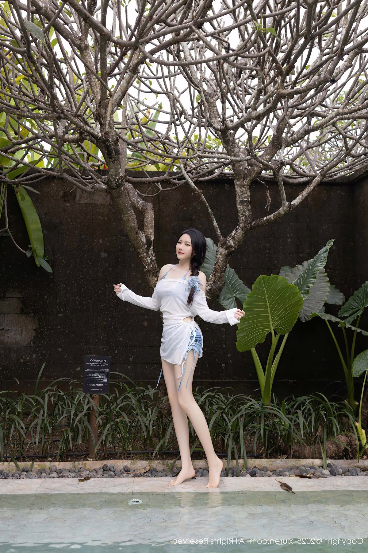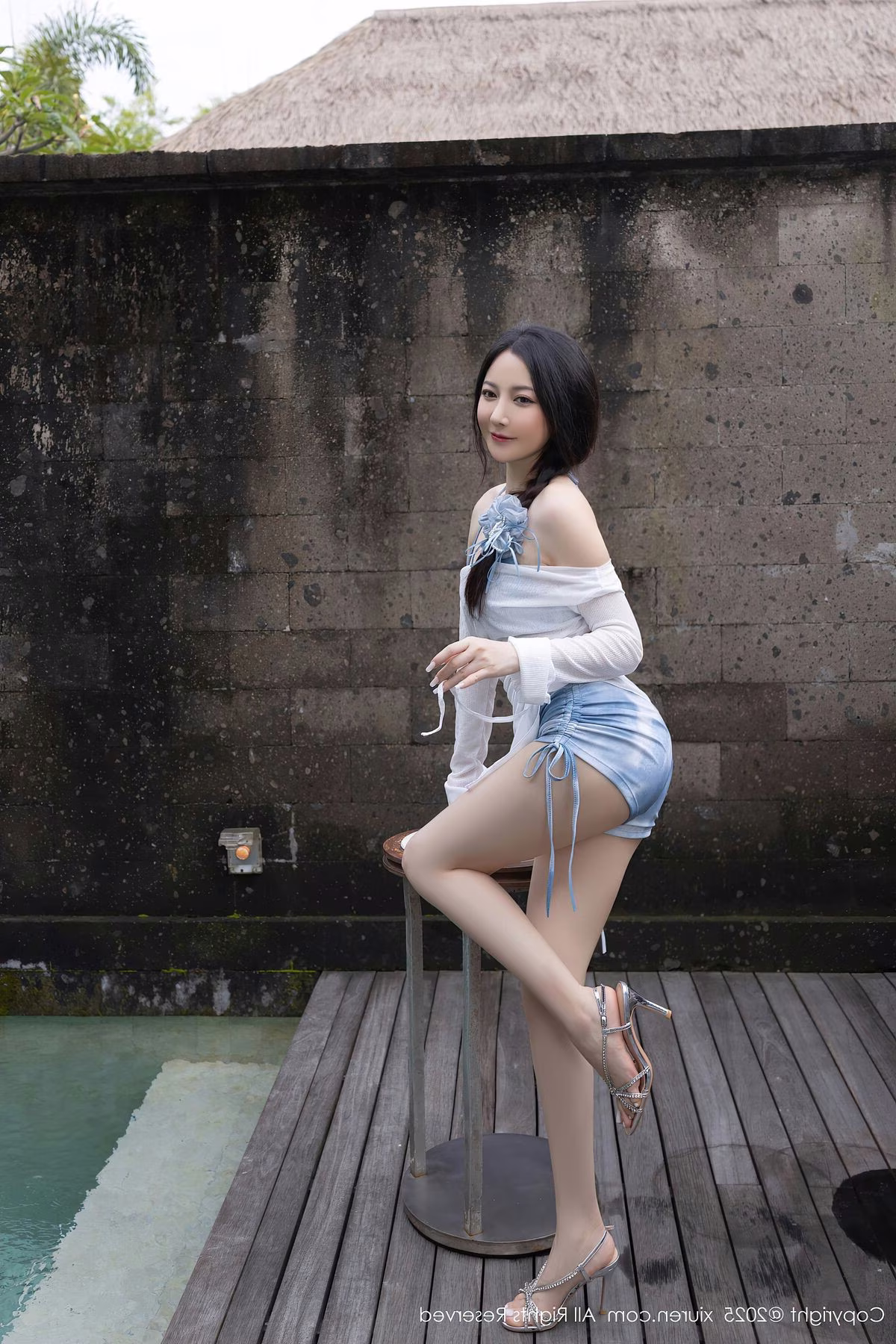 In the XiuRen No.10377 photo collection, model Yu Zi Jiang Fish radiates a graceful and vibrant beauty by the pool. She sits relaxed on a small stool, her charming braided hair complementing her stylish white top and dynamic denim shorts. Her gentle gaze looks into the distance, seemingly enjoying the peaceful summer moment to the fullest. The pool setting, with its clear blue water and natural stone wall, creates an ideal backdrop, highlighting Yu Zi Jiang Fish's fresh beauty and individual style. This collection will undoubtedly offer viewers a sense of relaxation and impressive visual enjoyment.Stories